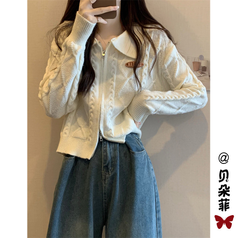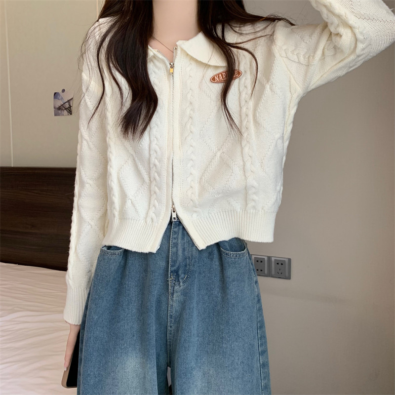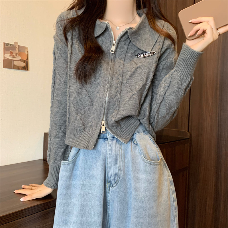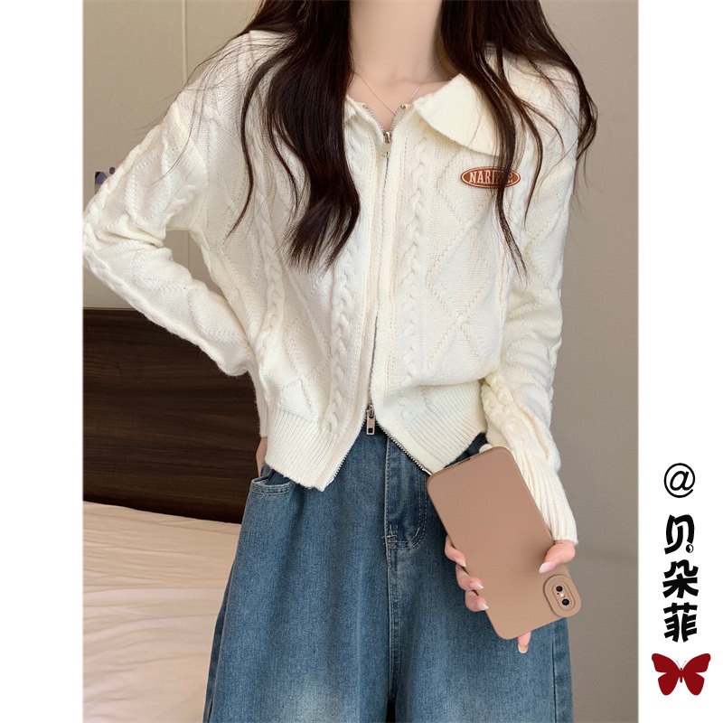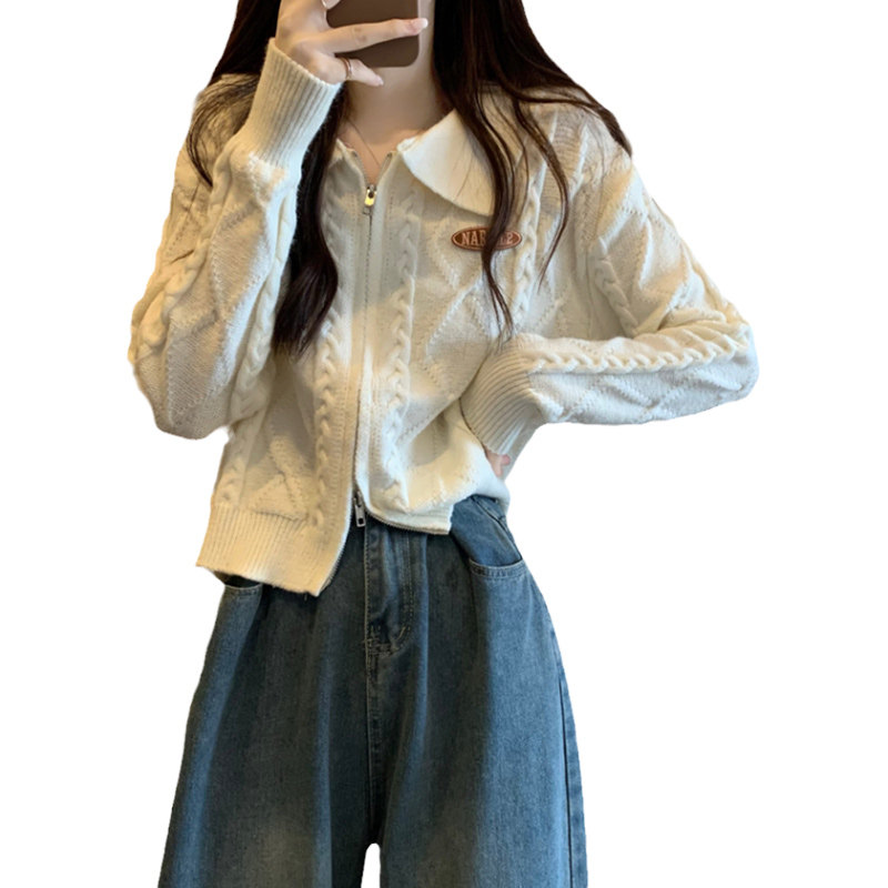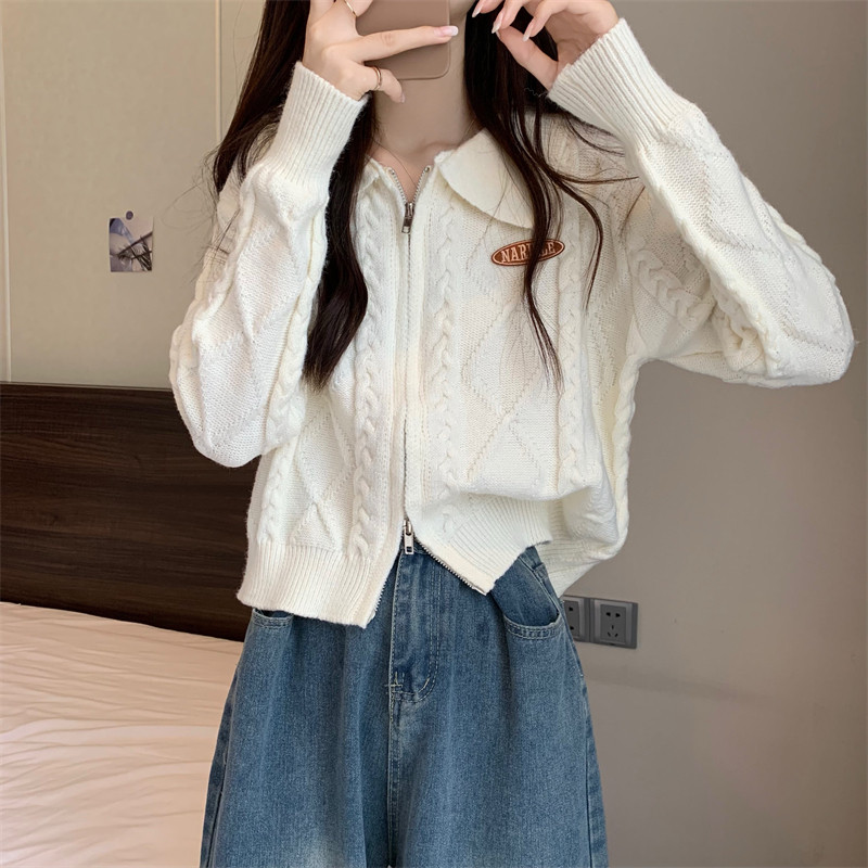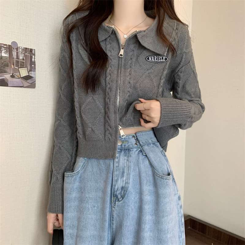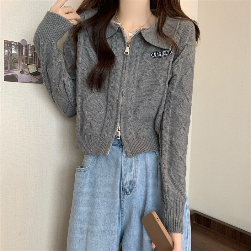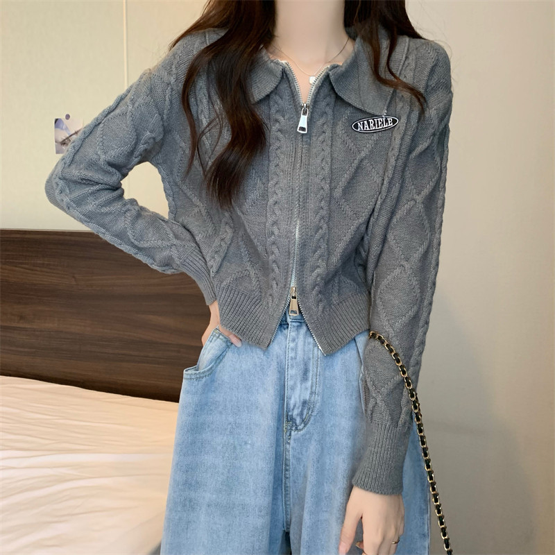 Свитер с молнией, демисезонный кардиган, трикотажная куртка, воротник поло, премиум класс