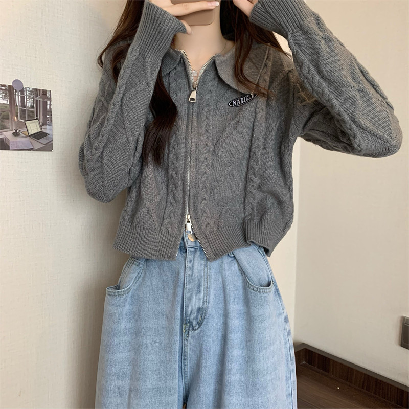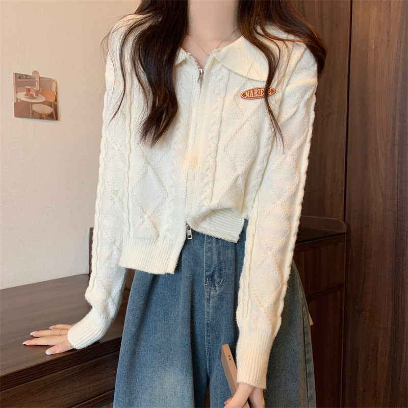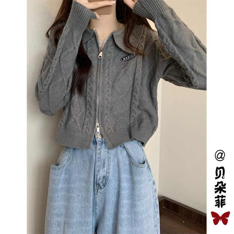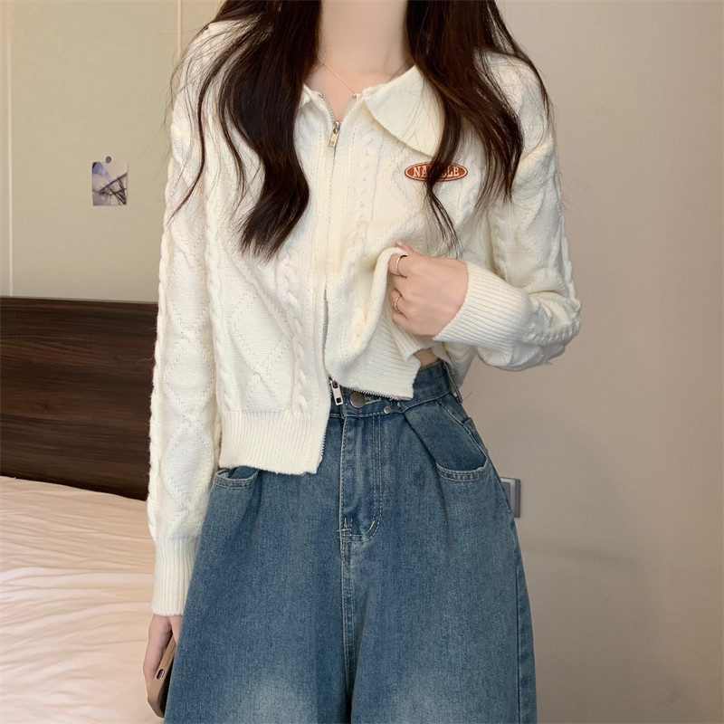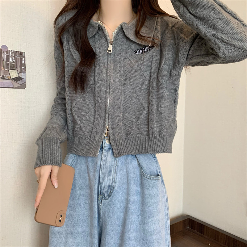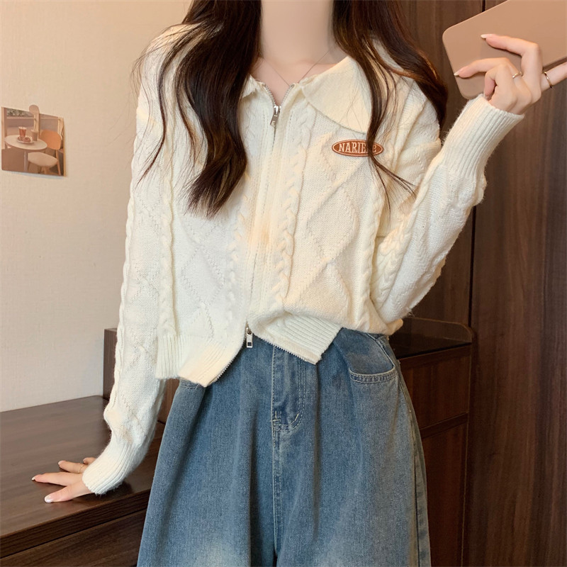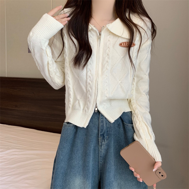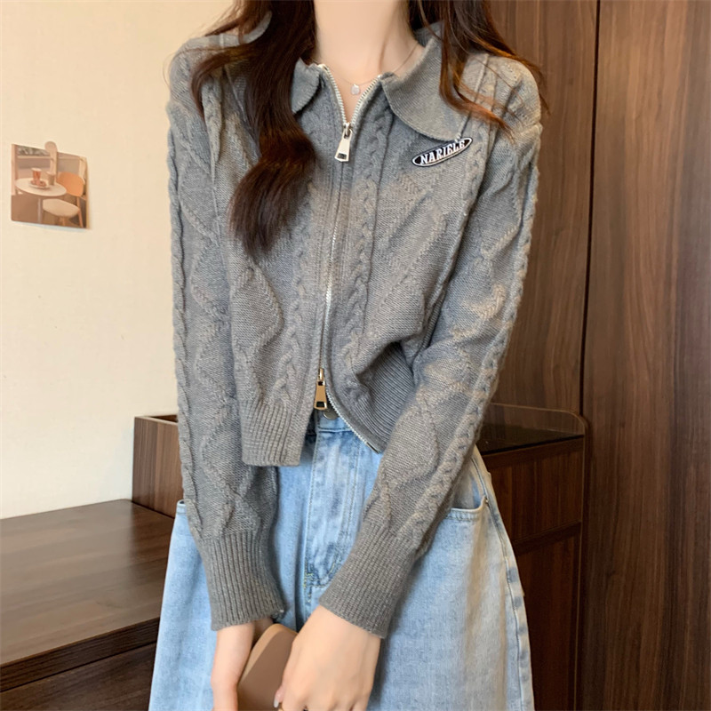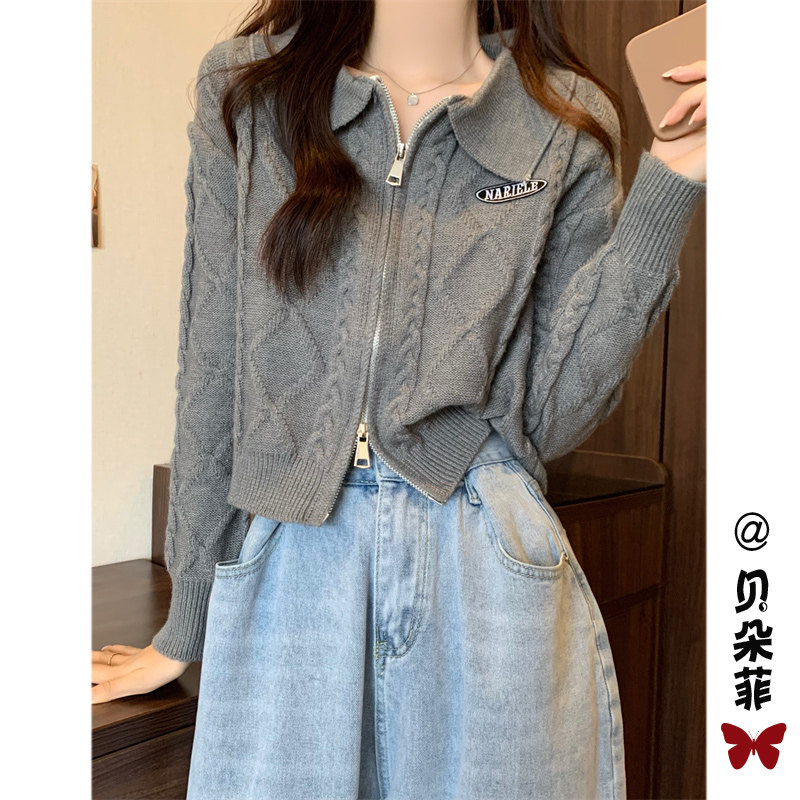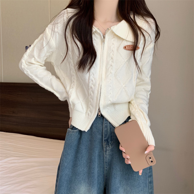 Свитер с молнией, демисезонный кардиган, трикотажная куртка, воротник поло, премиум класс