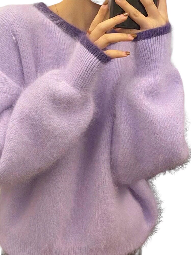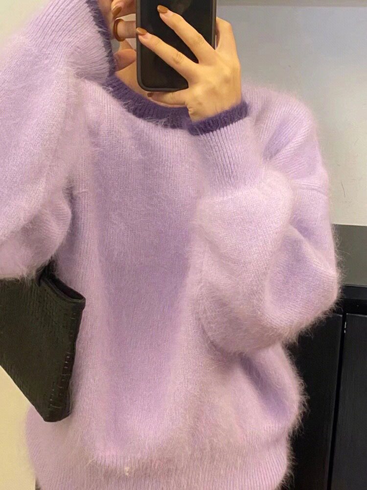 Сиреневый бархатный демисезонный свитер, трикотажный фонарь, увеличенная толщина
