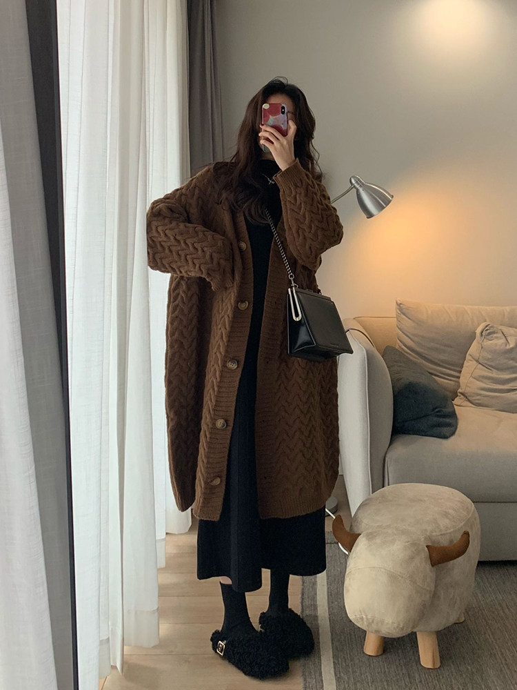 Осенний демисезонный кардиган, плащ, куртка, ретро мягкий свитер, большой размер