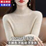 Шерстяной демисезонный базовый приятный телу кашемировый свитер, увеличенная толщина, коллекция 2023, высокий воротник, облегающий крой