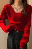 Красный демисезонный свитер, сексуальное трикотажное приятное телу короткое термобелье, в западном стиле