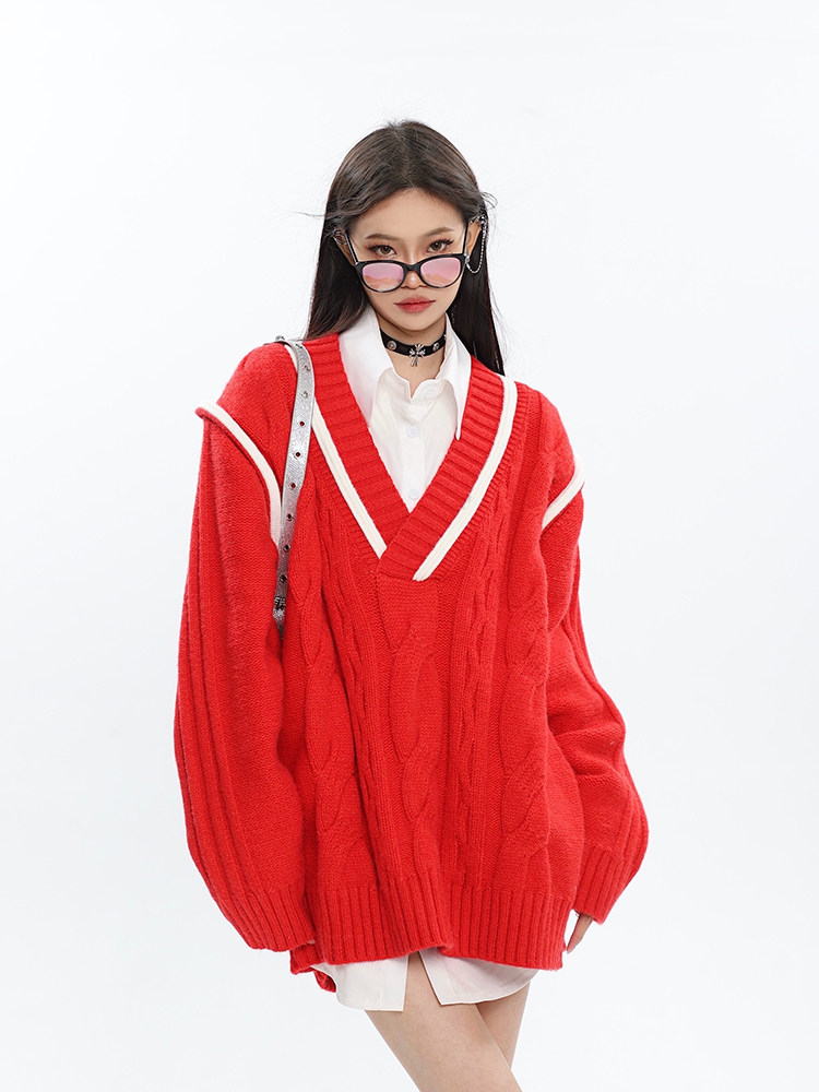 Демисезонный свитер, трикотажное термобелье, V-образный вырез, изысканный стиль, для влюбленных