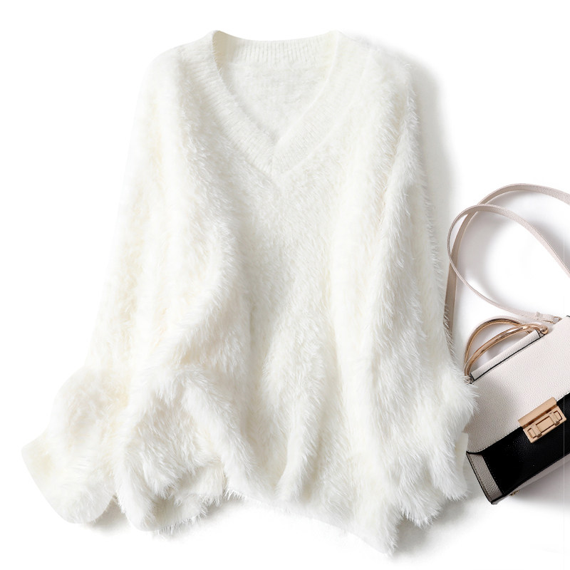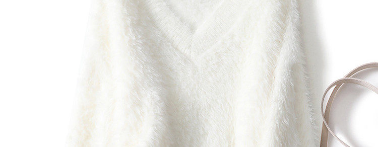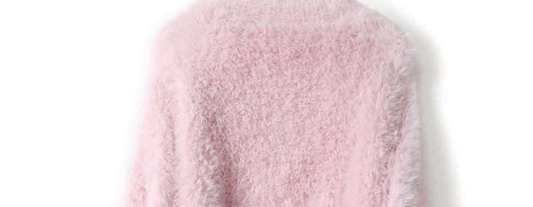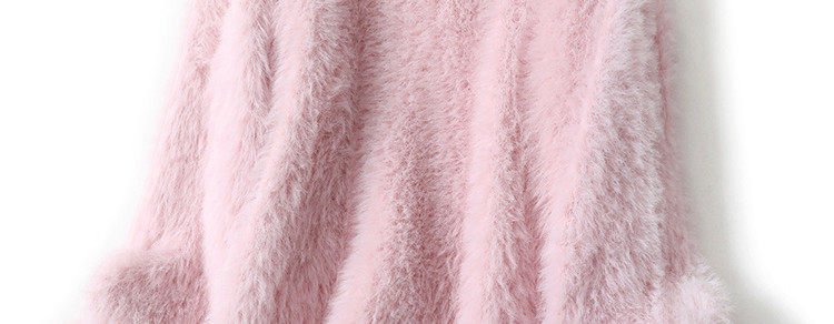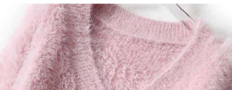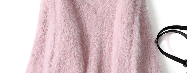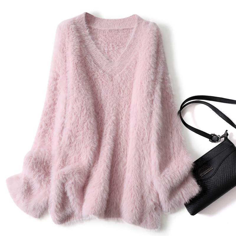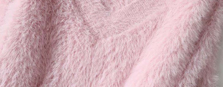Розовый бархатный демисезонный длинный мягкий свитер, V-образный вырез, свободный крой, средней длины, увеличенная толщина