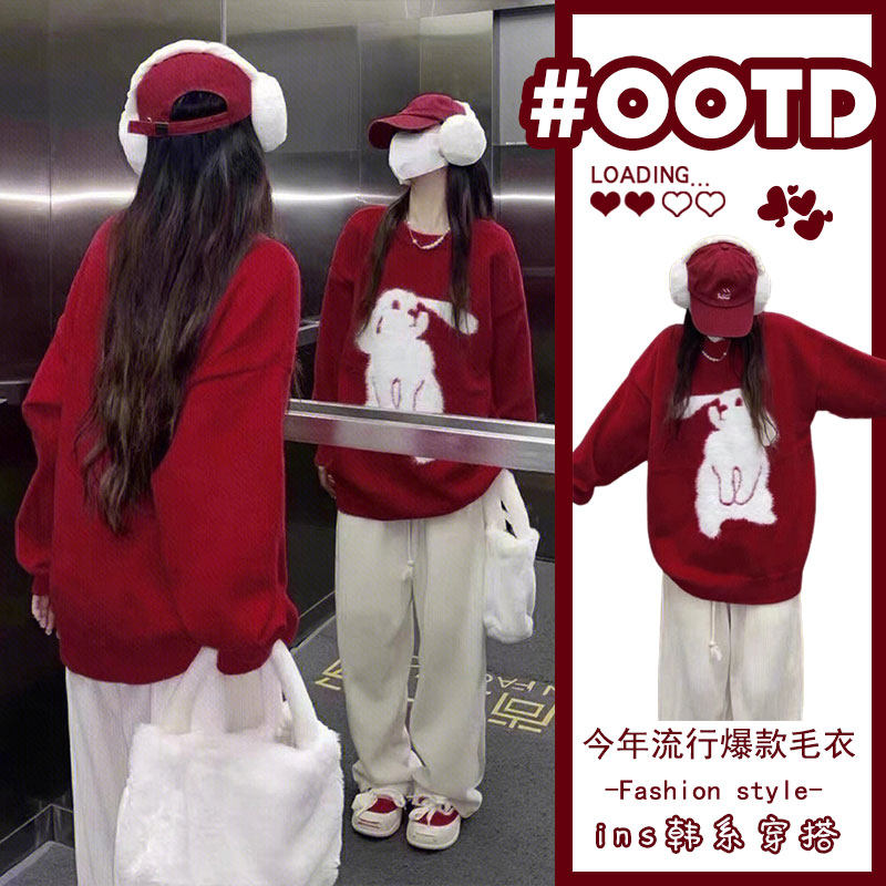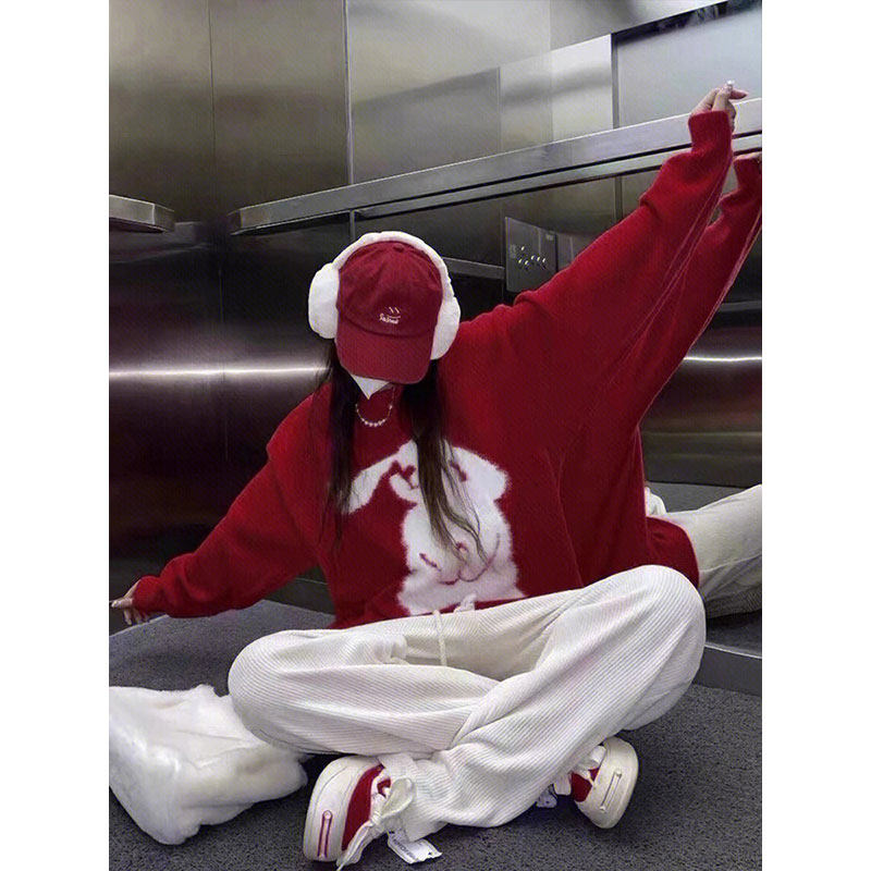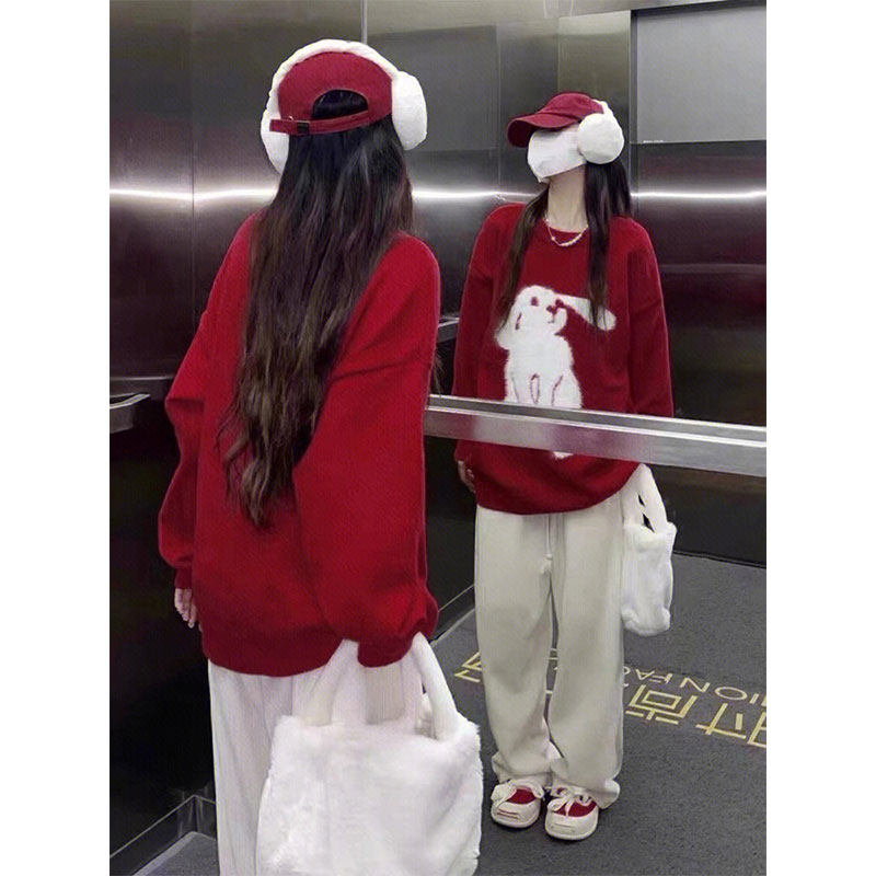 Демисезонный красный свитер, оберег на день рождения, изысканный стиль, год кролика