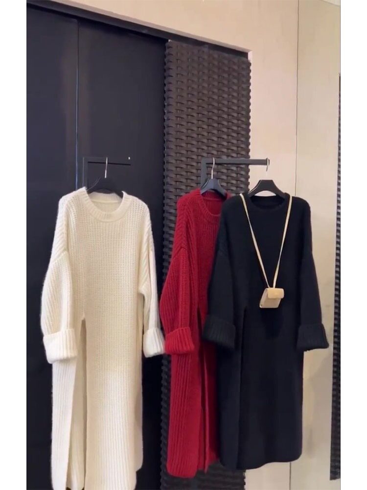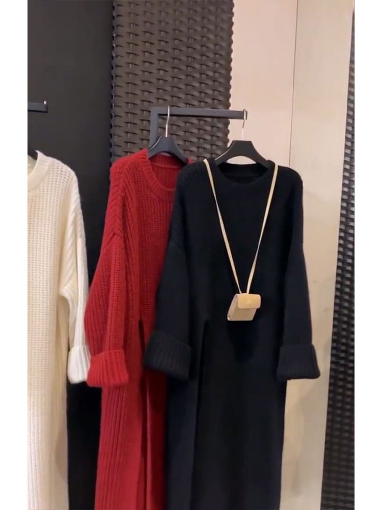 Летнее длинное демисезонное трикотажное платье с круглым воротником, шерстяное платье, средней длины, изысканный стиль