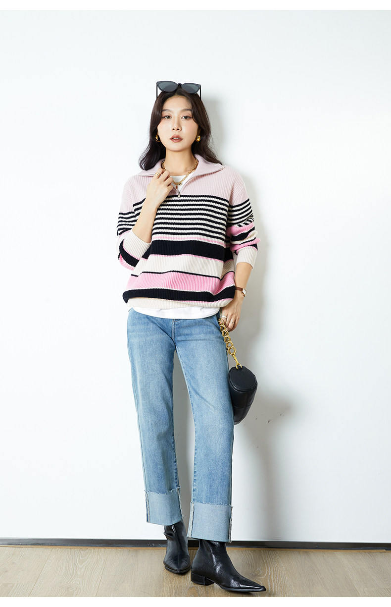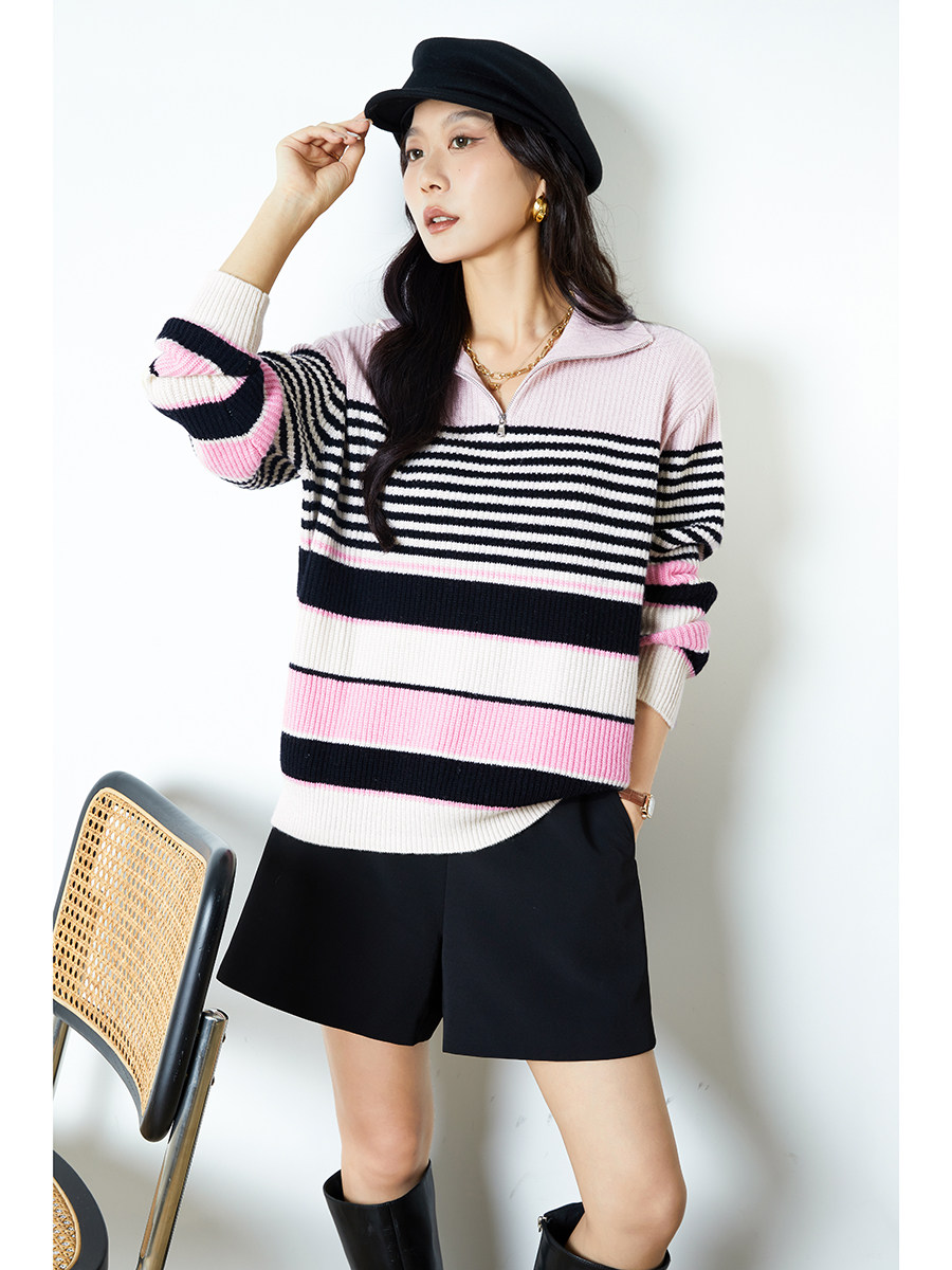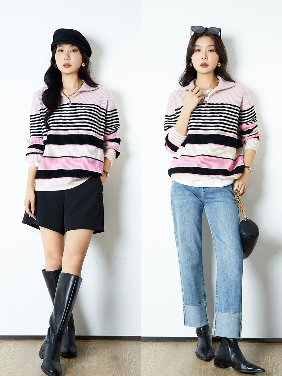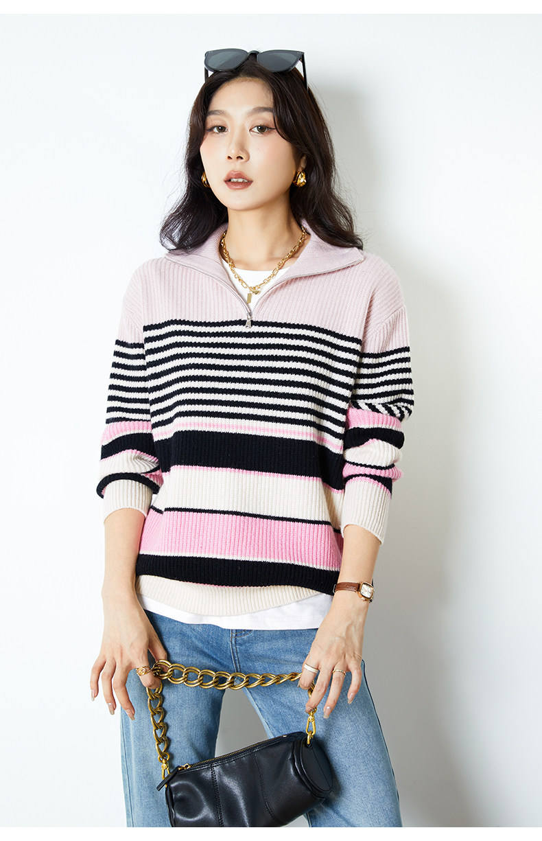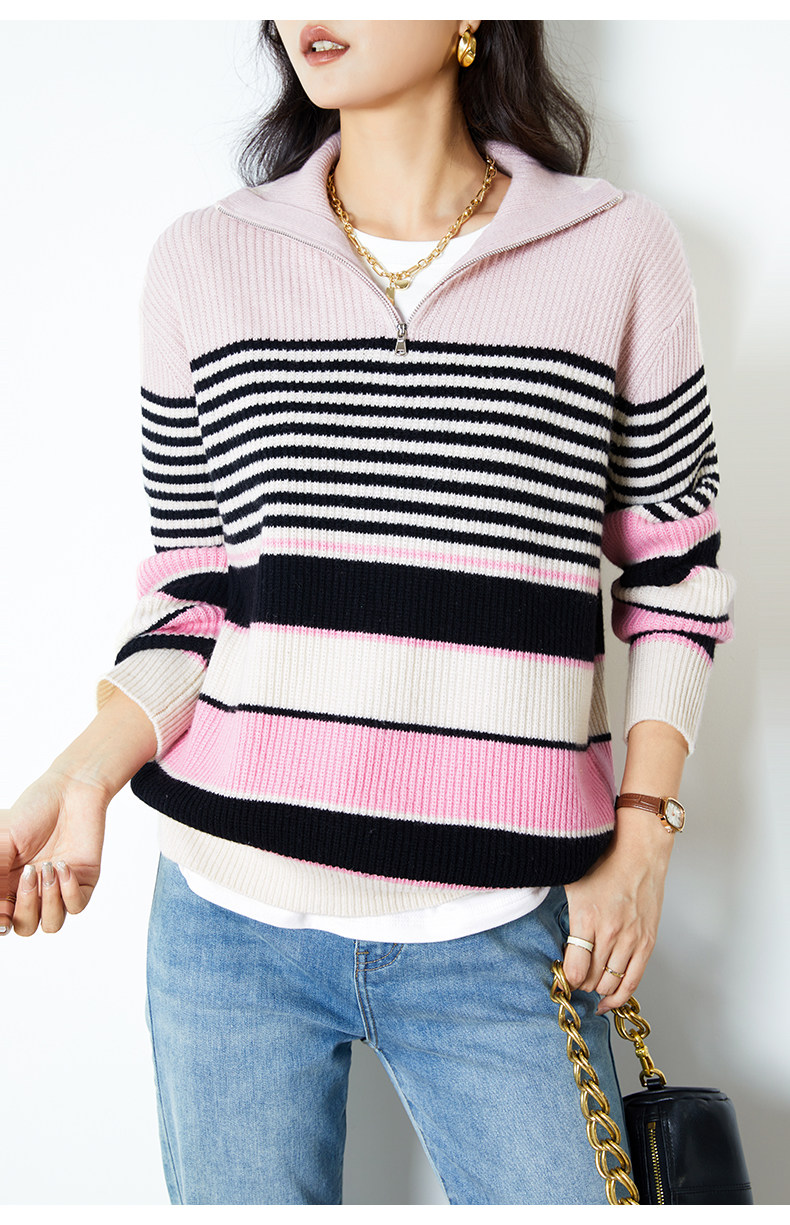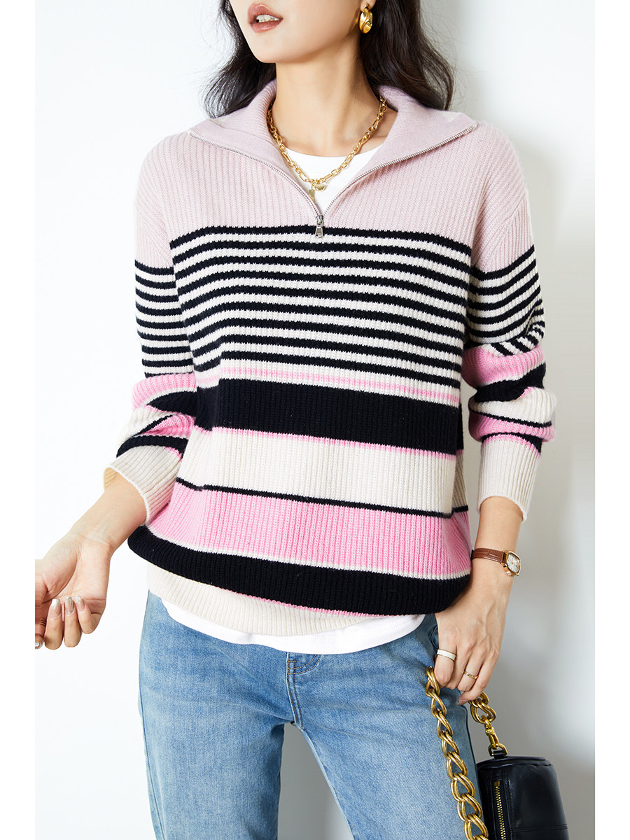 Цепь с молнией, шерстяной трикотажный свитер, на молнии