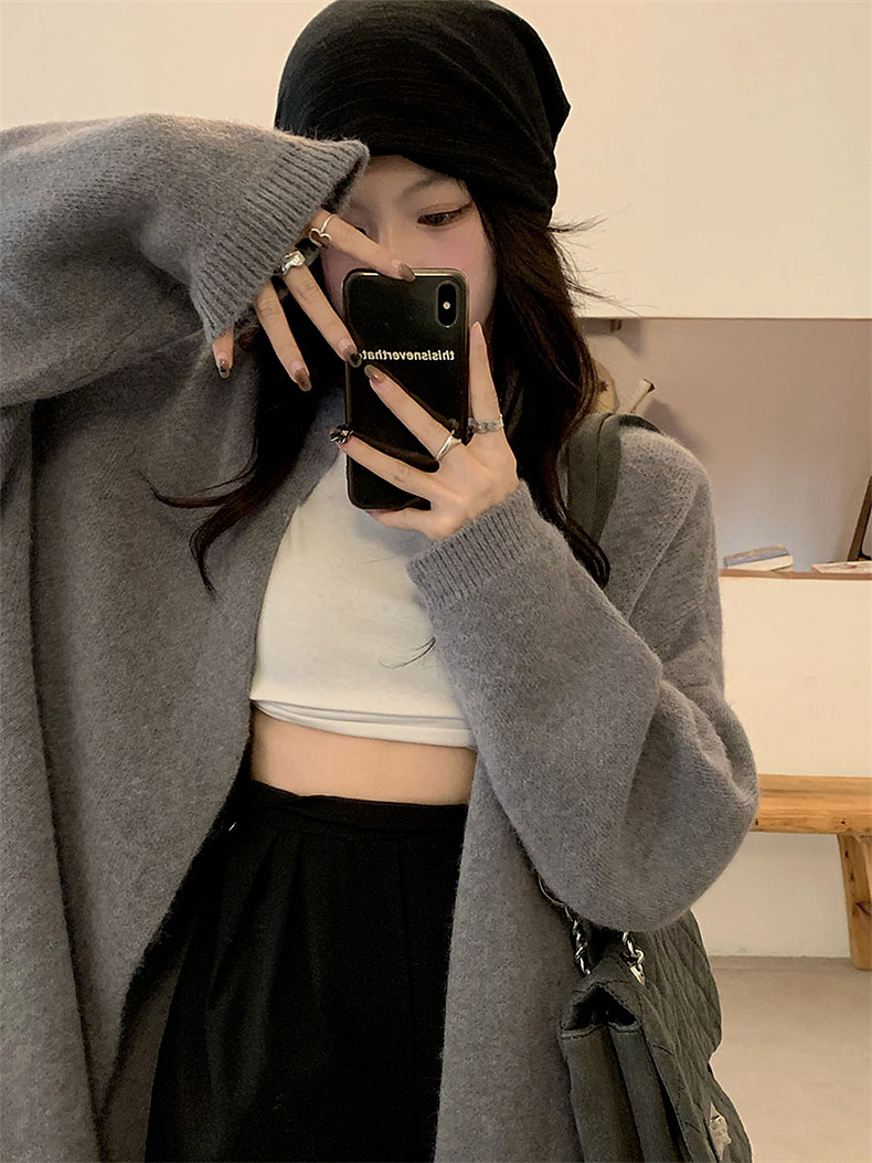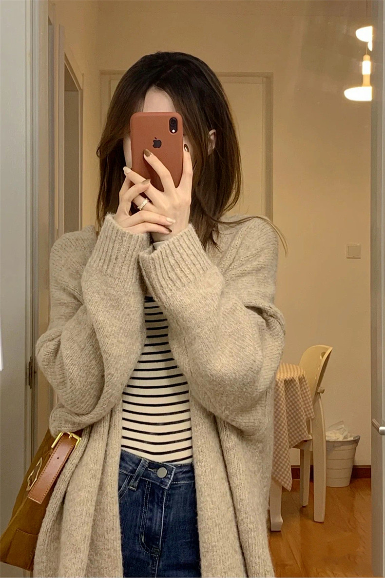Свитер, длинный японский кардиган, куртка, осенний, средней длины
