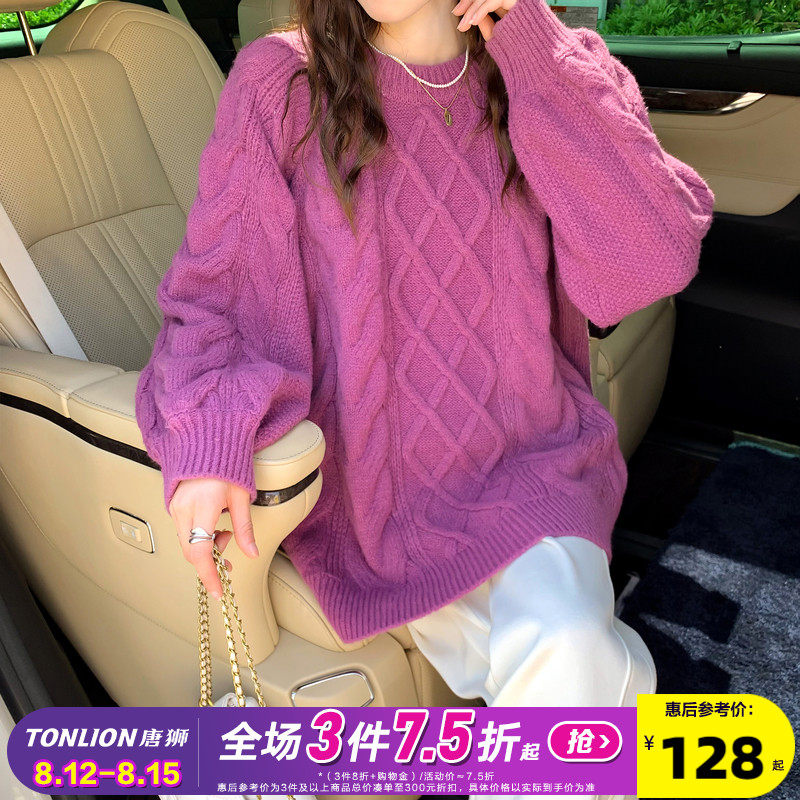 Японский длинный шерстяной свитер с круглым воротником, коллекция 2023, средней длины