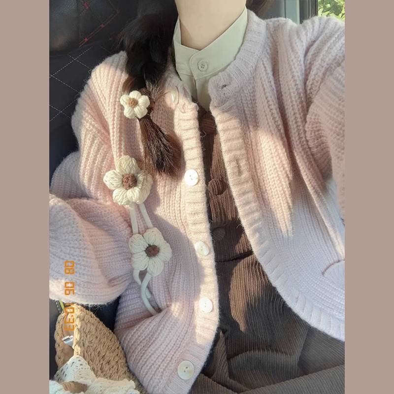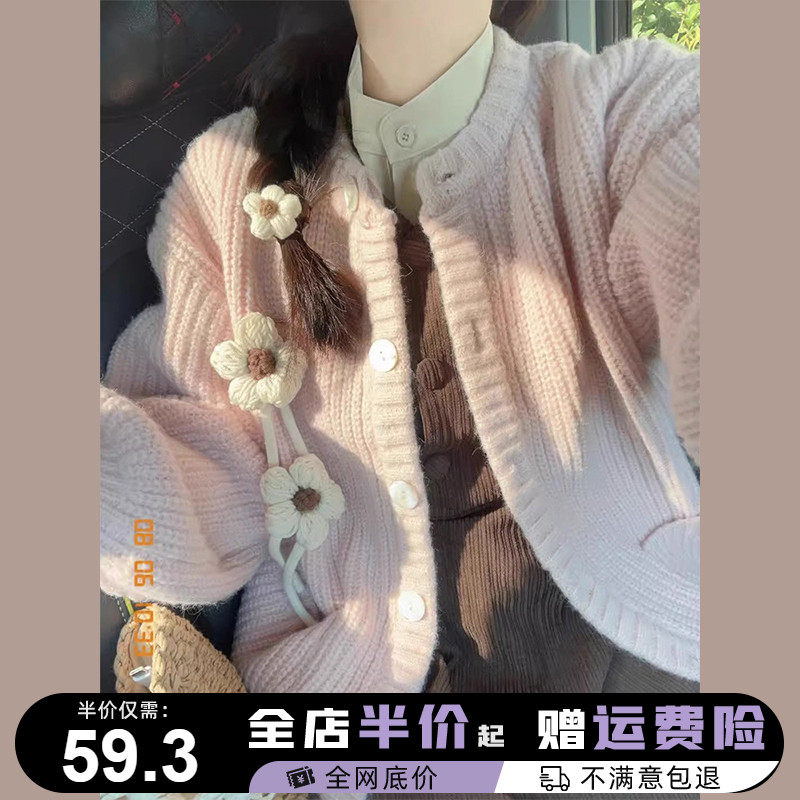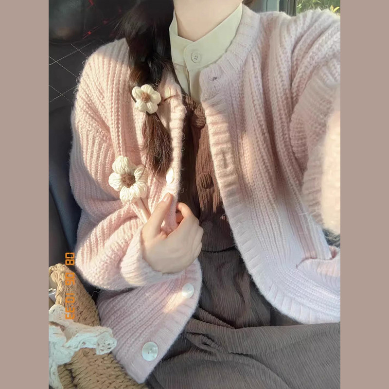 Розовый демисезонный свитер, японский ретро кардиган, коллекция 2023