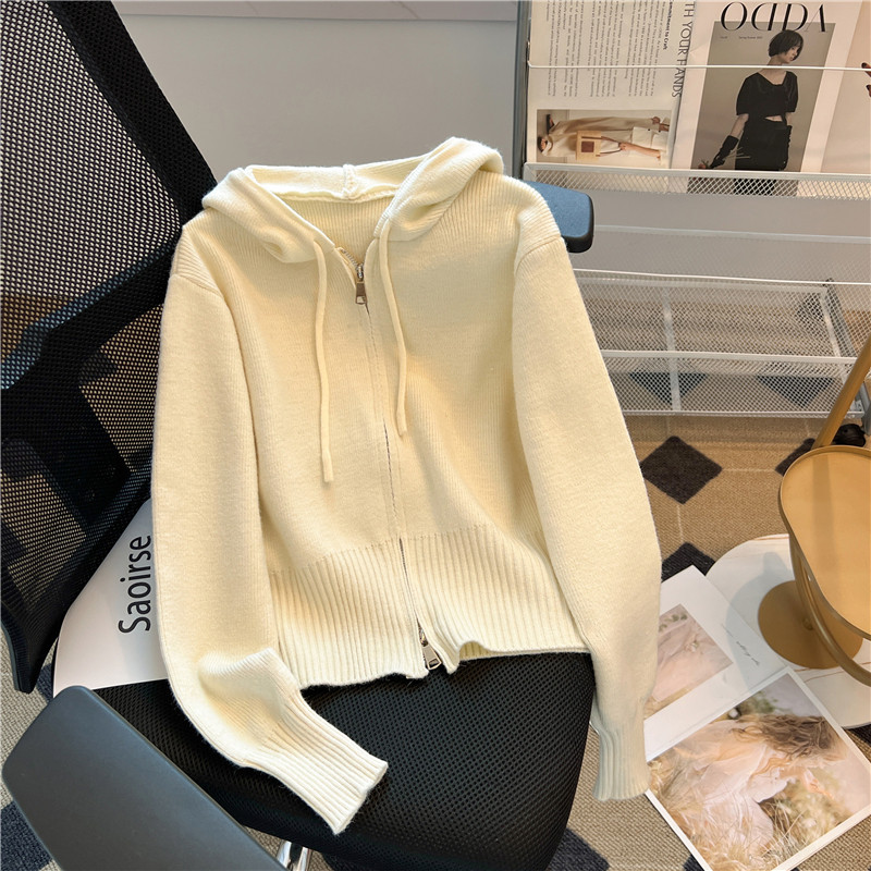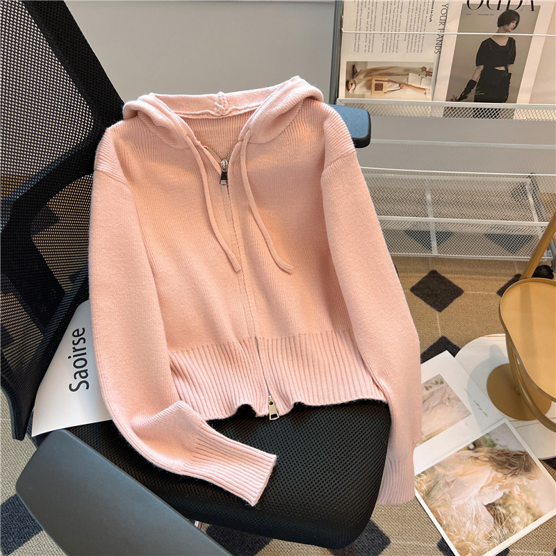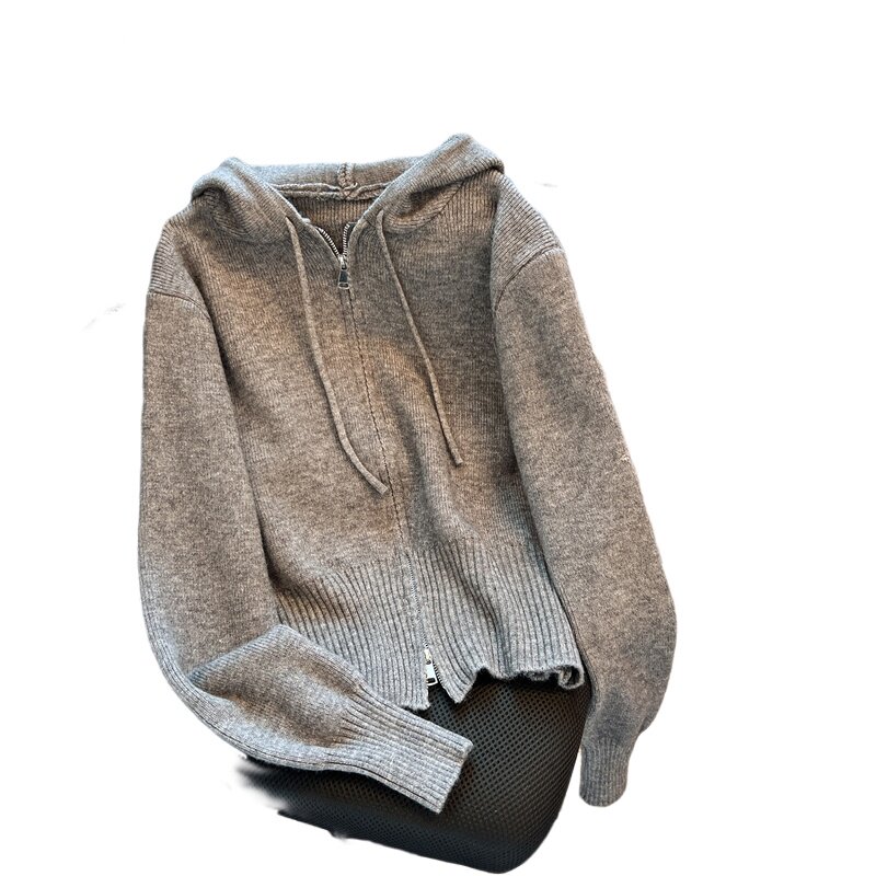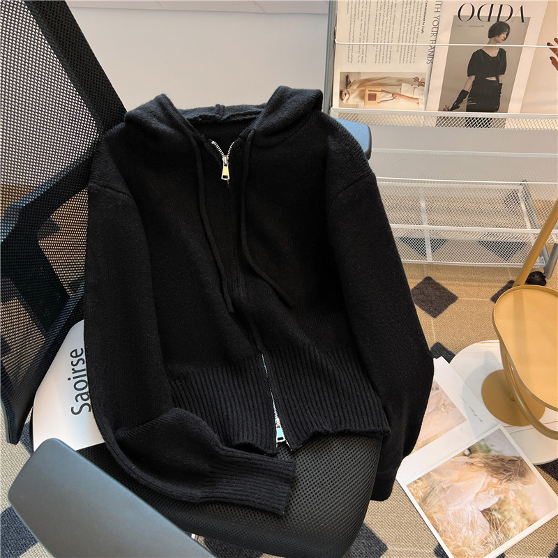 Трикотажная осенняя толстовка с капюшоном, кардиган, куртка, свитер с молнией, лонгслив, свободный крой