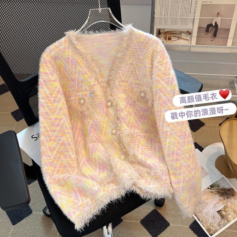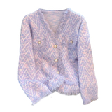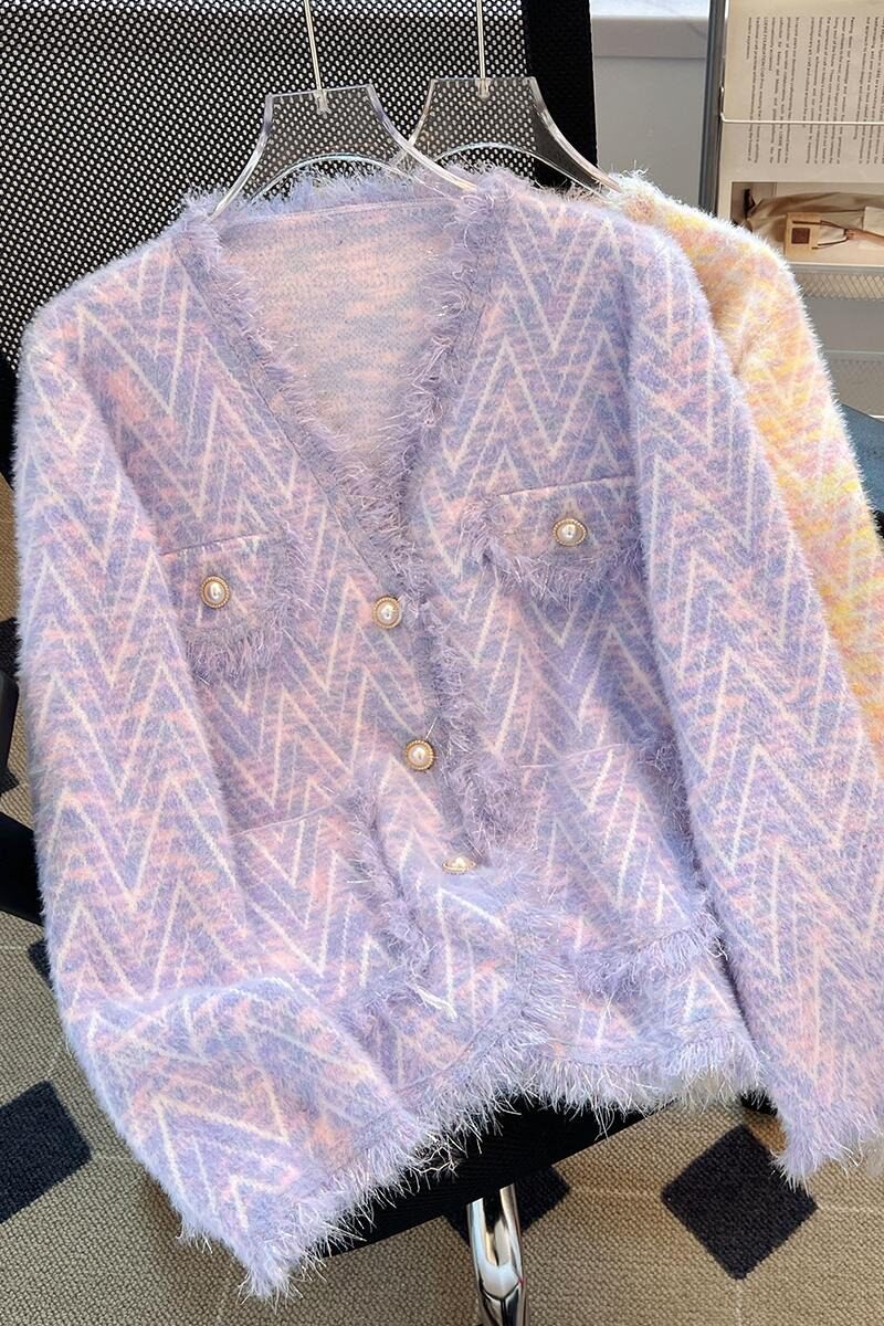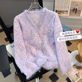 Сиреневая осенняя куртка, шерстяной трикотажный бархатный свитер, в стиле Шанель, премиум класс, французский стиль
