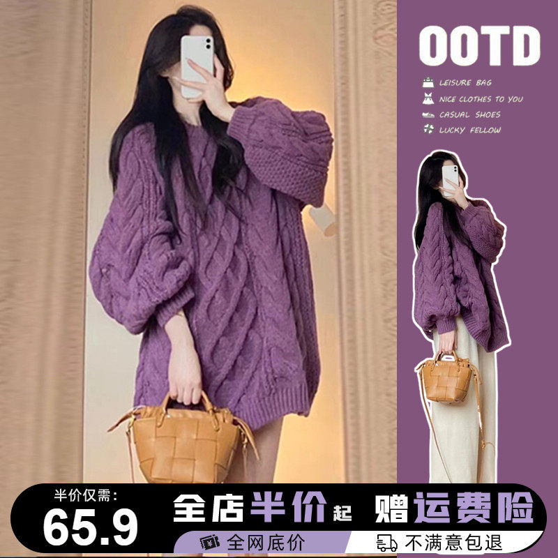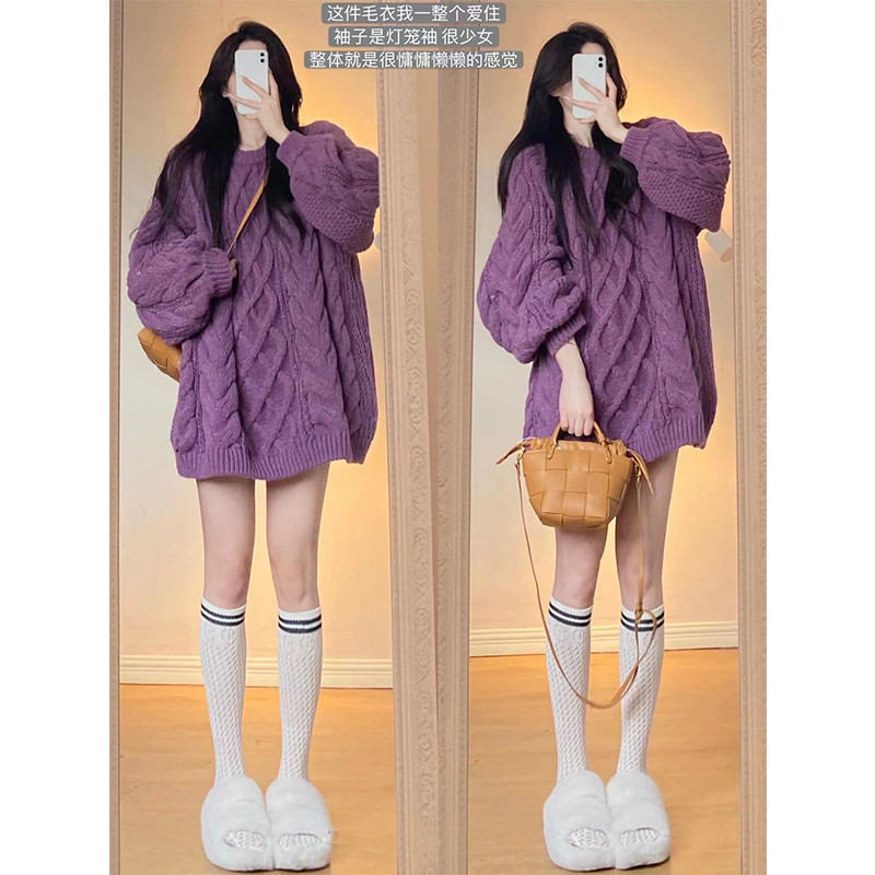Сиреневый демисезонный свитер, длинная трикотажная рубашка, 2024 года, средней длины, оверсайз