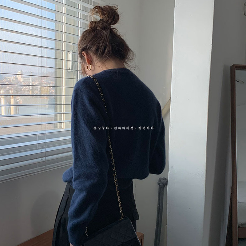 Трикотажный осенний кардиган, свитер с круглым воротником, короткая куртка