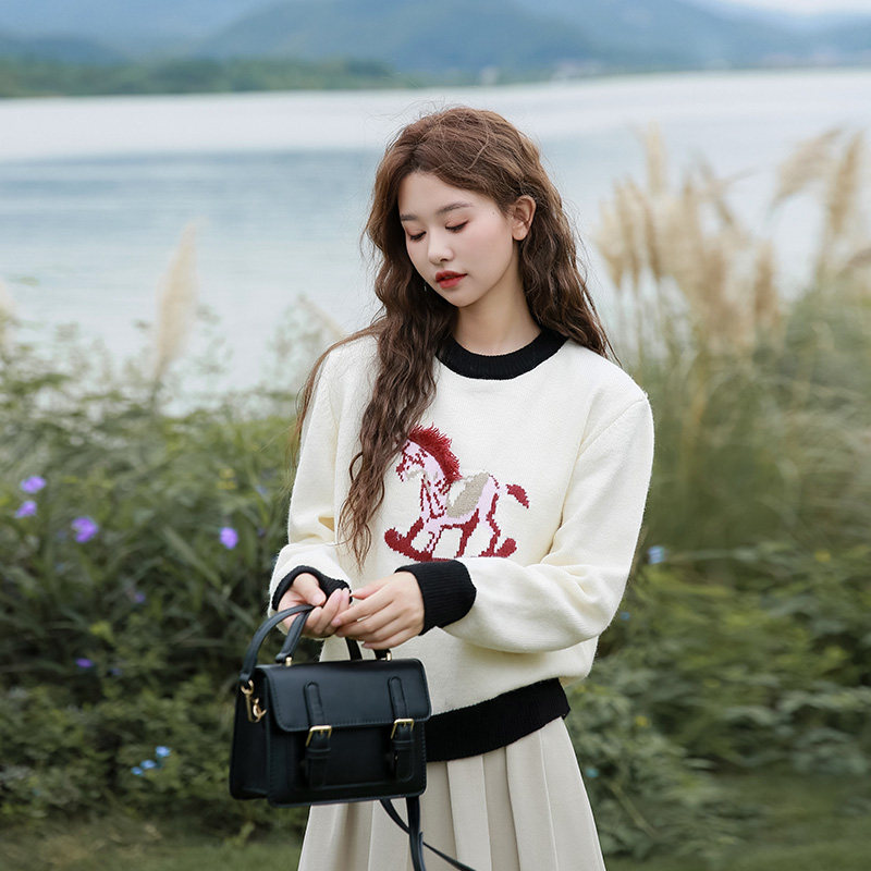 Бежевый мультяшный демисезонный трикотажный свитер для школьников и студентов, подходит для подростков