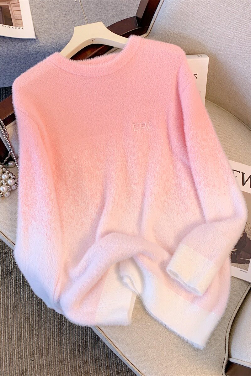 Бархатный японский свитер, ретро трикотажное термобелье с круглым воротником, свободный крой, градиент
