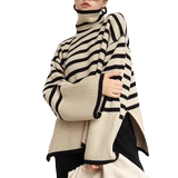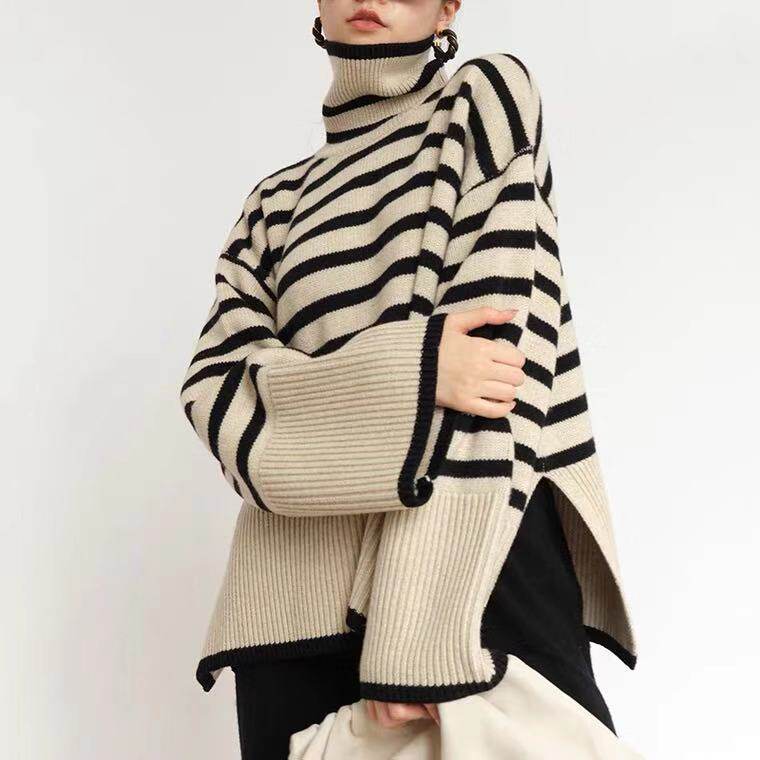 Свободный полосатый с высоким содержанием свитера.