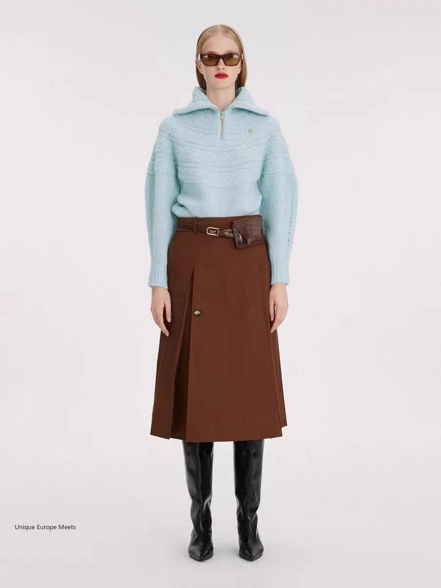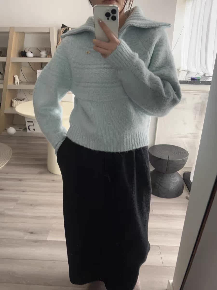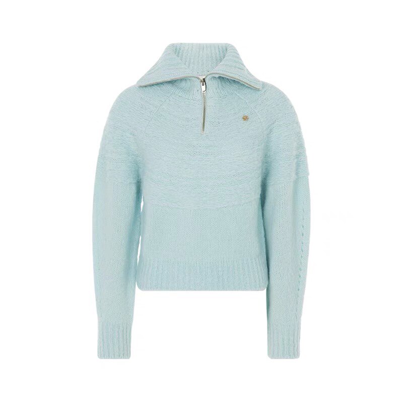 Небольшой дизайнерский демисезонный трикотажный свитер с молнией, на молнии