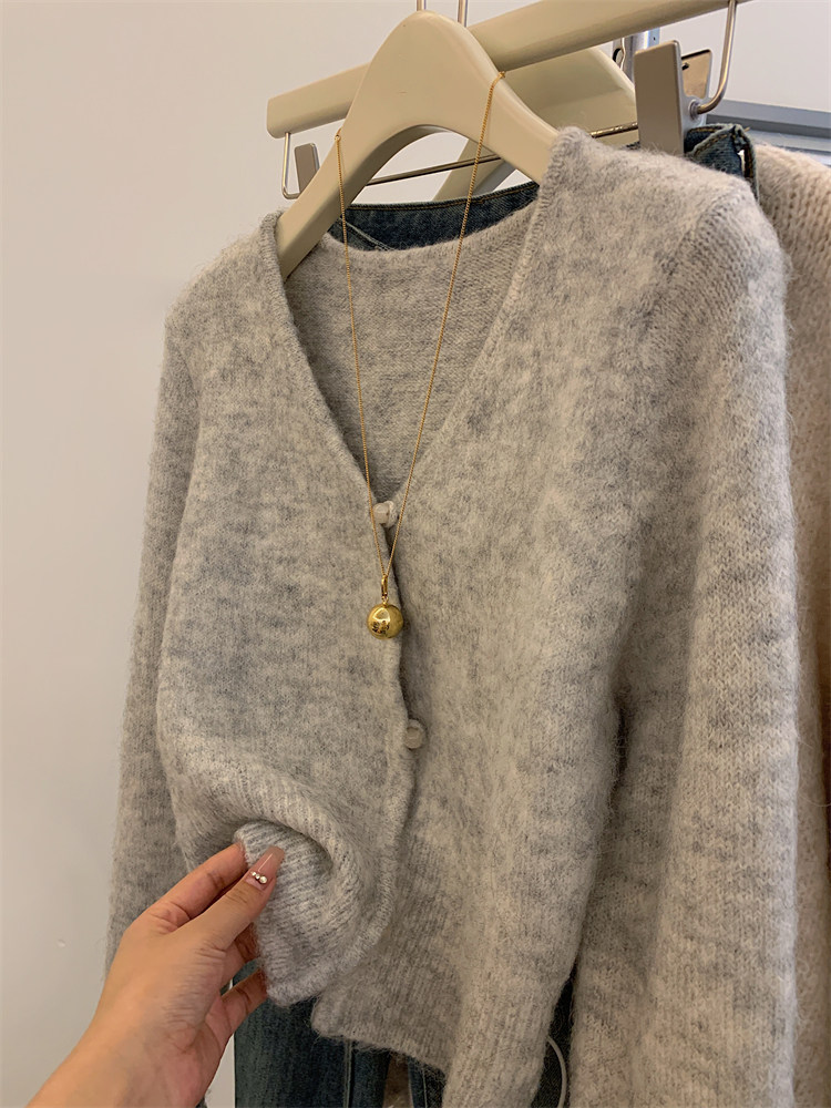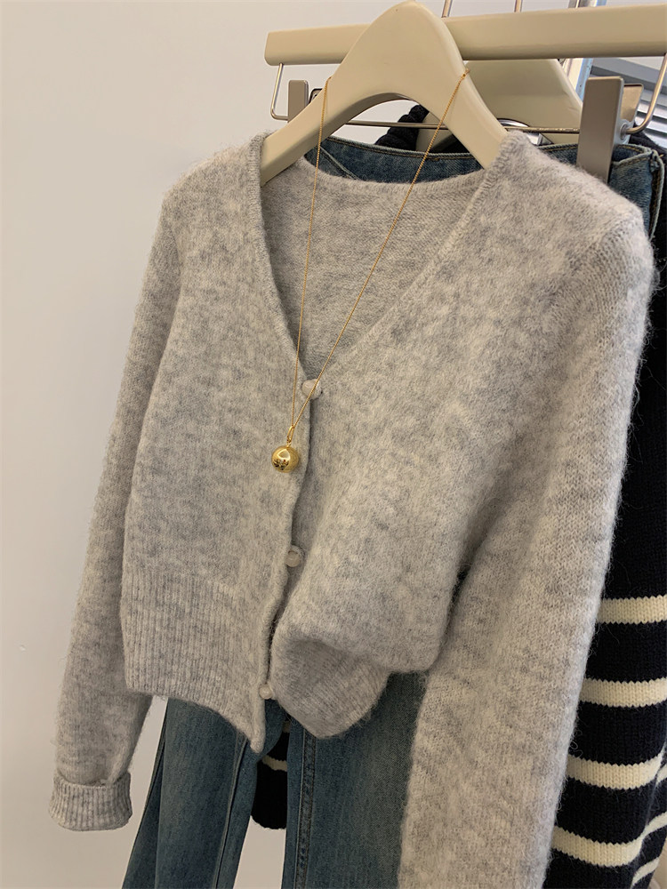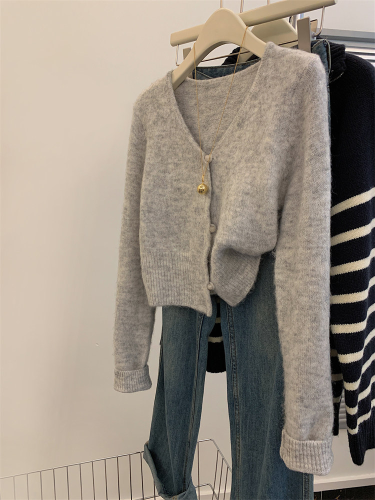 Ретро осенний свитер, короткий кардиган, французский стиль, V-образный вырез