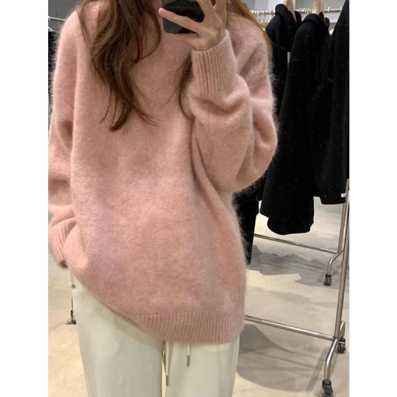 Розовый бархатный демисезонный кашемировый базовый свитер, изысканный стиль
