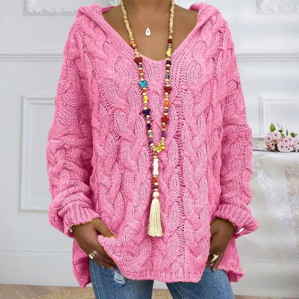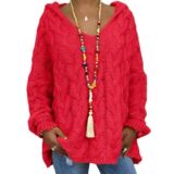 С капюшоном с капюшоном с длинными рукавами скрученная вязаная капюшона осень зима твердый цвет свободный свитер Jumale Женская одежда