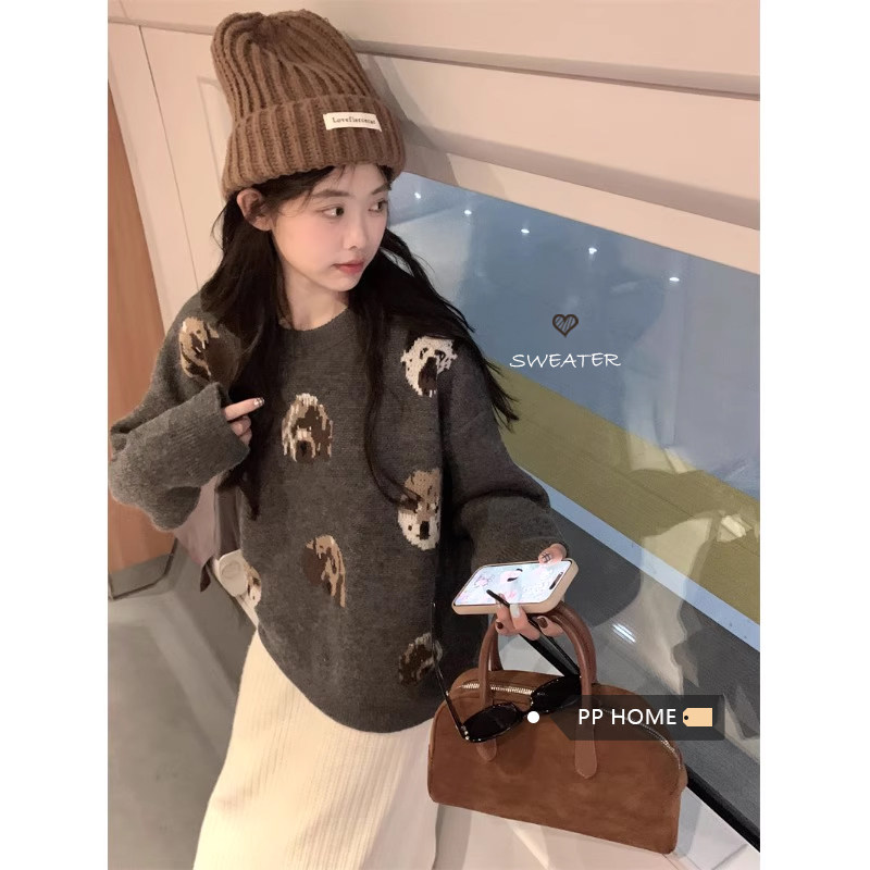 Милый демисезонный свитер с круглым воротником, трикотажное термобелье, подходит для подростков