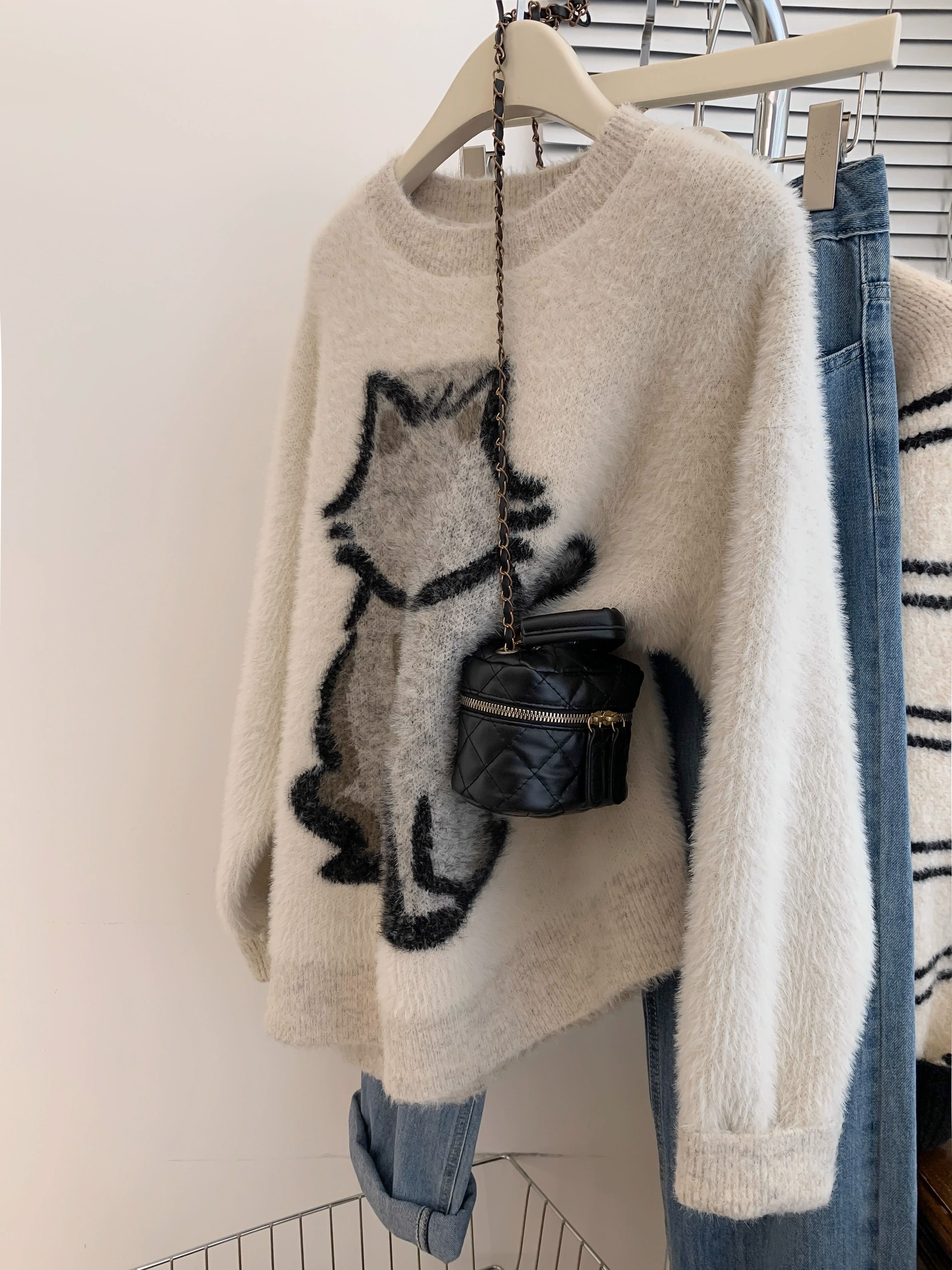 Бархатный демисезонный свитер, демисезонные джинсы с начесом, подходит для подростков, изысканный стиль