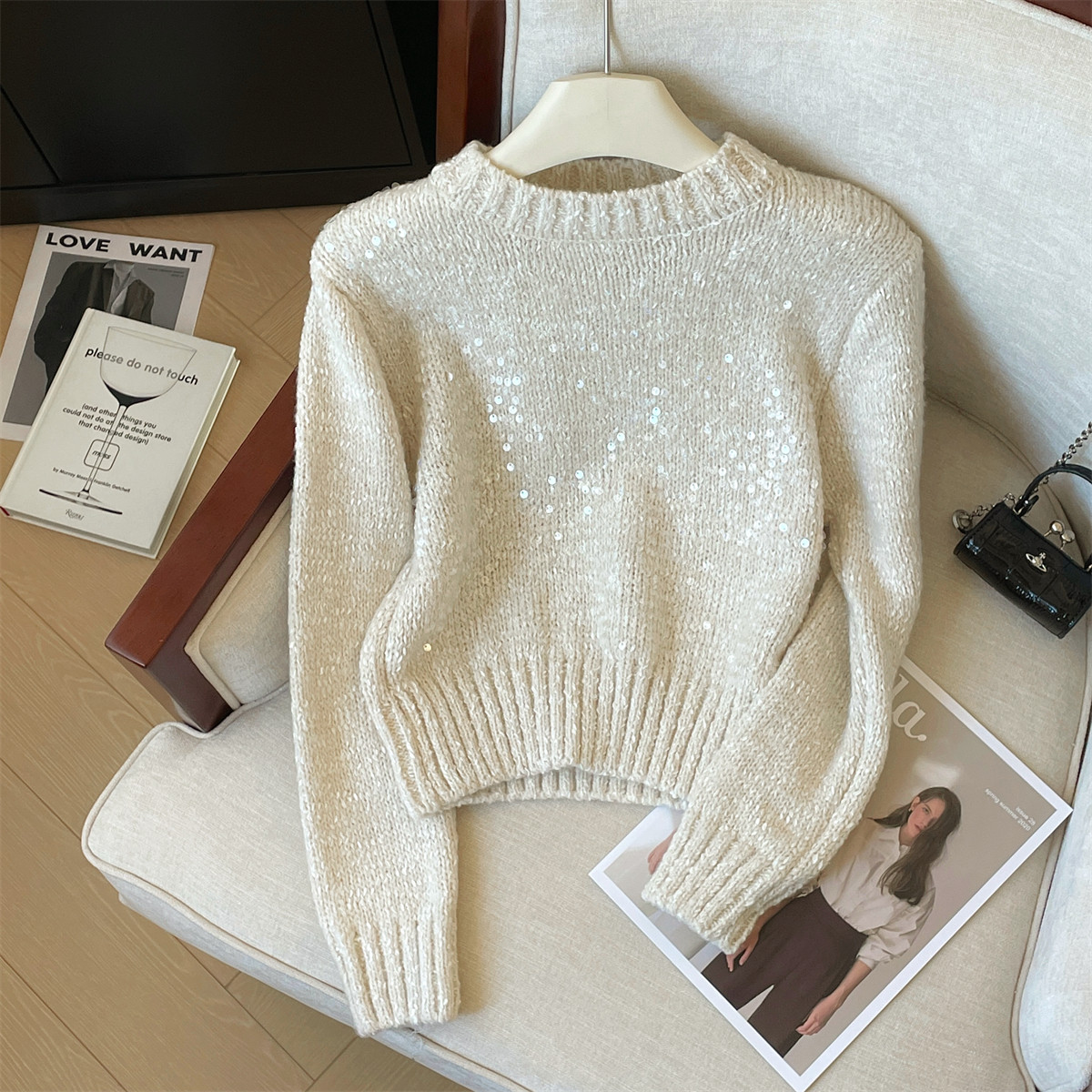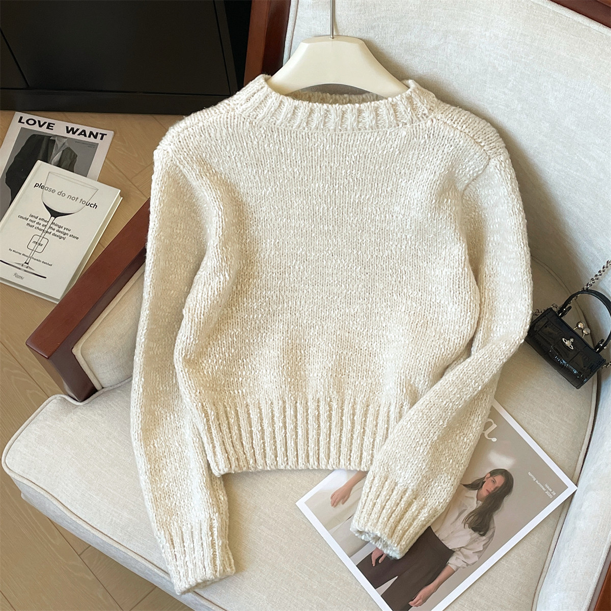 Демисезонный короткий трикотажный свитер с круглым воротником, увеличенная толщина, в корейском стиле