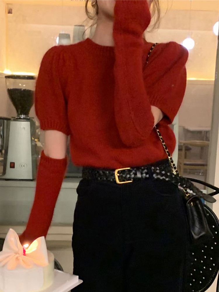 Красный весенний трикотажный базовый приятный телу дизайнерский свитер