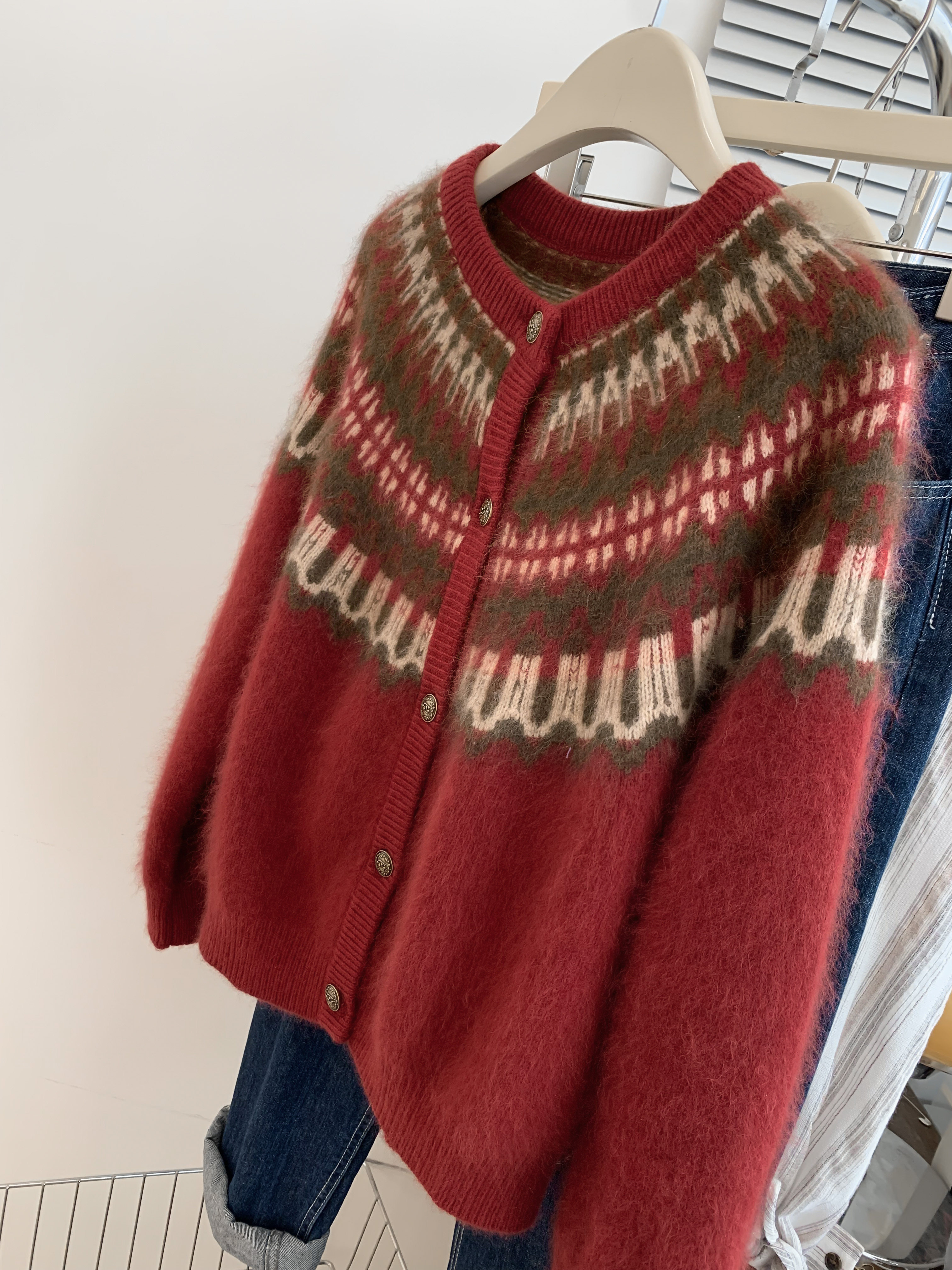 Красный бархатный зимний свитер, демисезонная куртка, кардиган, увеличенная толщина, изысканный стиль