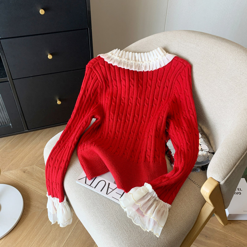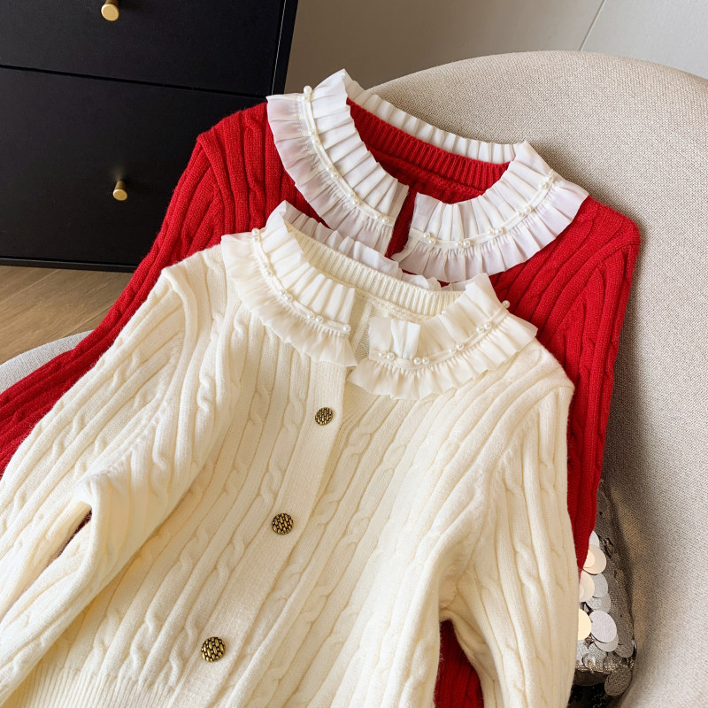 Красный оберег на день рождения, свитер с косичкой, демисезонная куртка, трикотажный лонгслив, французский стиль, в стиле Шанель