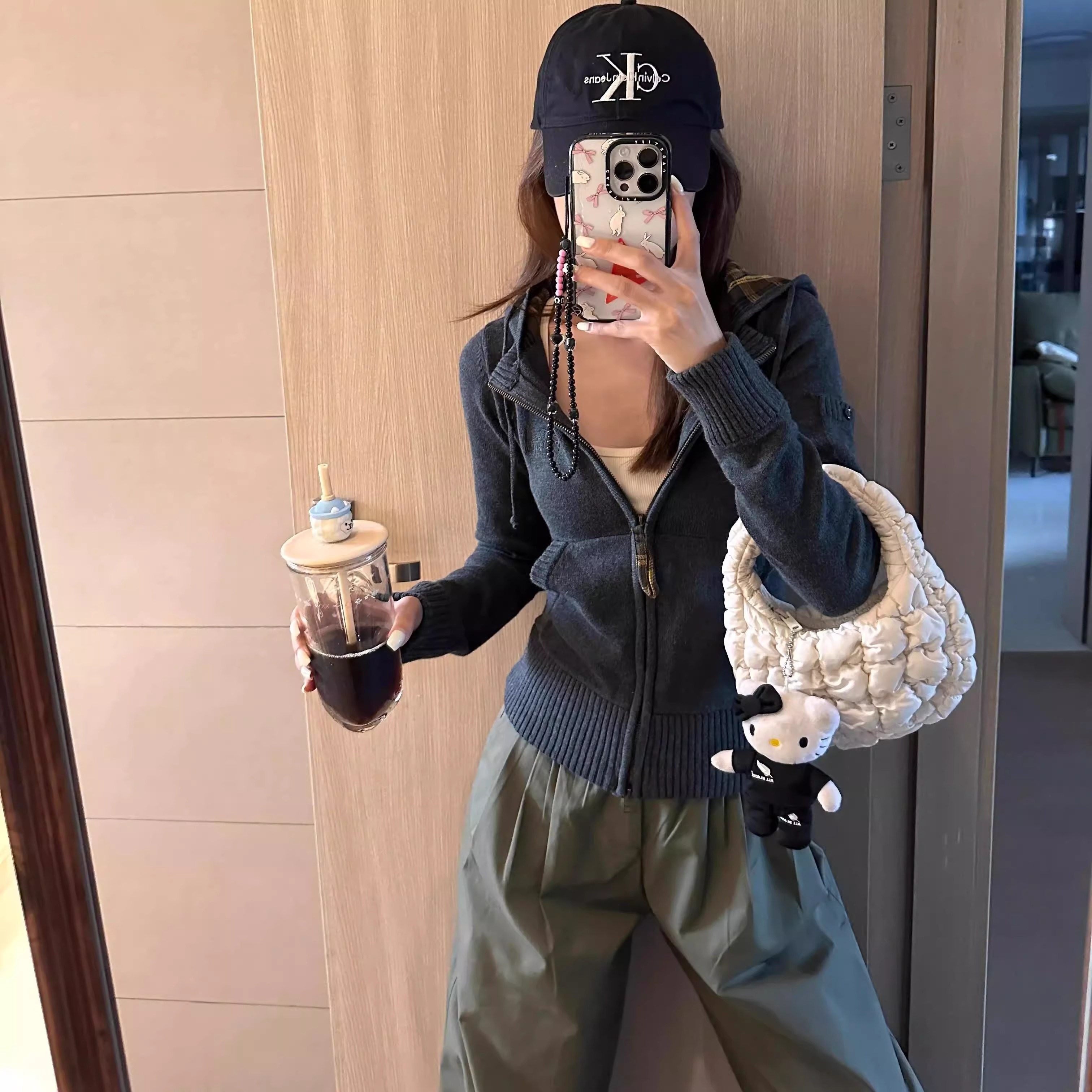 Ретро свитер с капюшоном, демисезонный кардиган, трикотажная короткая куртка, в американском стиле