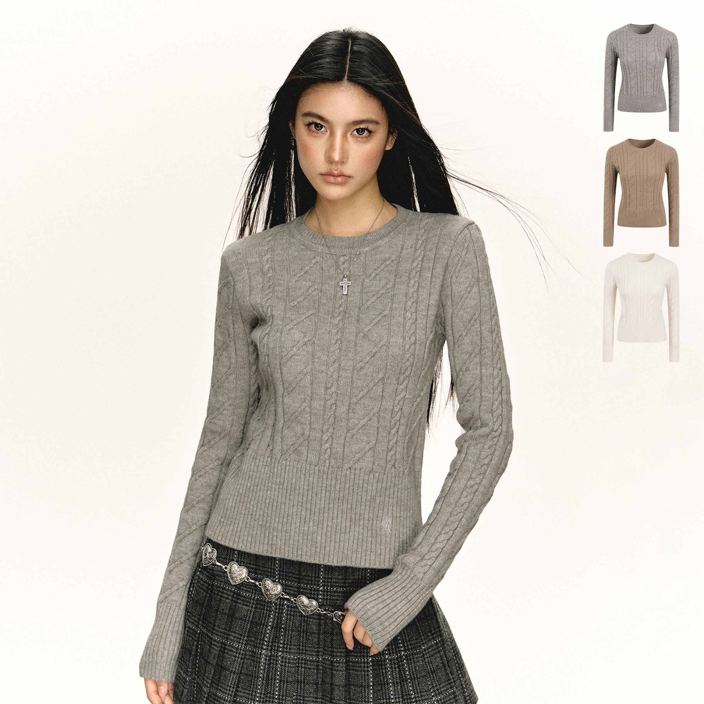 Ретро трикотажный осенний свитер с круглым воротником, в американском стиле