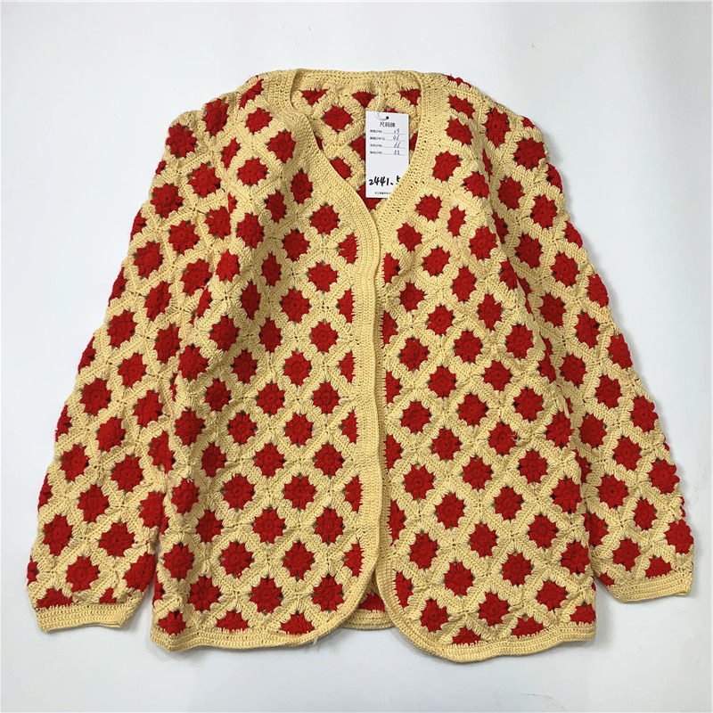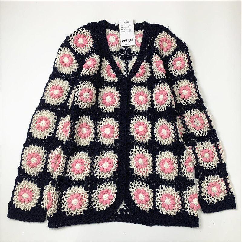 Тканый винтажный свитер в стиле ретро с свежей вышивкой и тиснением, смешанный вручную с цветочным узором, для девочек 2441