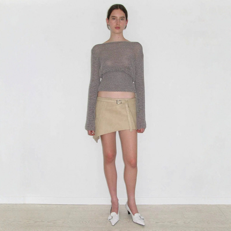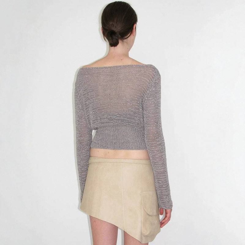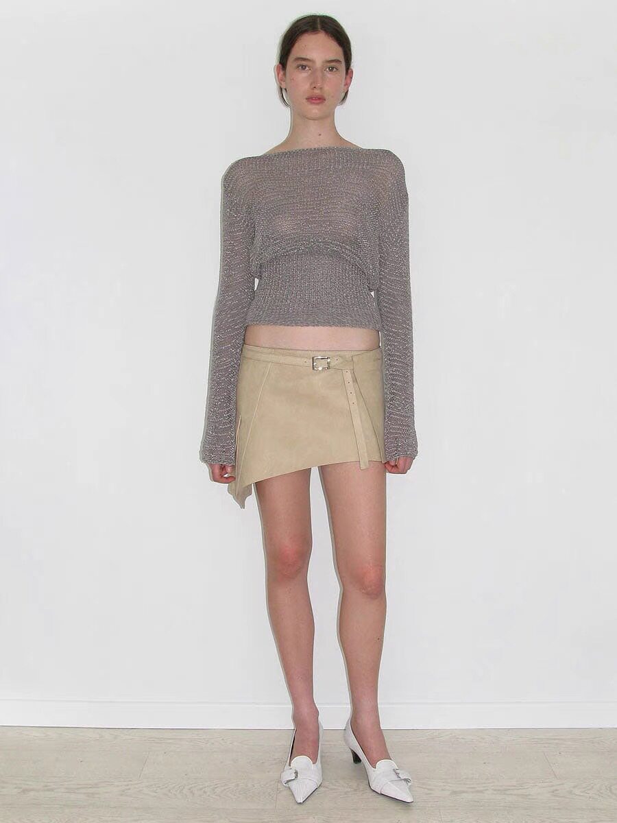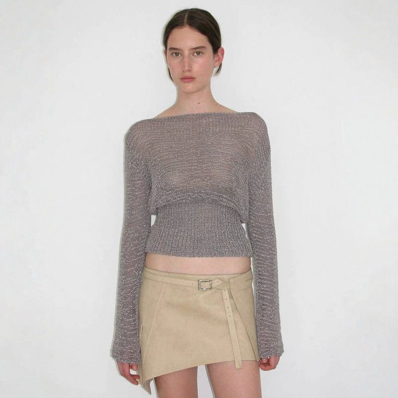 Палома шерстяной темперамент Полый рыхлый воротник с боковыми плечами и талией слегка прозрачный топ с длинными рукавами