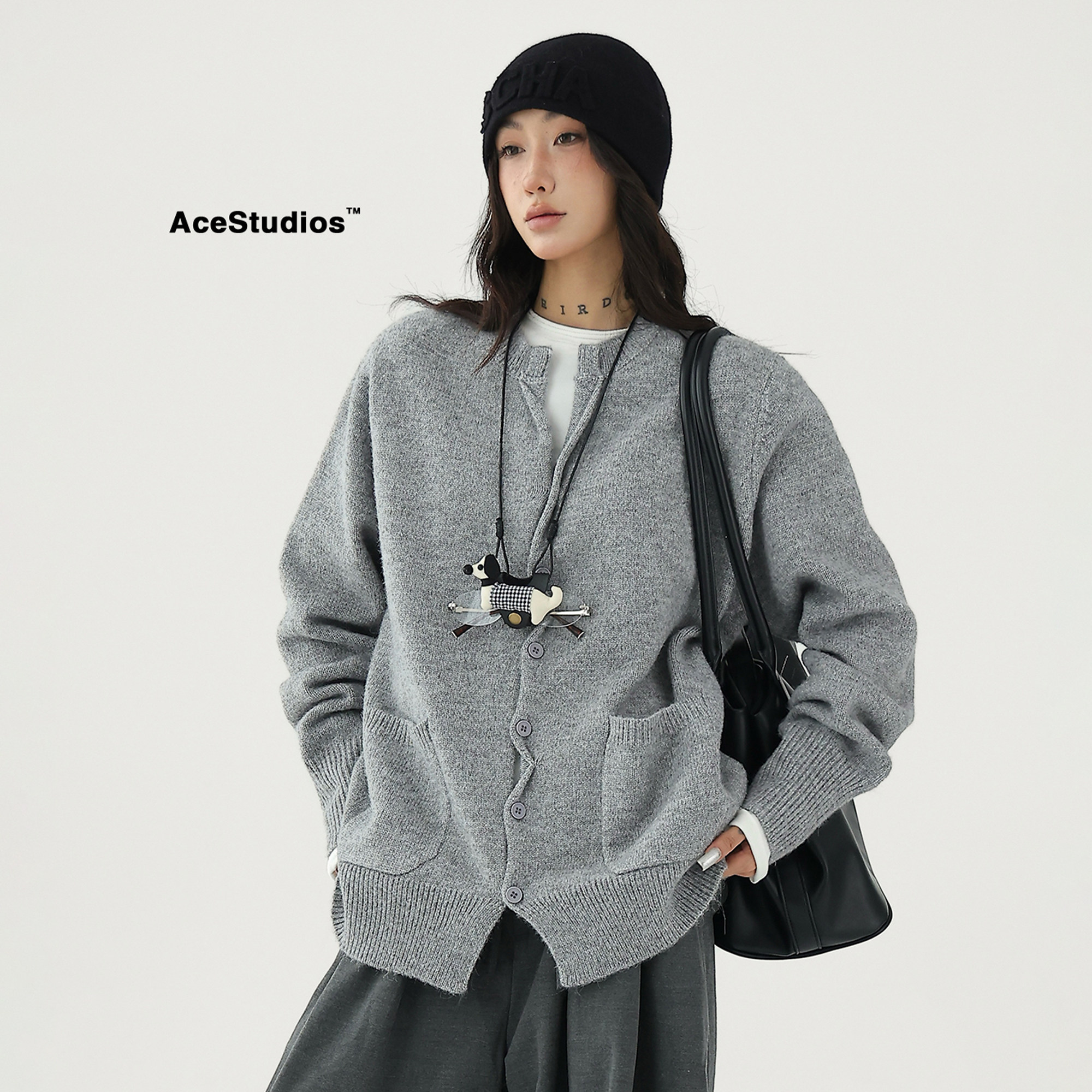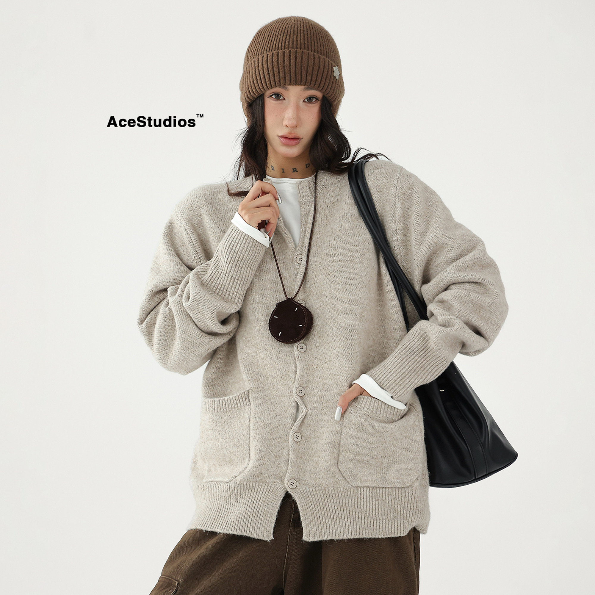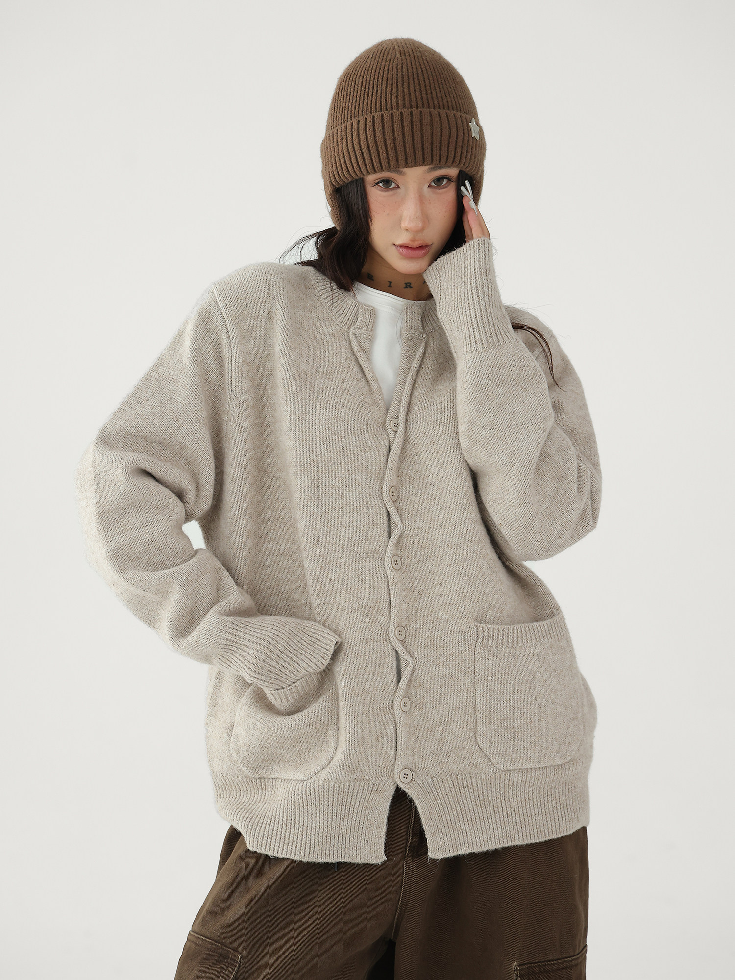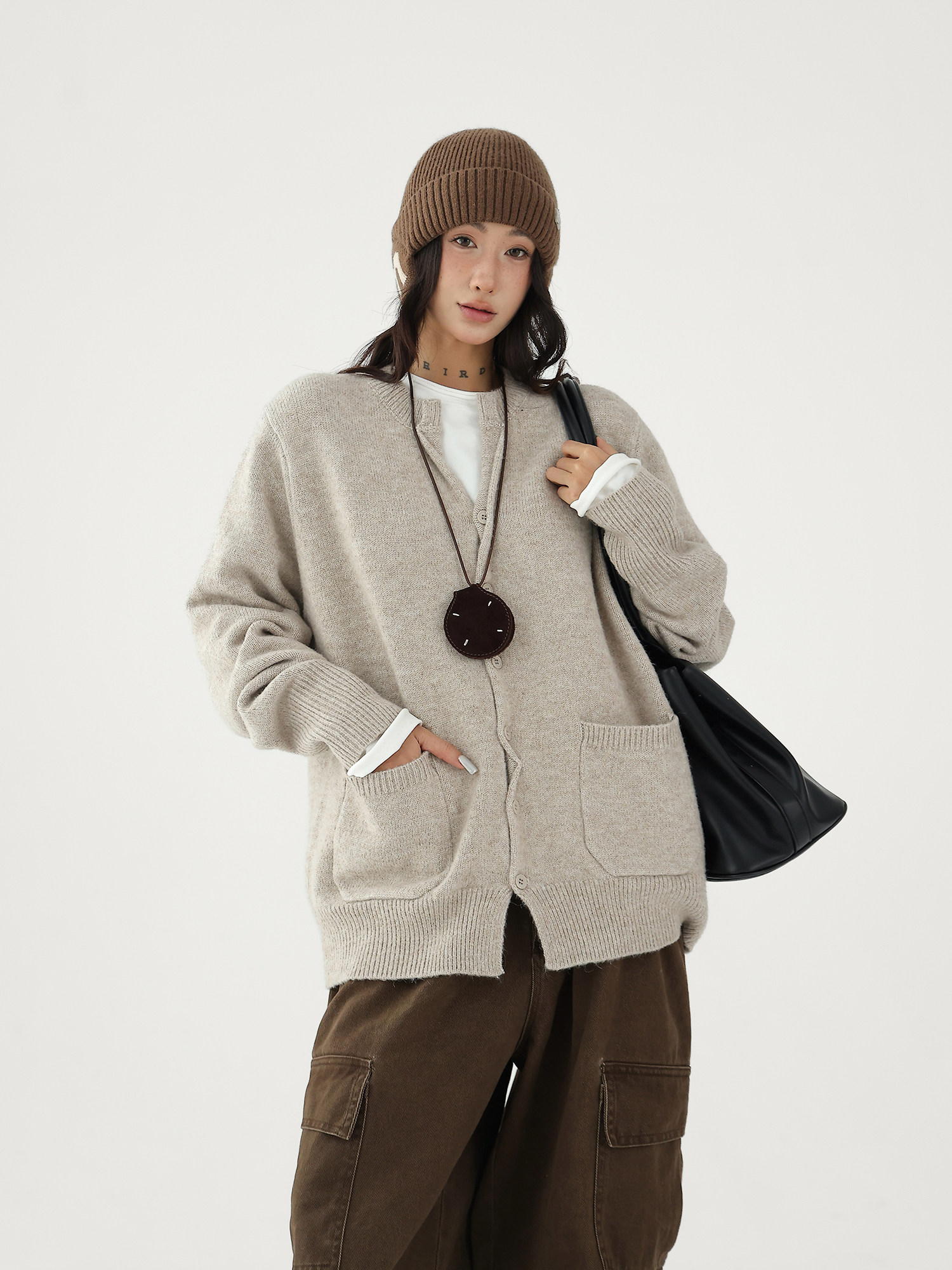 Шерстяной кардиган с круглым воротником, свитер, куртка, увеличенная толщина, яркий броский стиль, изысканный стиль, свободный крой