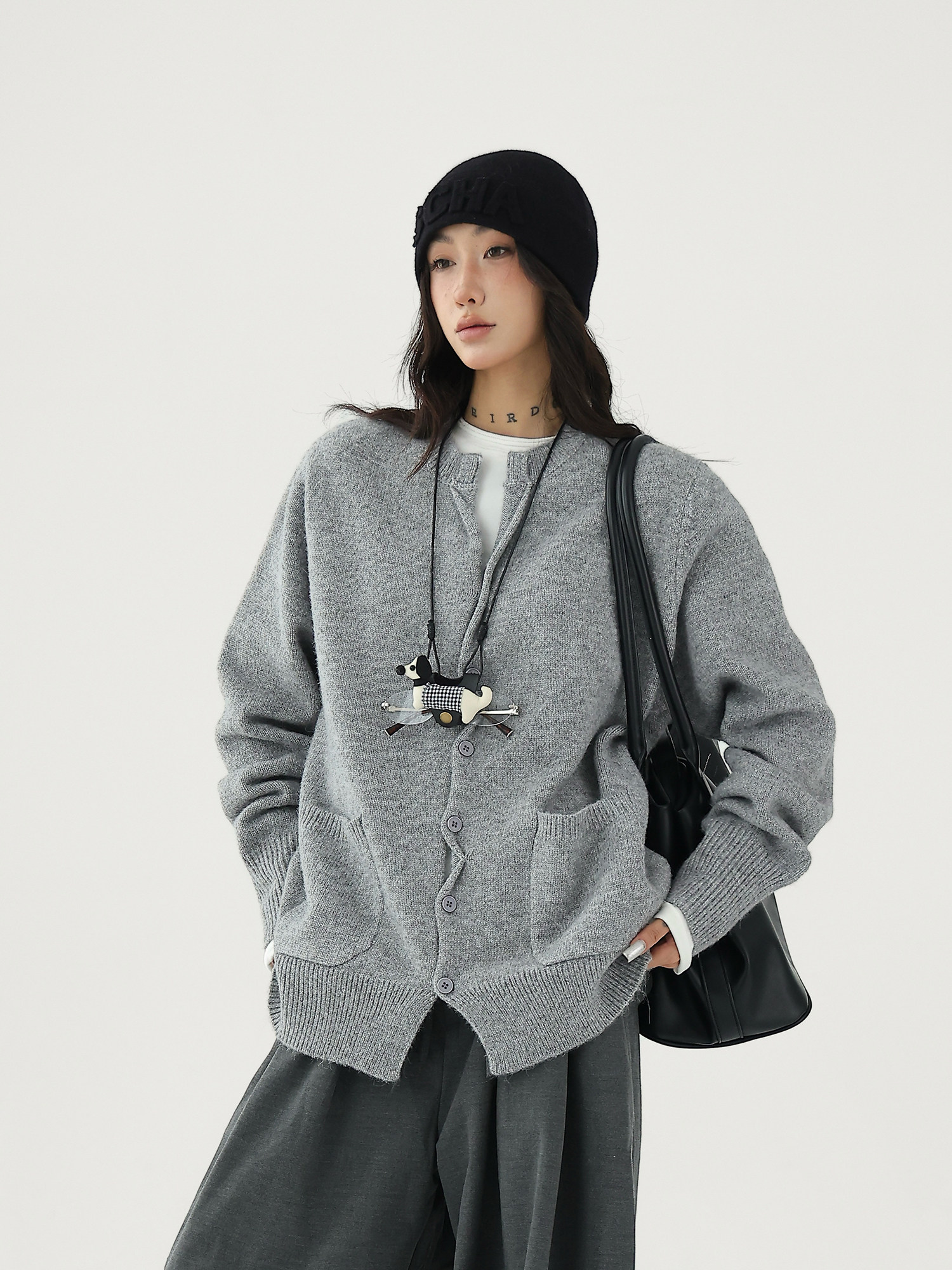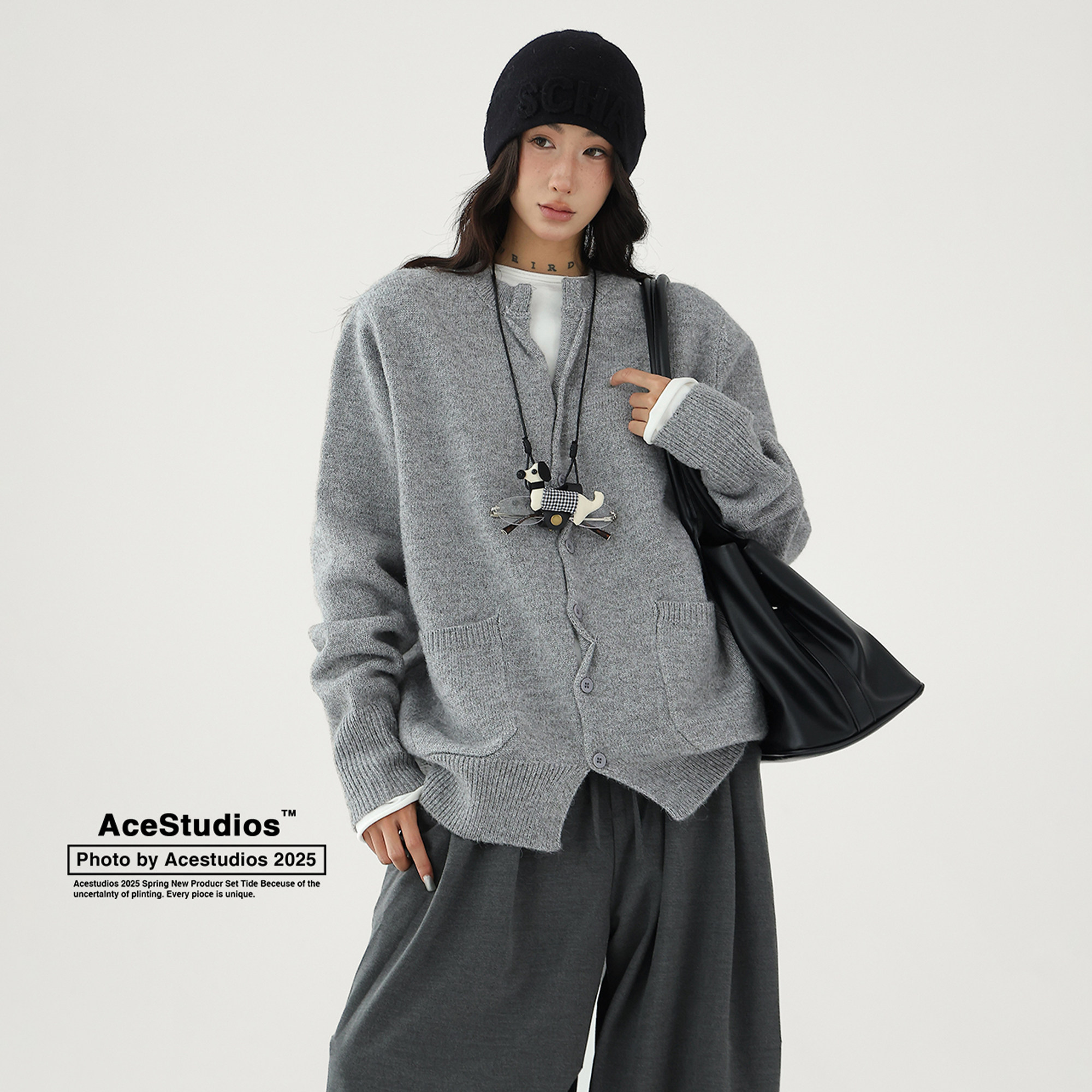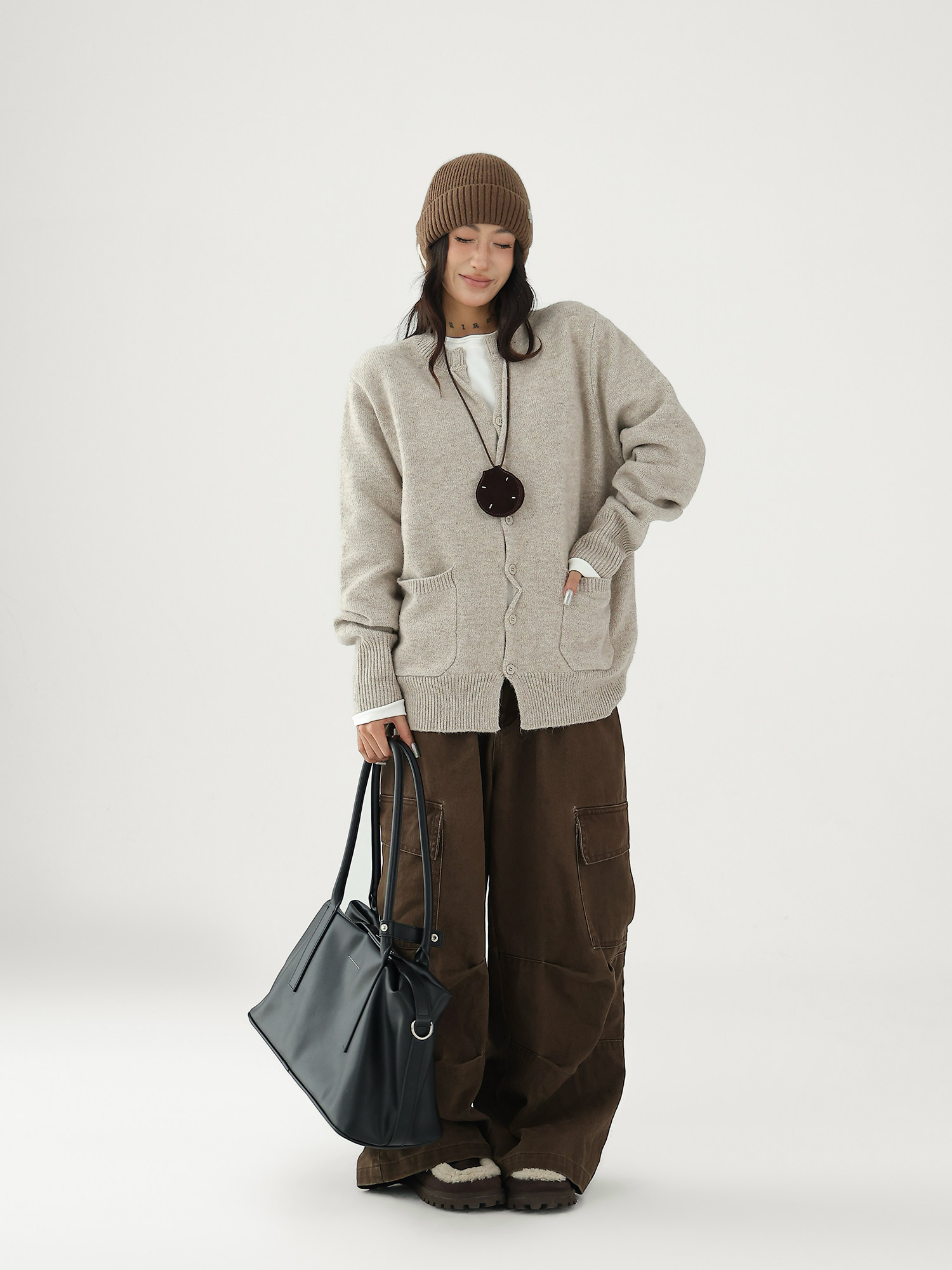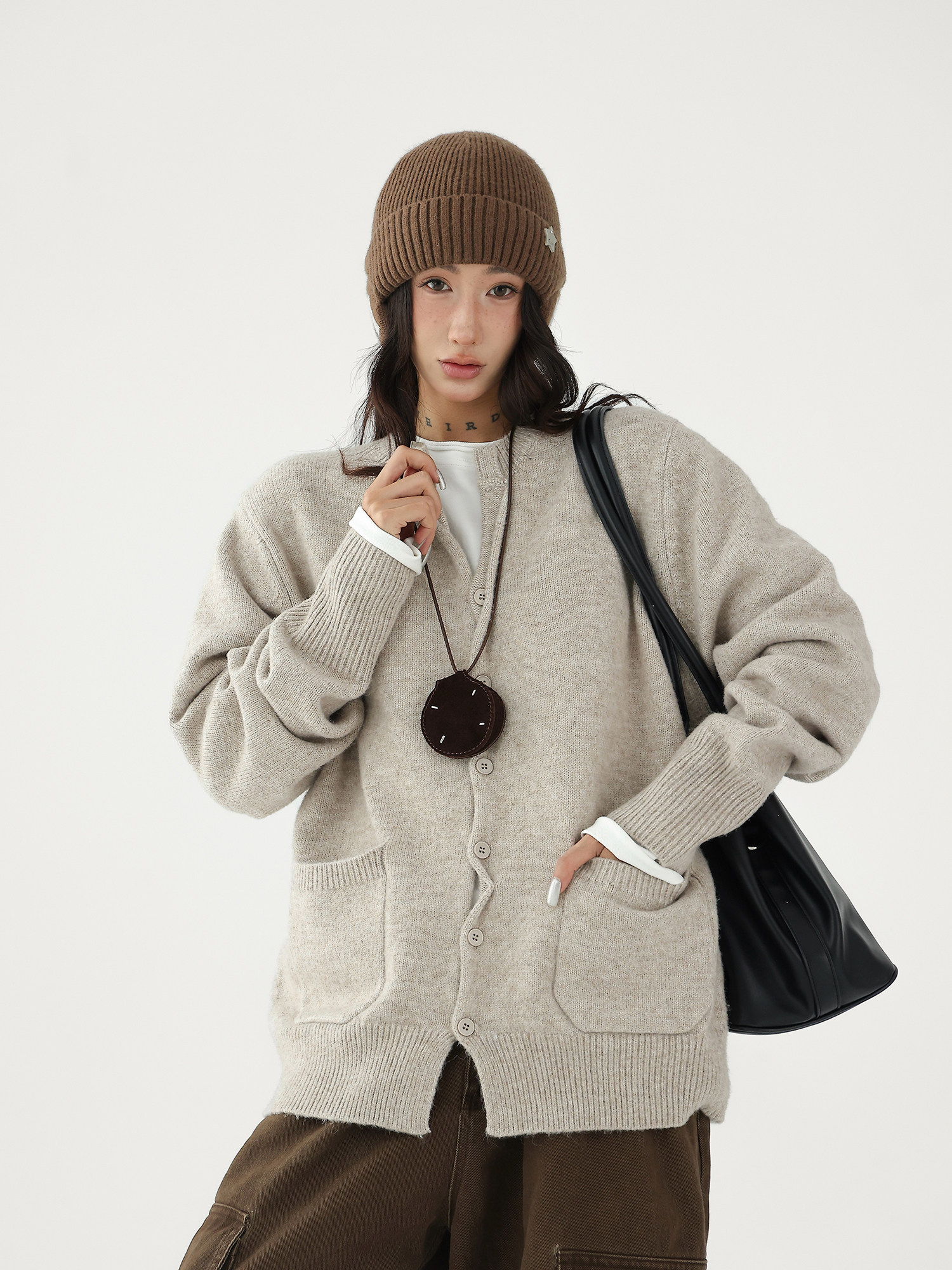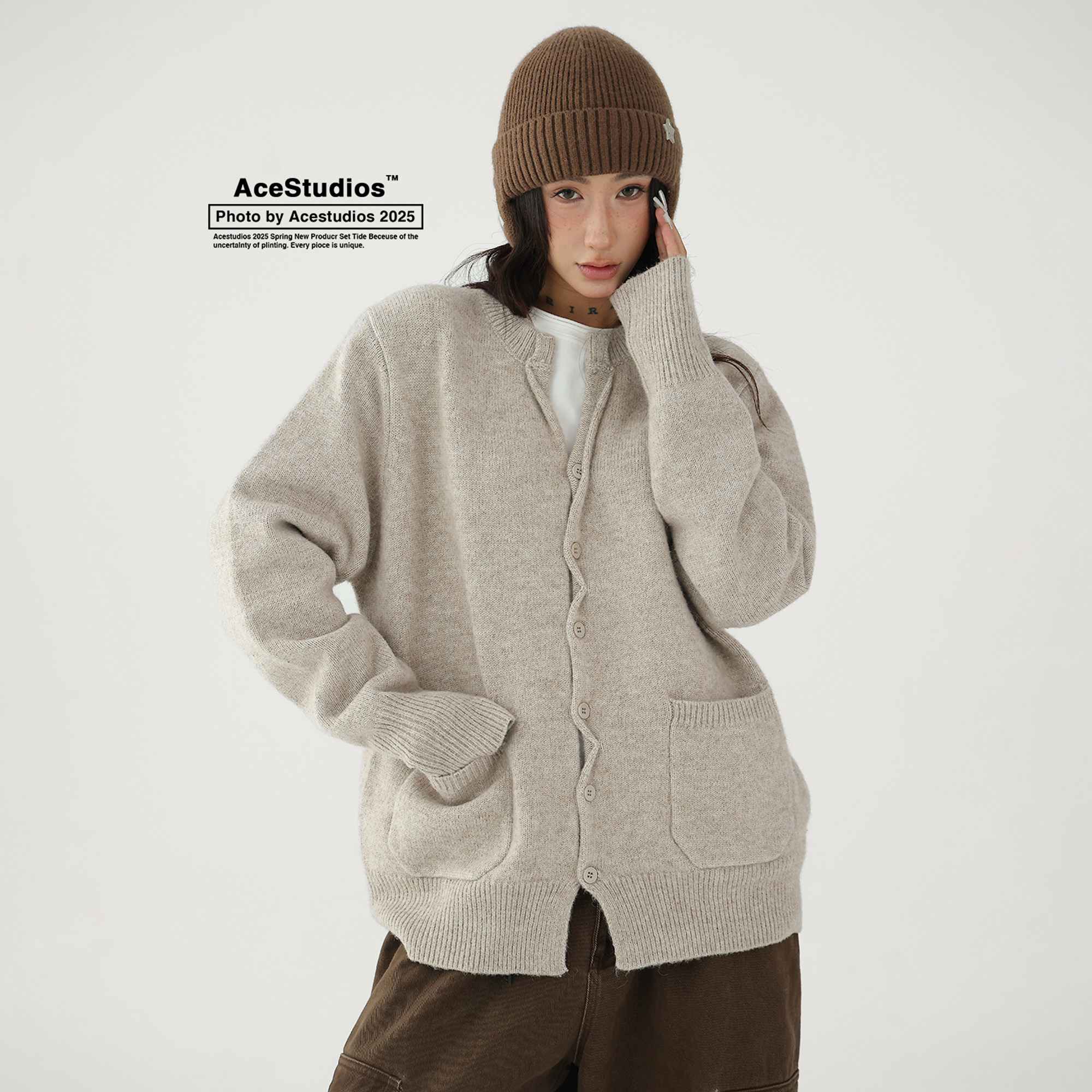 Шерстяной кардиган с круглым воротником, свитер, куртка, увеличенная толщина, яркий броский стиль, изысканный стиль, свободный крой