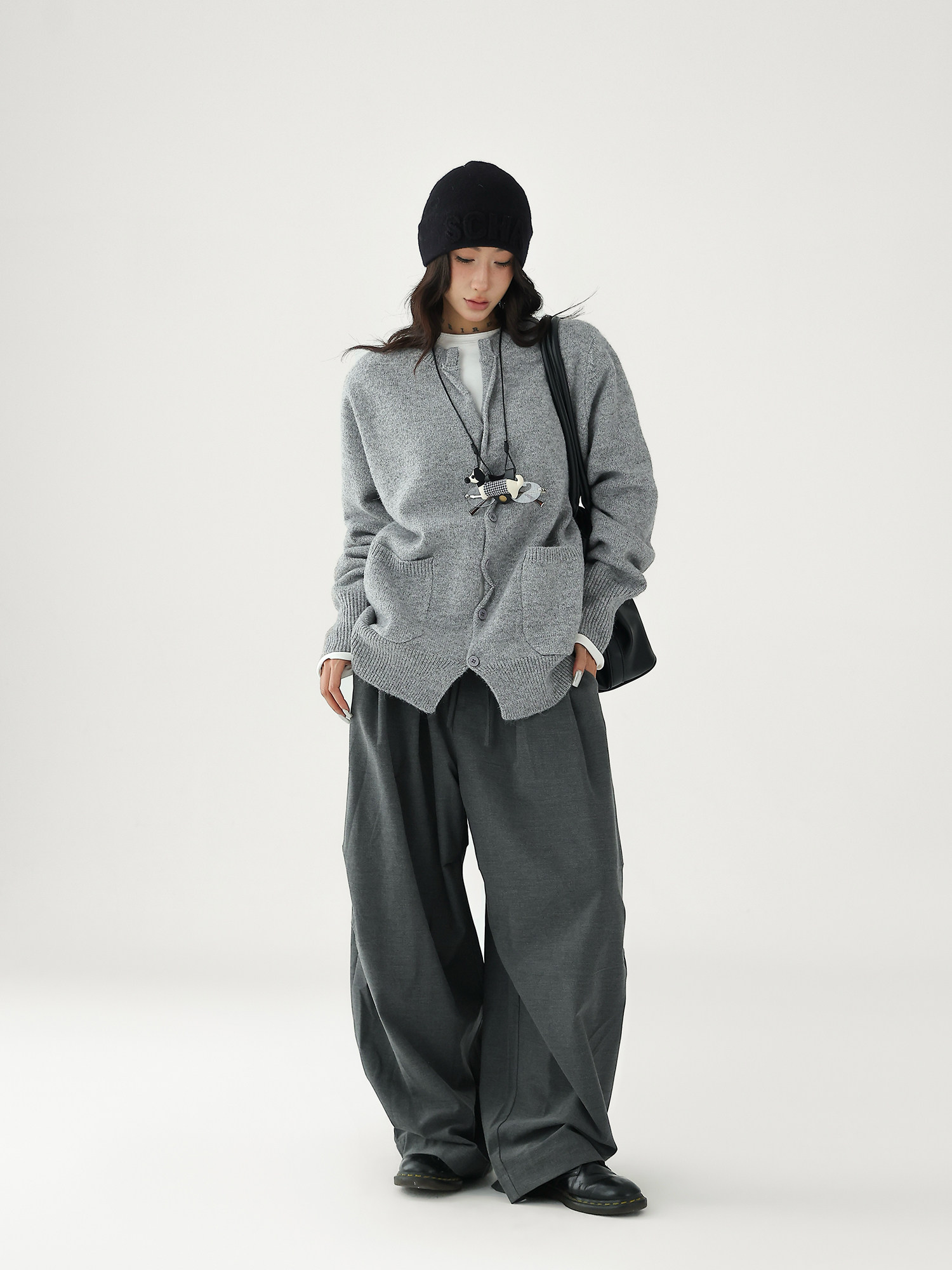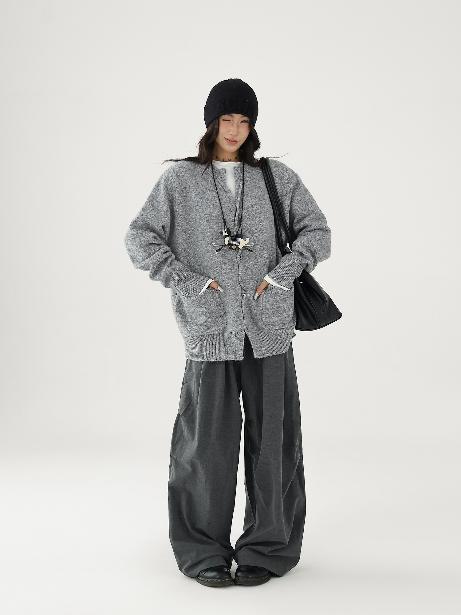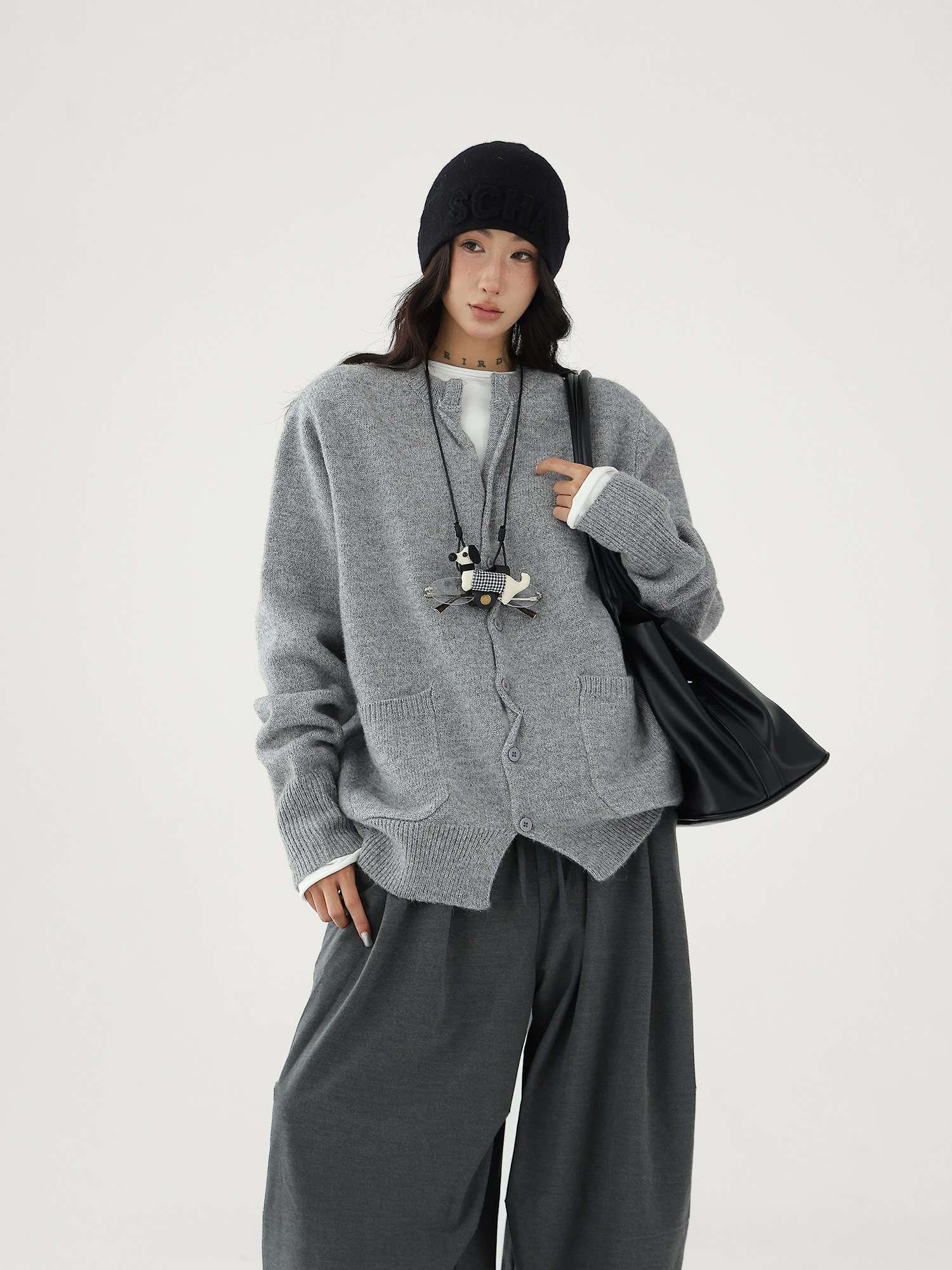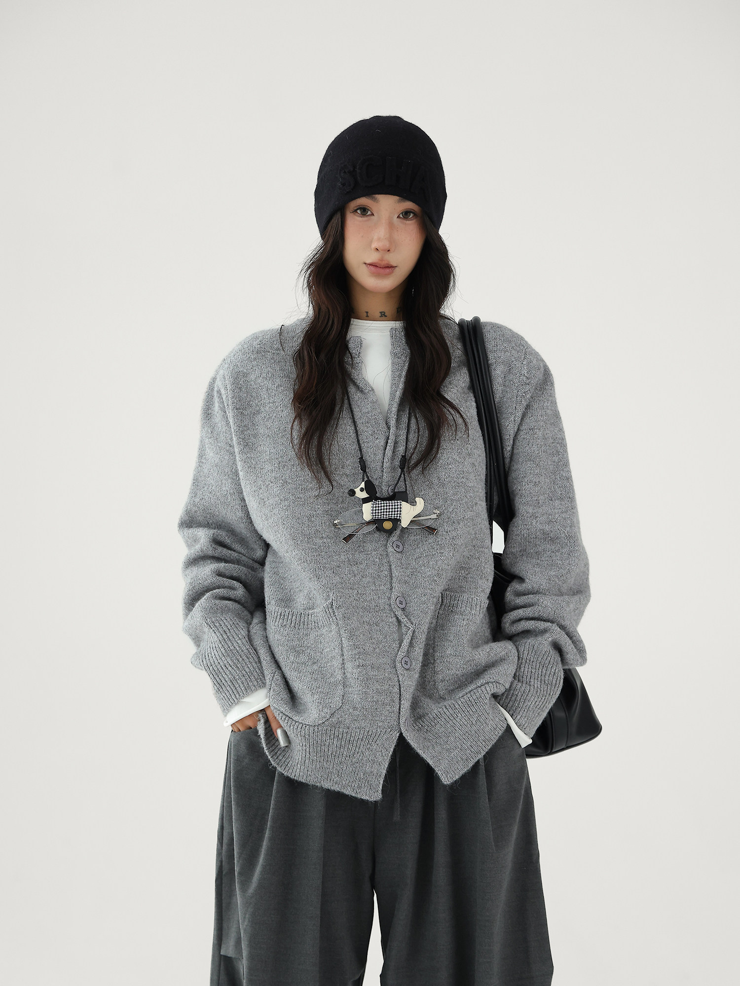 Шерстяной кардиган с круглым воротником, свитер, куртка, увеличенная толщина, яркий броский стиль, изысканный стиль, свободный крой