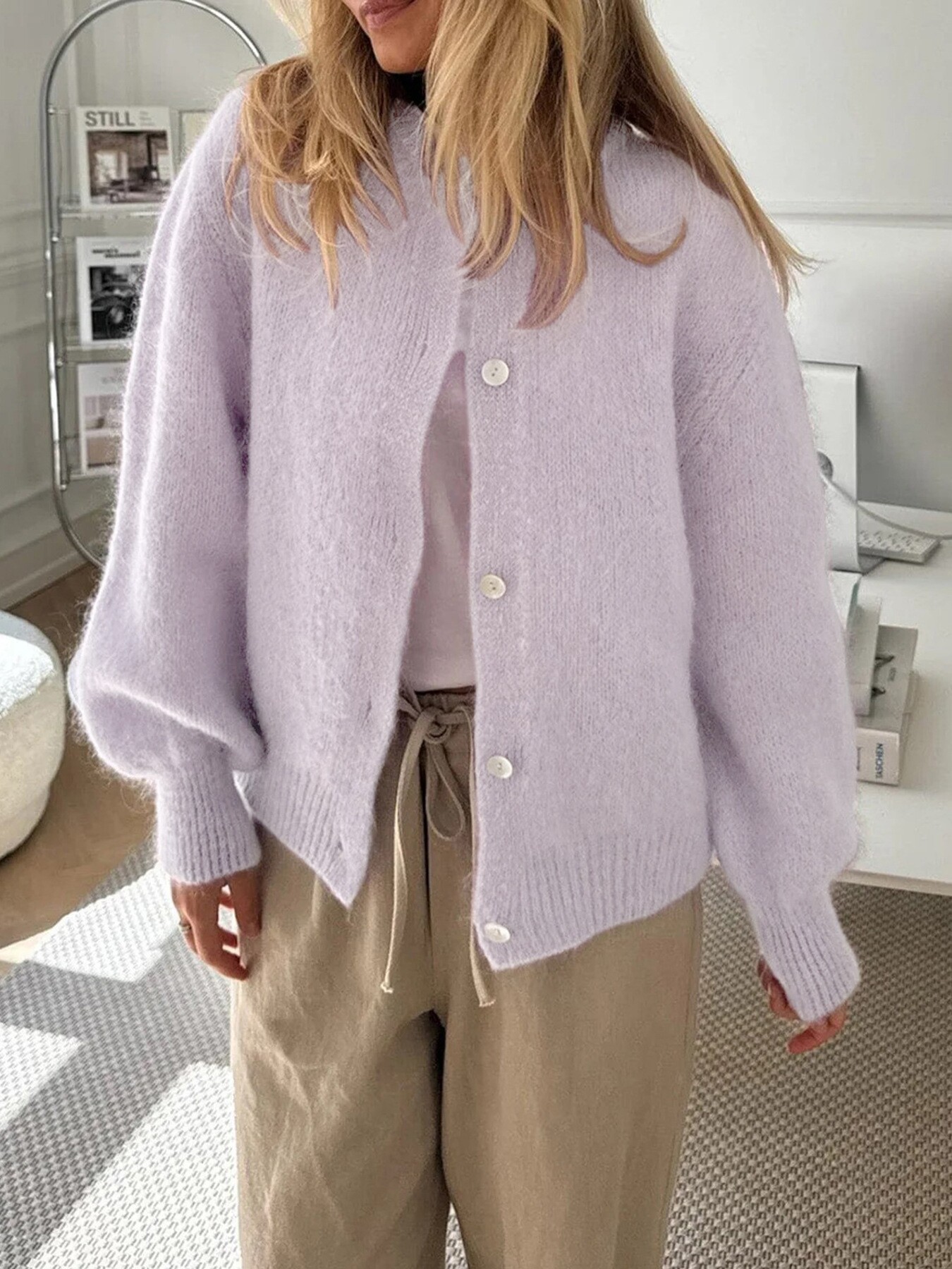 Кардиган для отдыха с круглым воротником, свитер, европейский стиль, оверсайз
