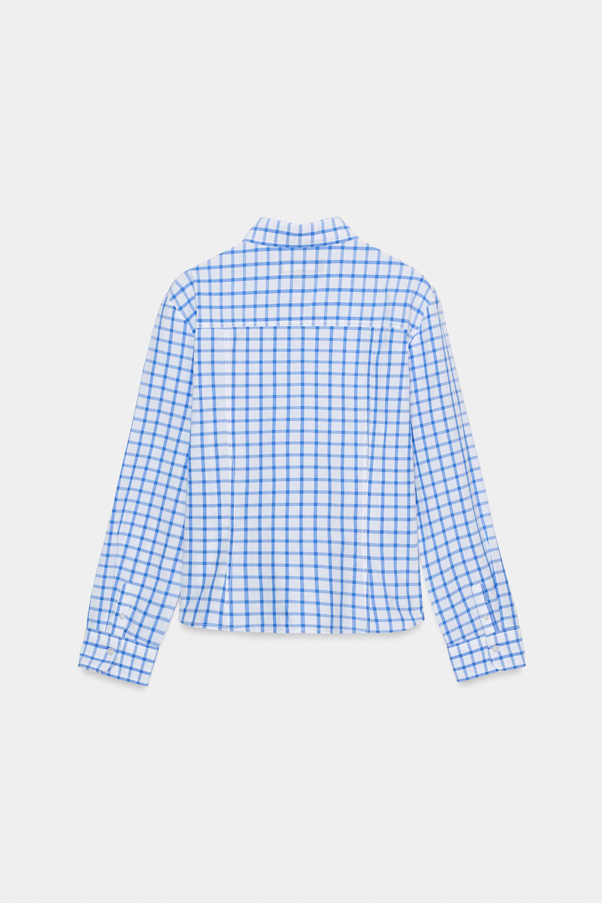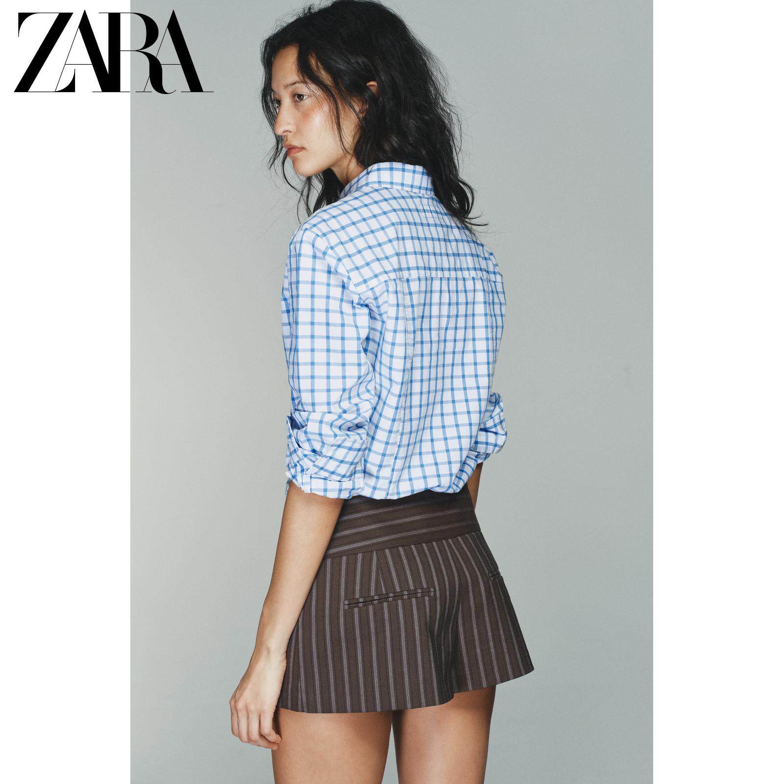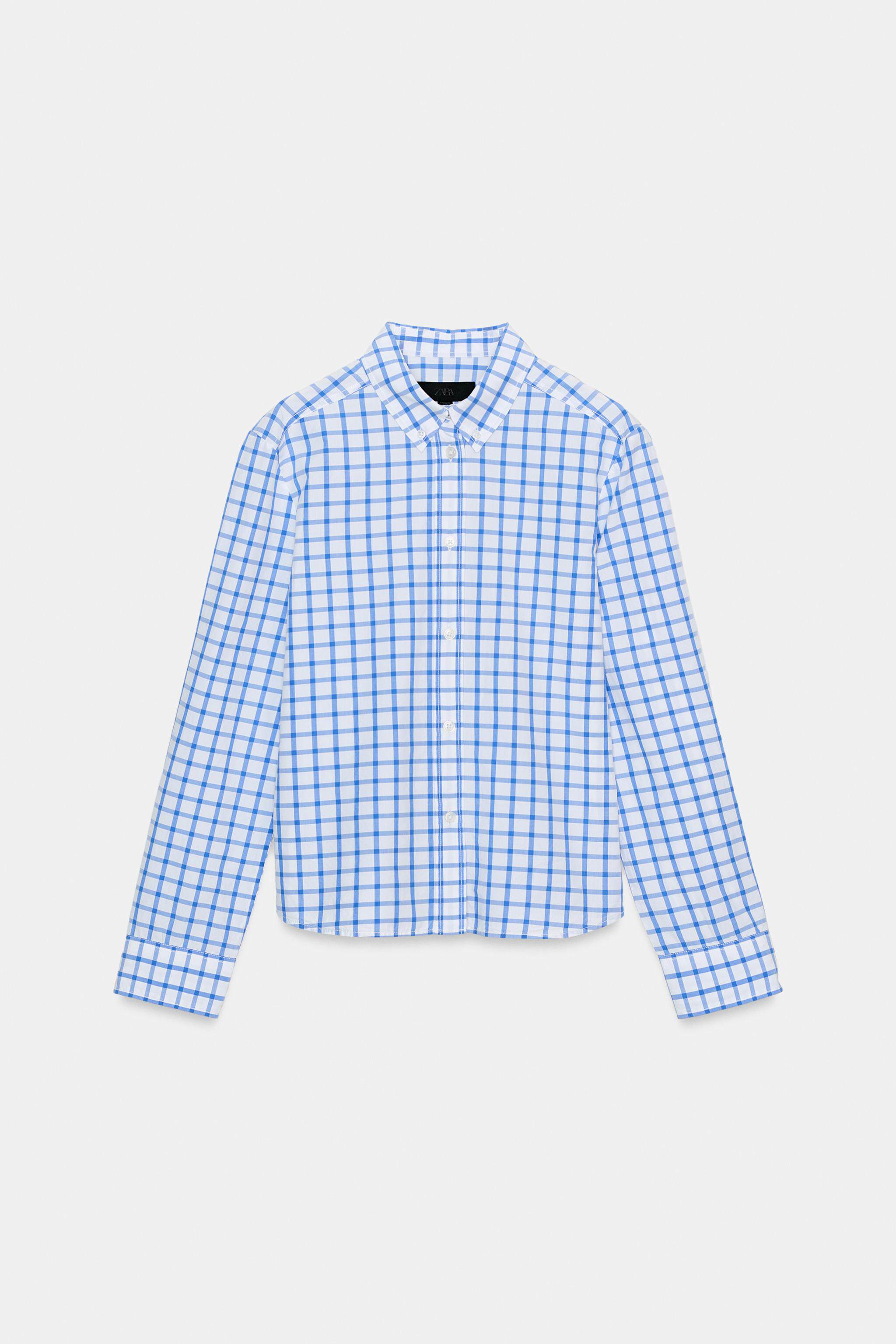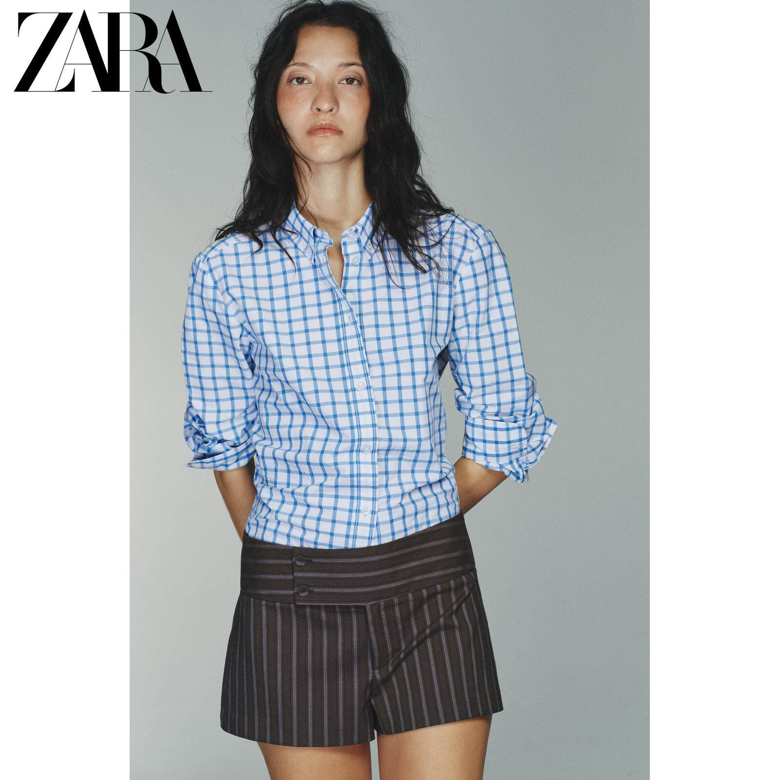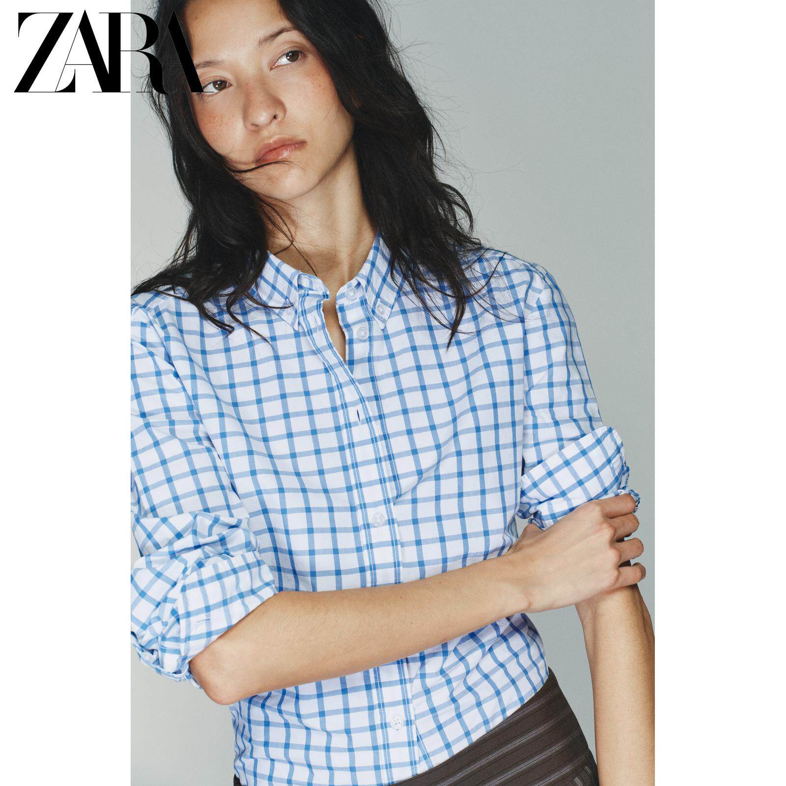 ZARA Новое поступление зимы 2025 года, женская рубашка из поплина в клетку с длинными рукавами и воротником TRF 0975005 420