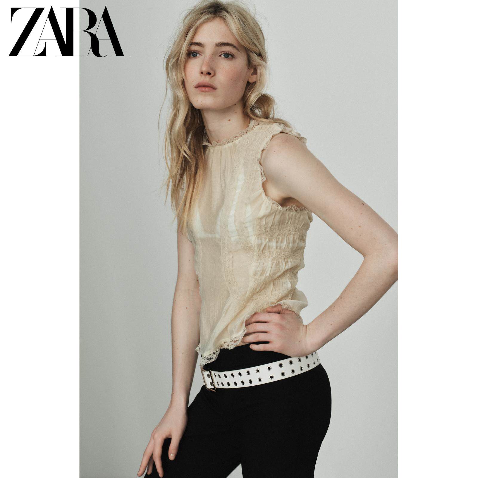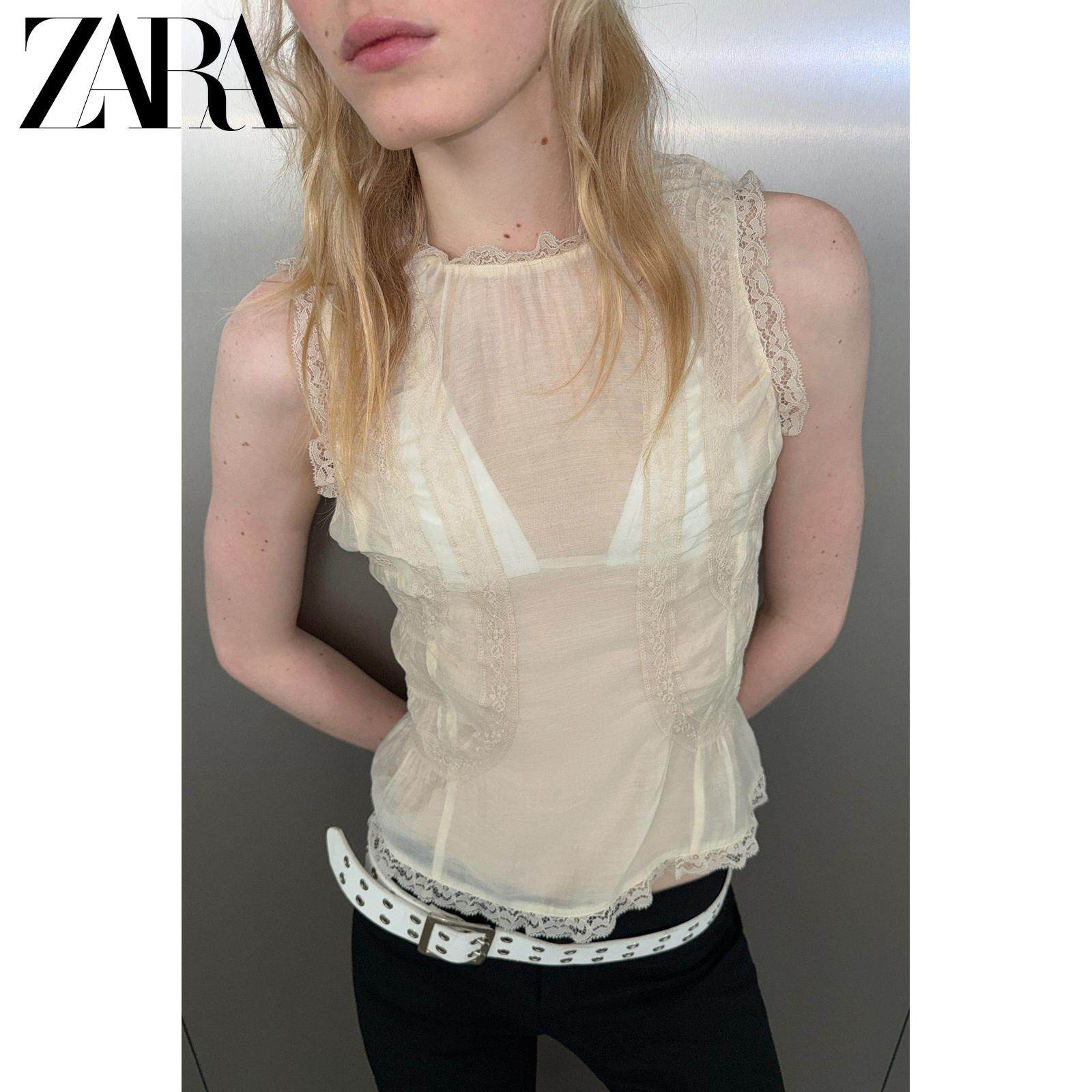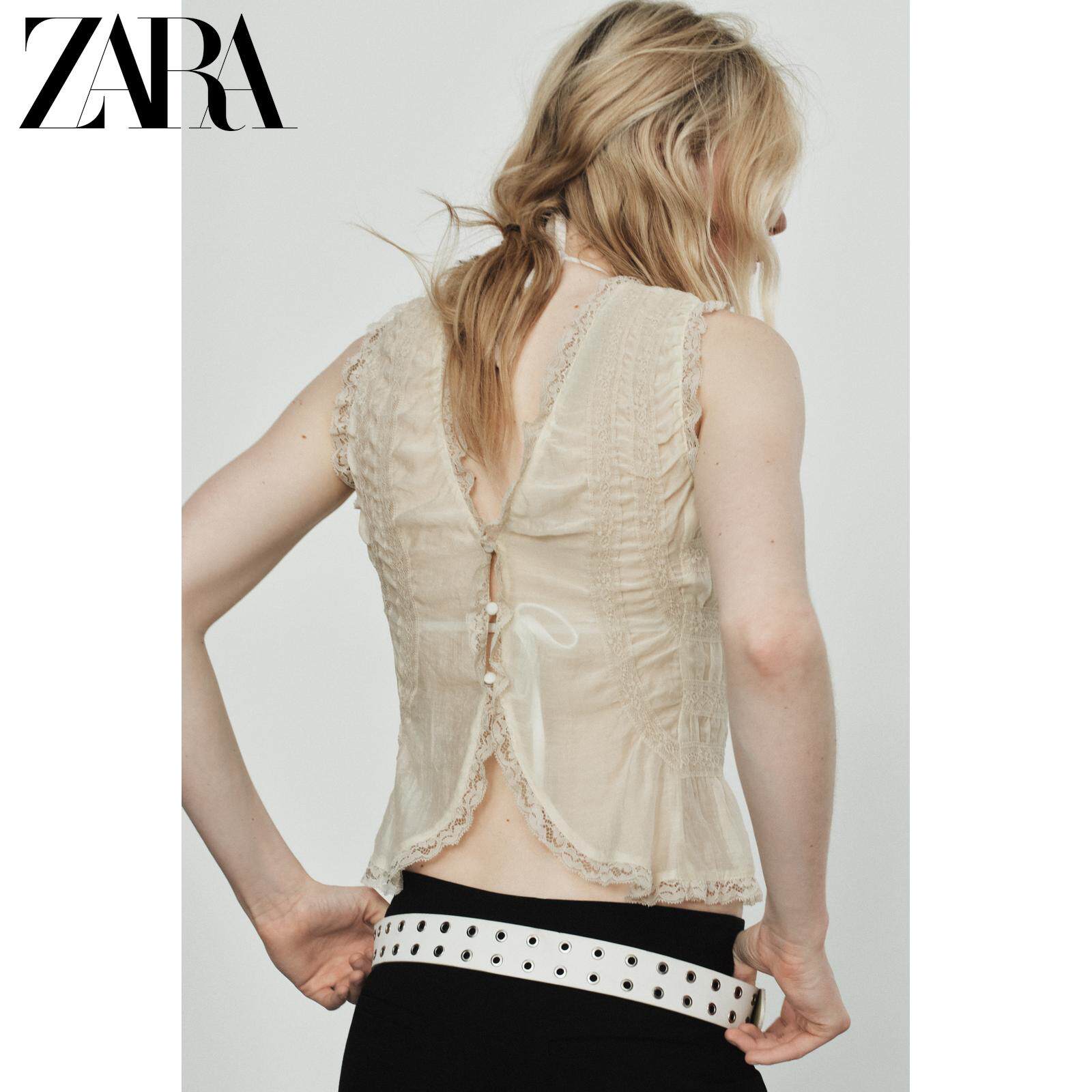ZARA Новое поступление весны и лета 2026, женская рубашка без рукавов с v-образным вырезом и кружевной драпировкой TRF 3067036 733