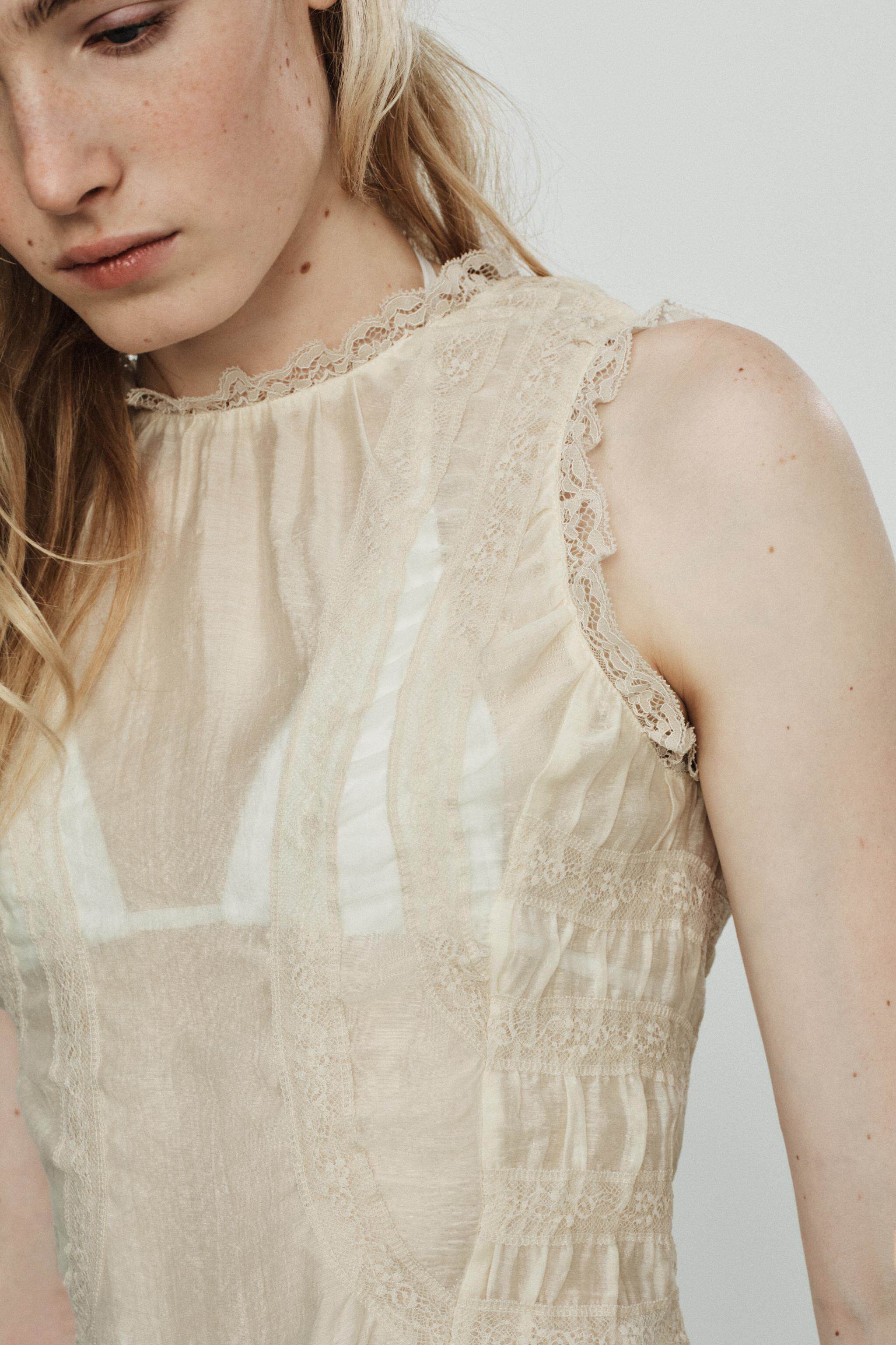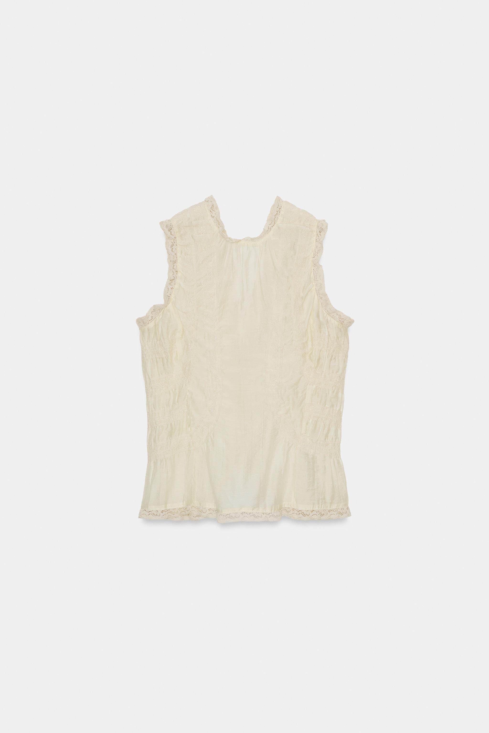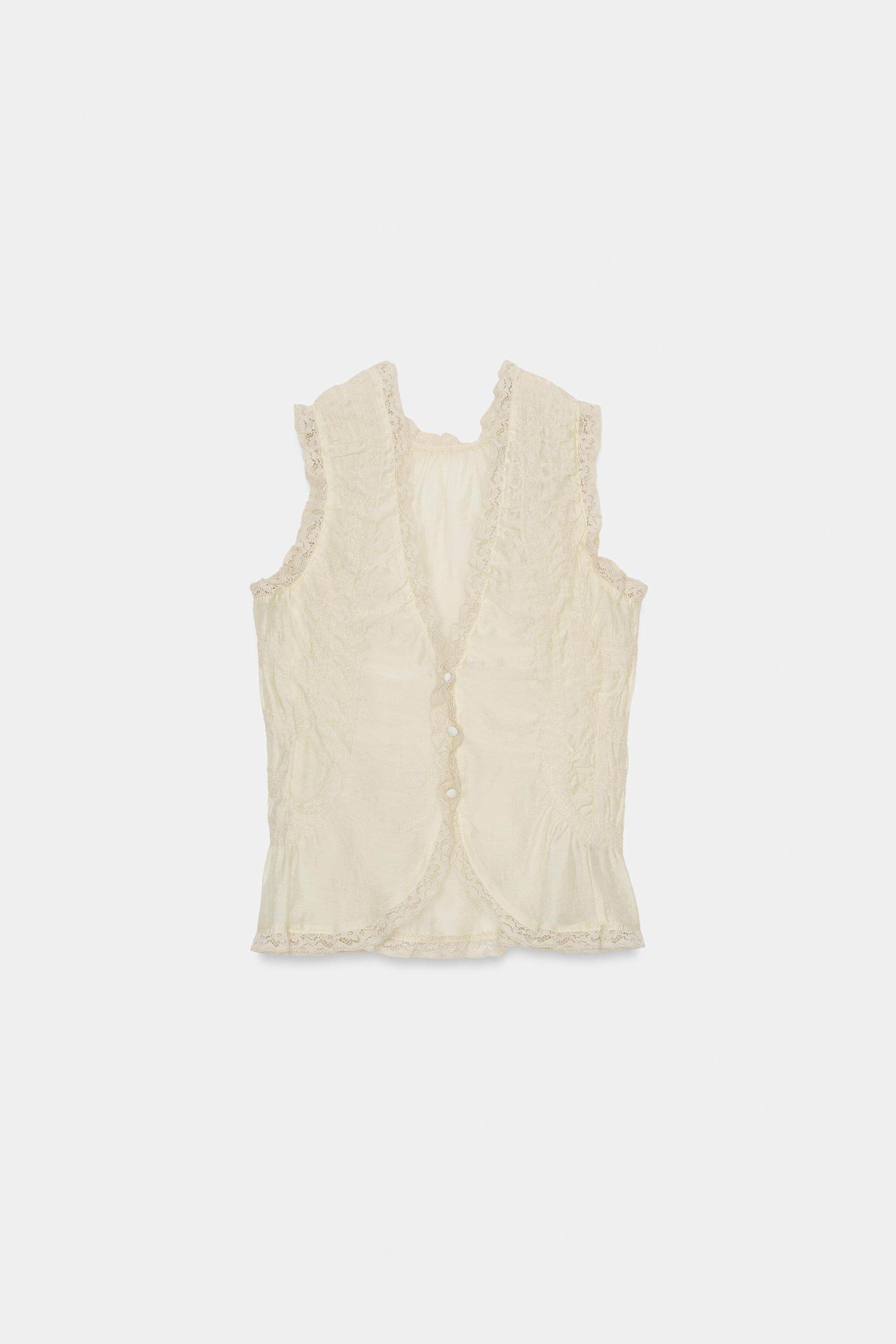 ZARA Новое поступление весны и лета 2026, женская рубашка без рукавов с v-образным вырезом и кружевной драпировкой TRF 3067036 733
