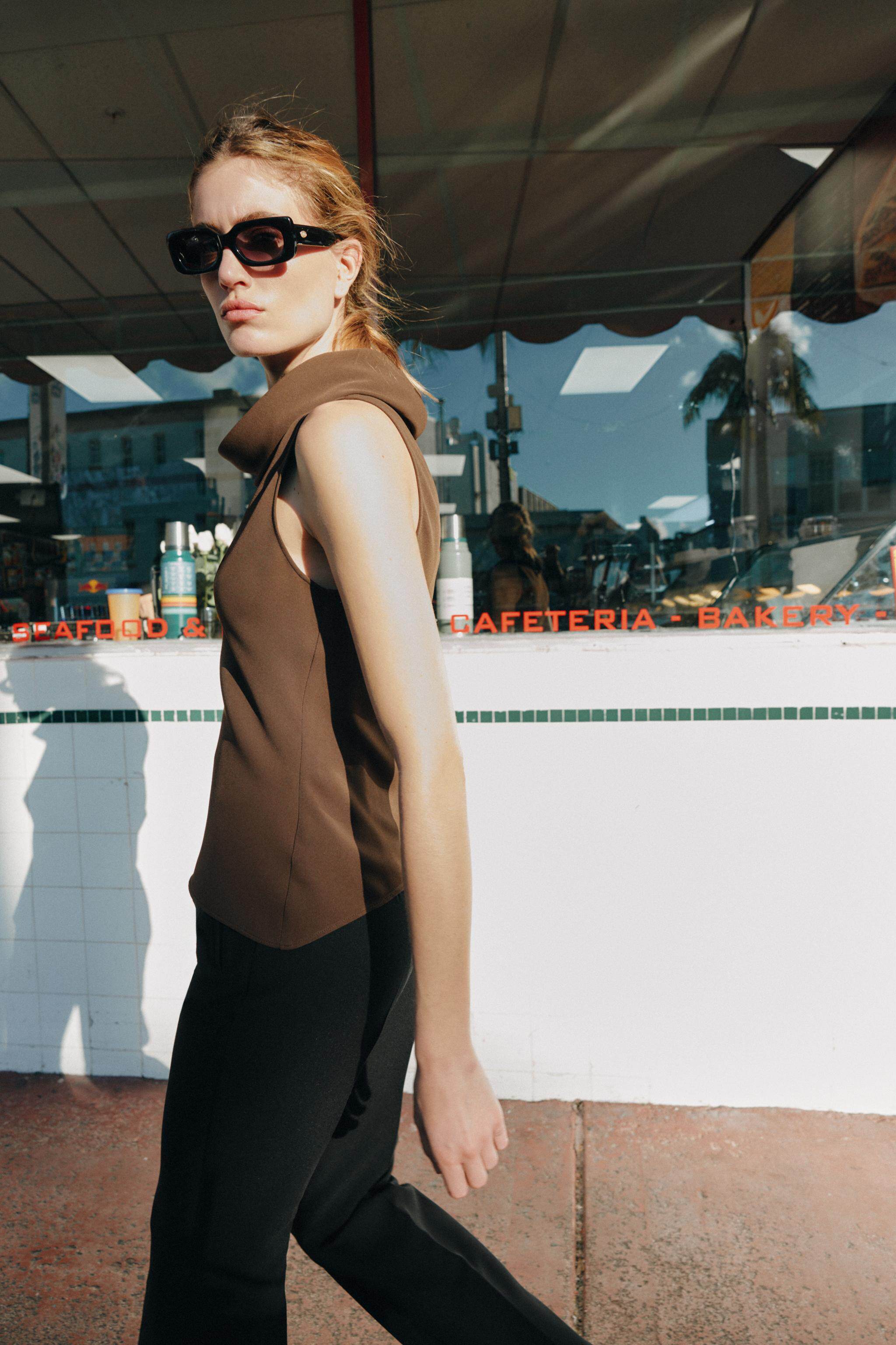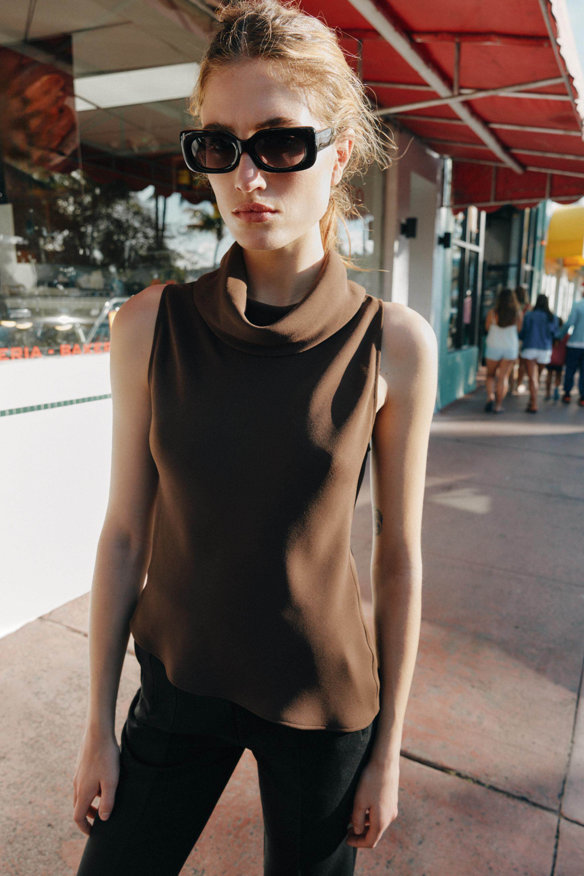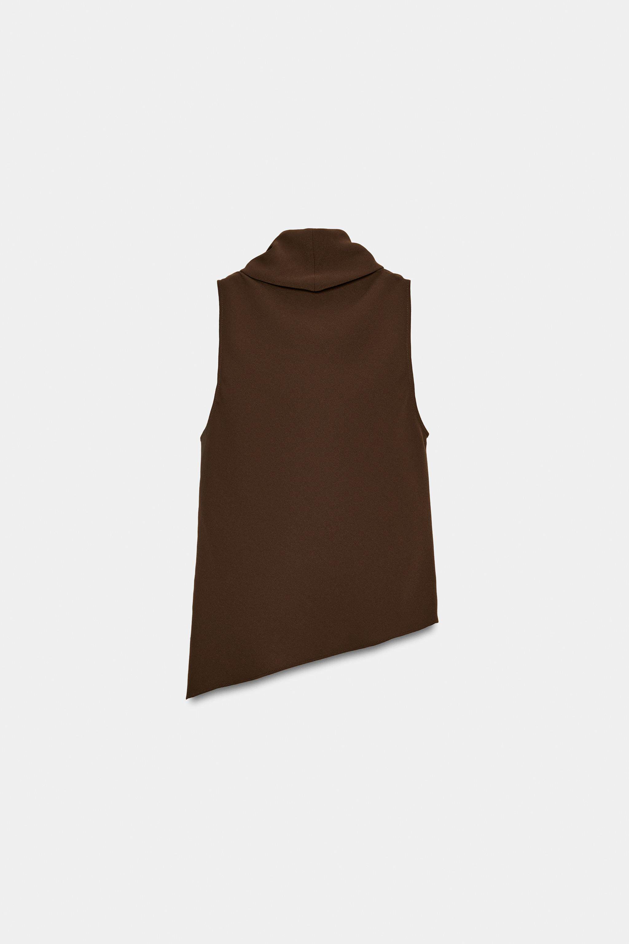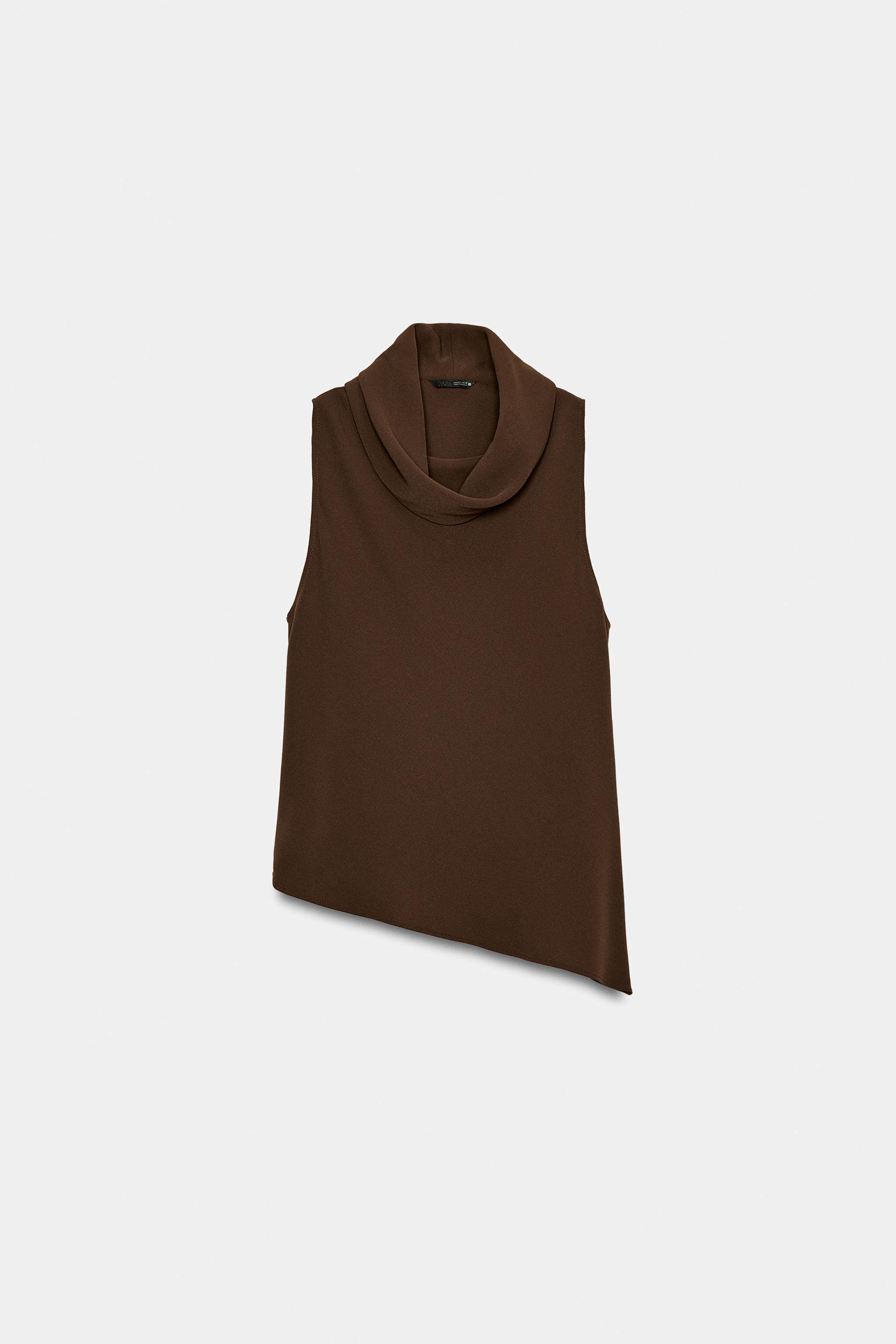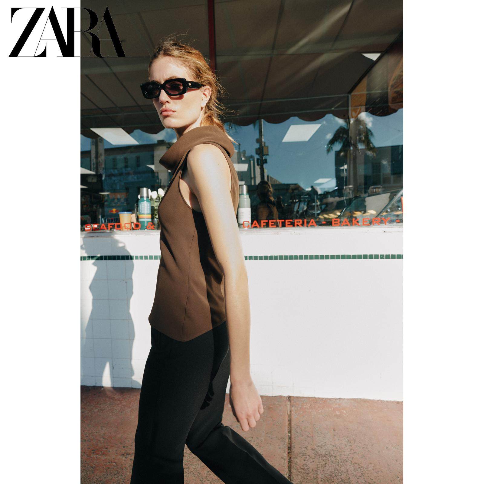 ZARA Новое поступление весны и лета 2026, женский топ без рукавов с асимметричным подолом и воротником-стойкой 2108572 700