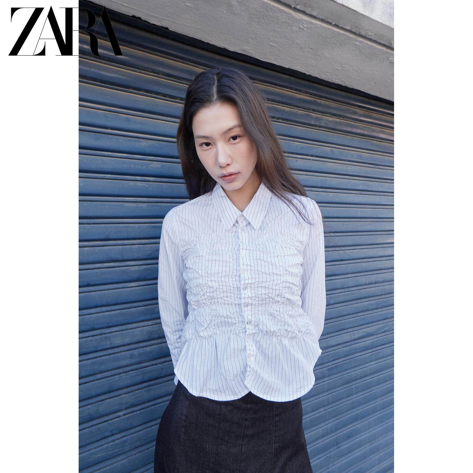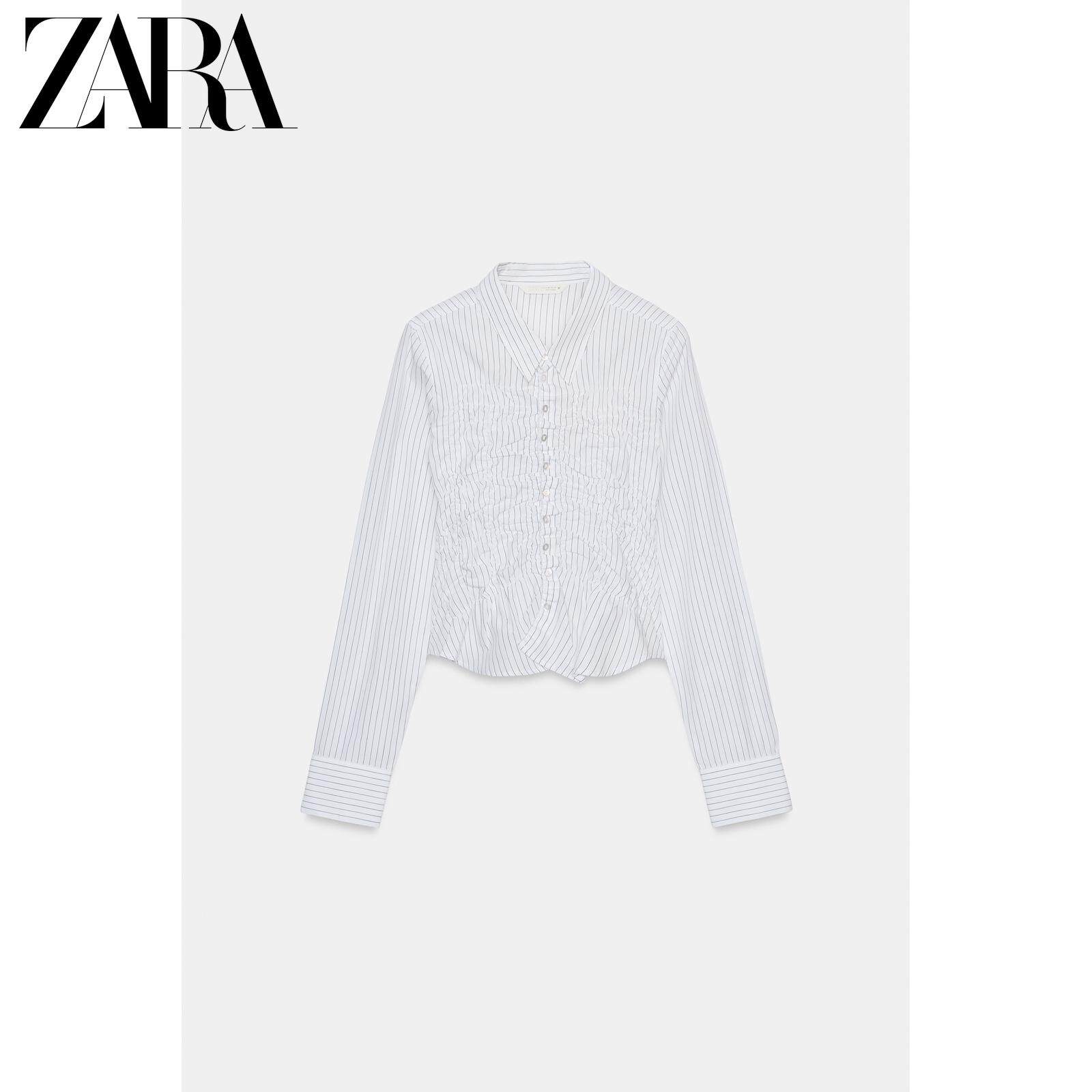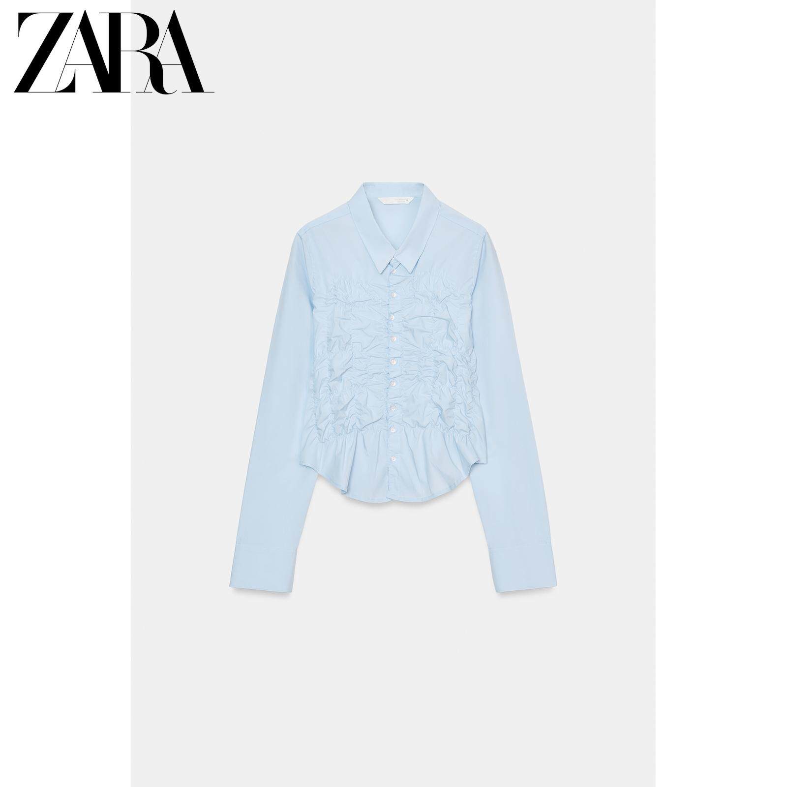 ZARA 26 весенне-летних новинок TRF, женская рубашка из эластичного плиссированного поплина с длинными рукавами и лацканами 4772919 064