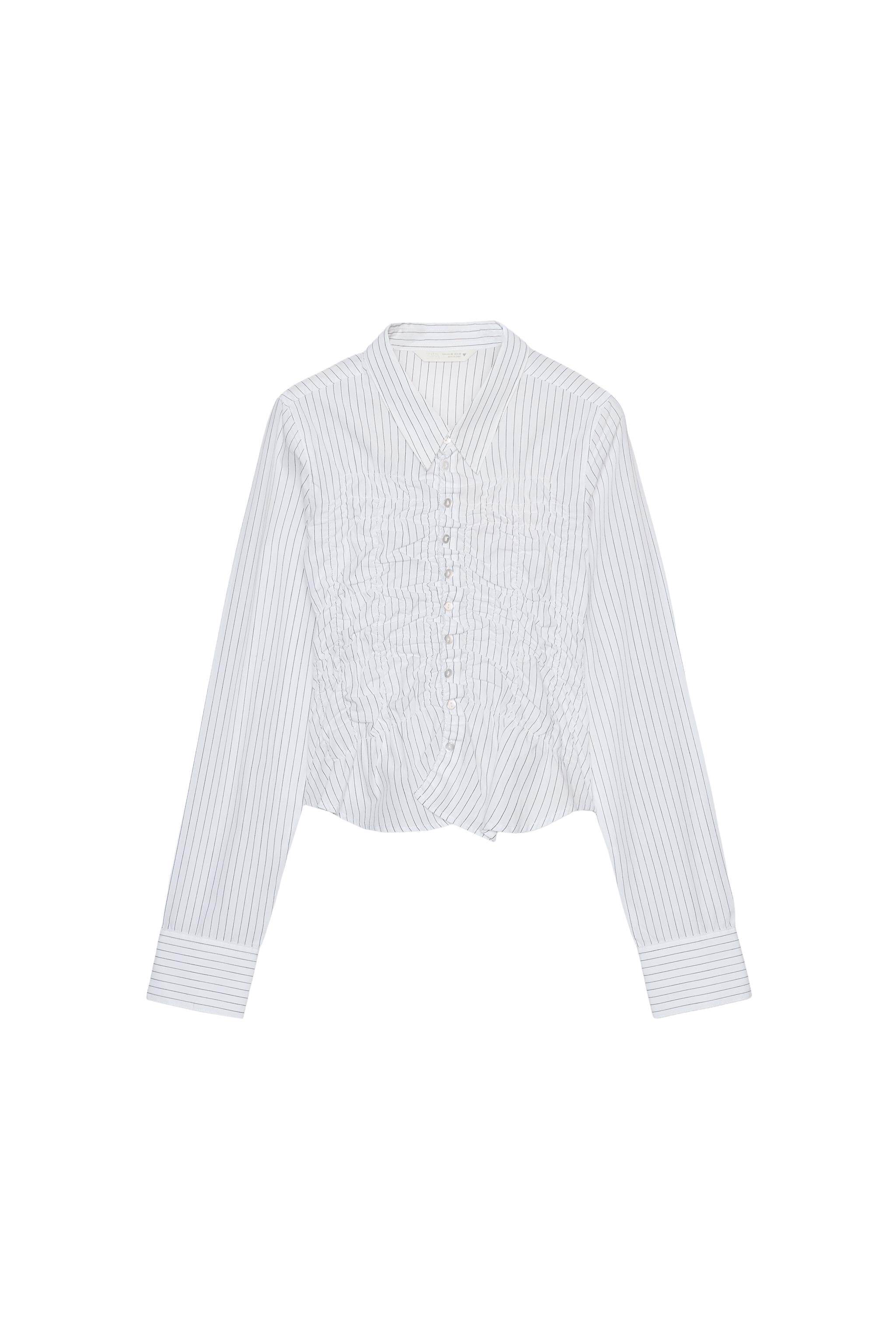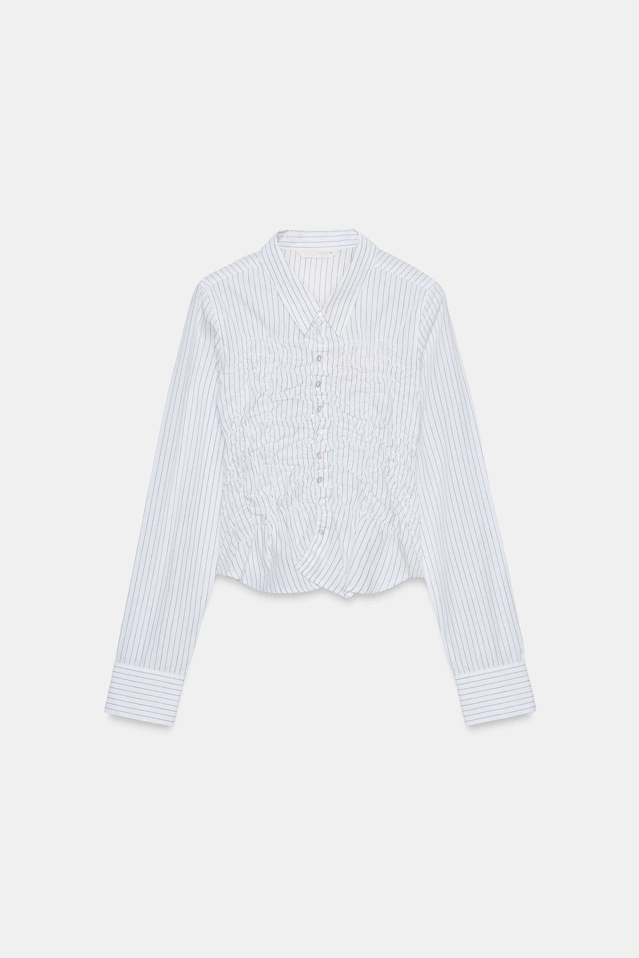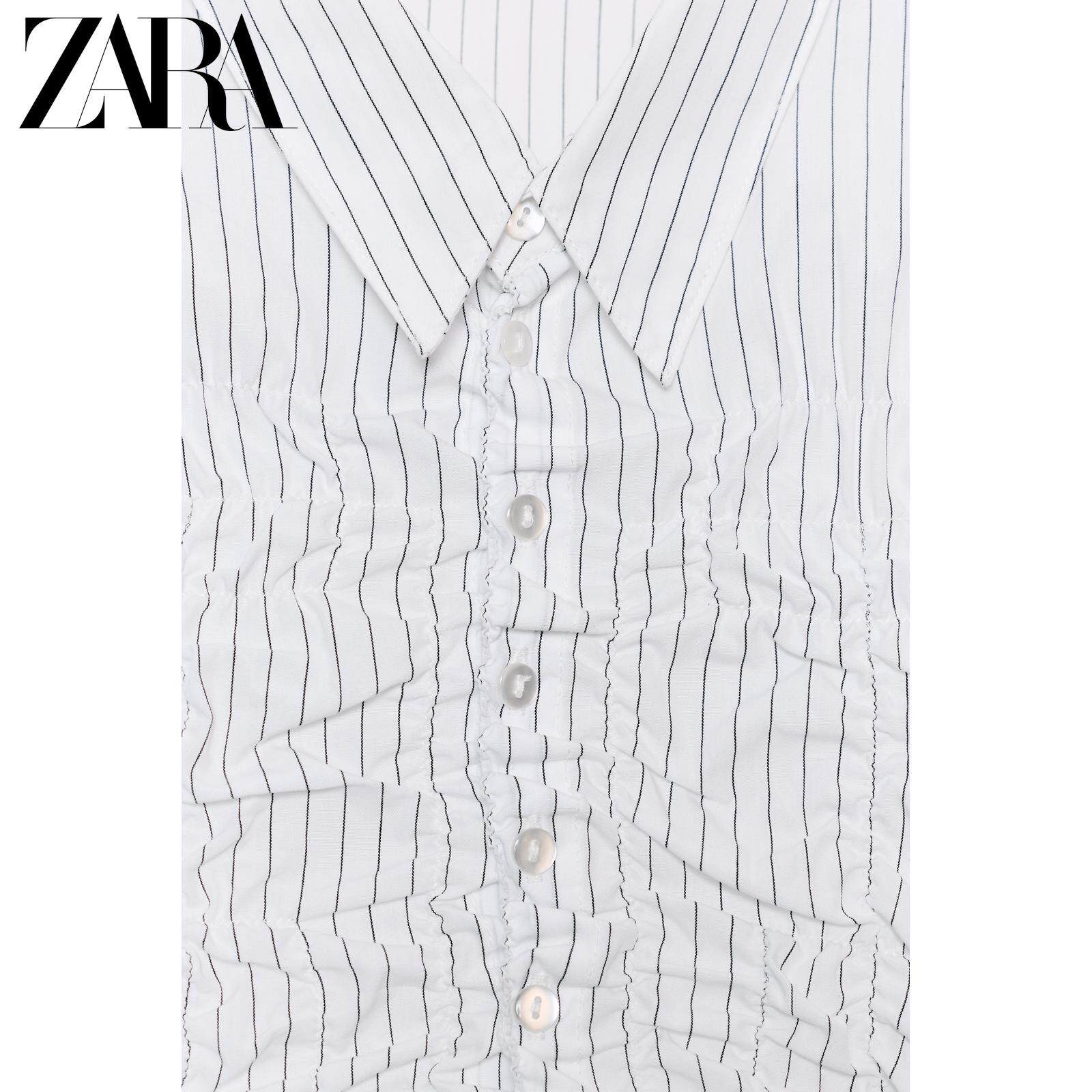 ZARA 26 весенне-летних новинок TRF, женская рубашка из эластичного плиссированного поплина с длинными рукавами и лацканами 4772919 064