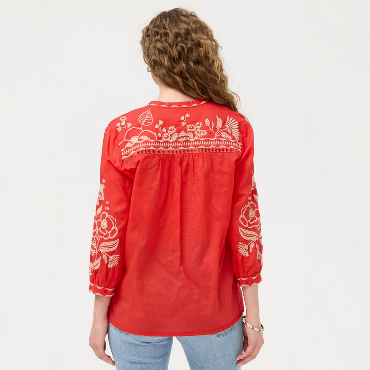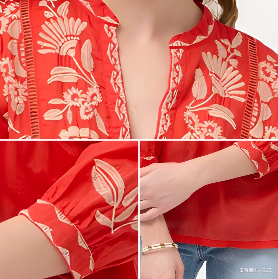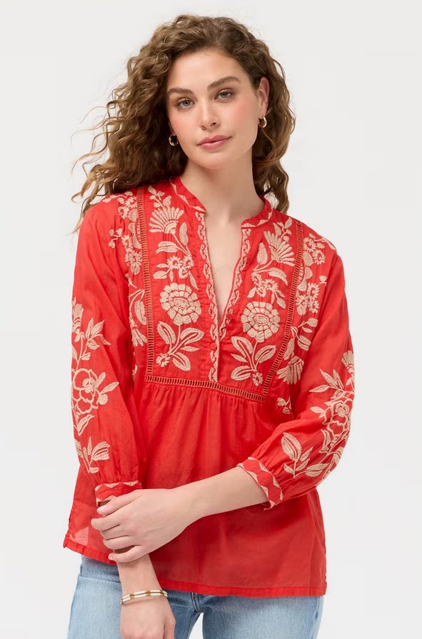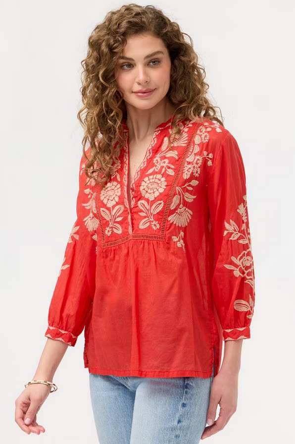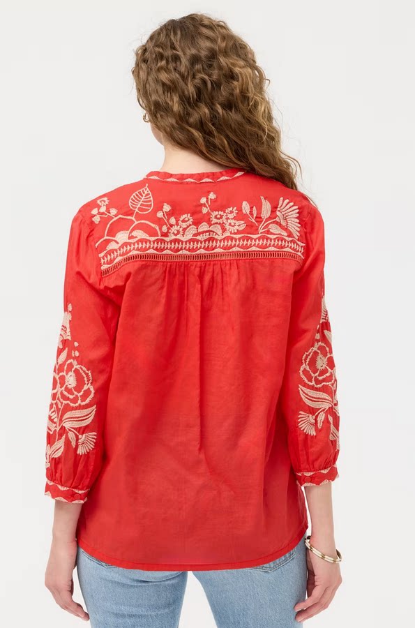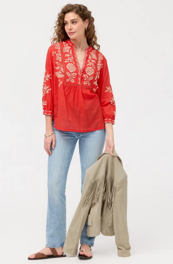 [Huahua Meidai] Джонни было 26, новая легкая хлопковая рубашка с вышивкой HENLEY с рукавами 7 четвертей