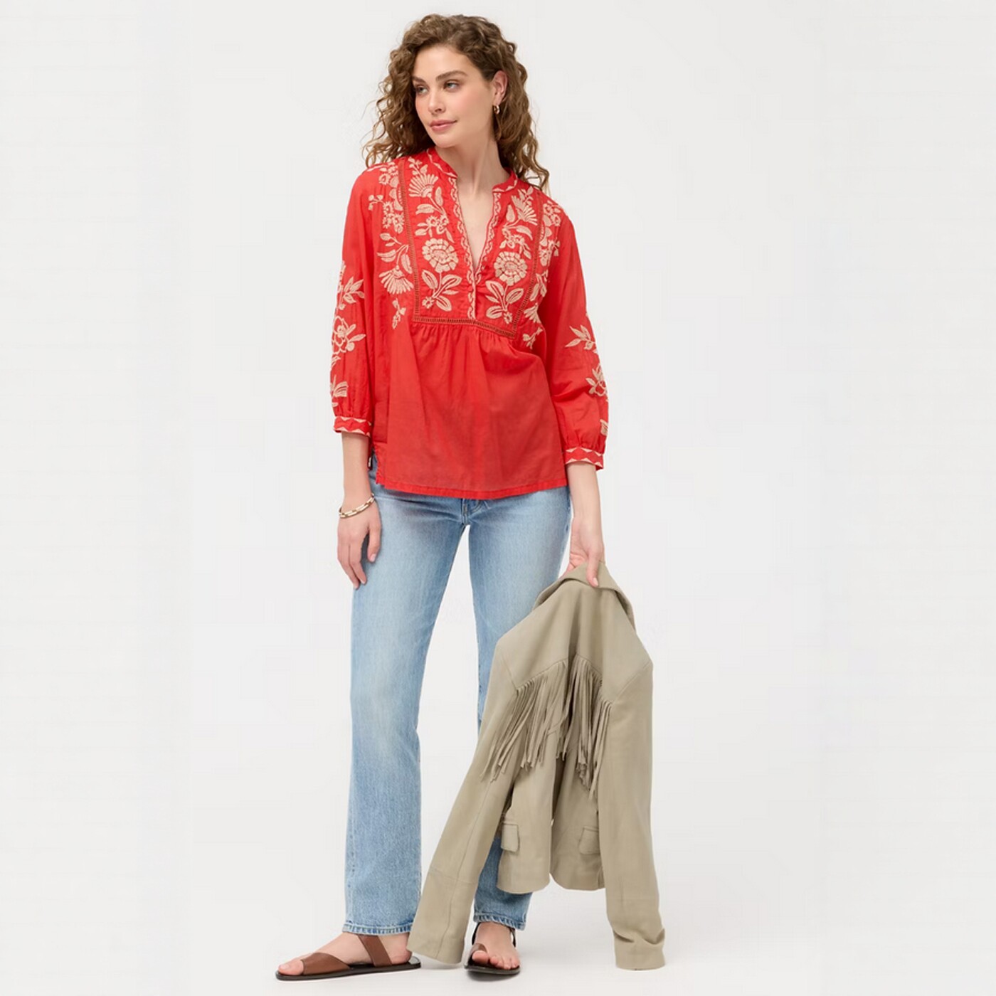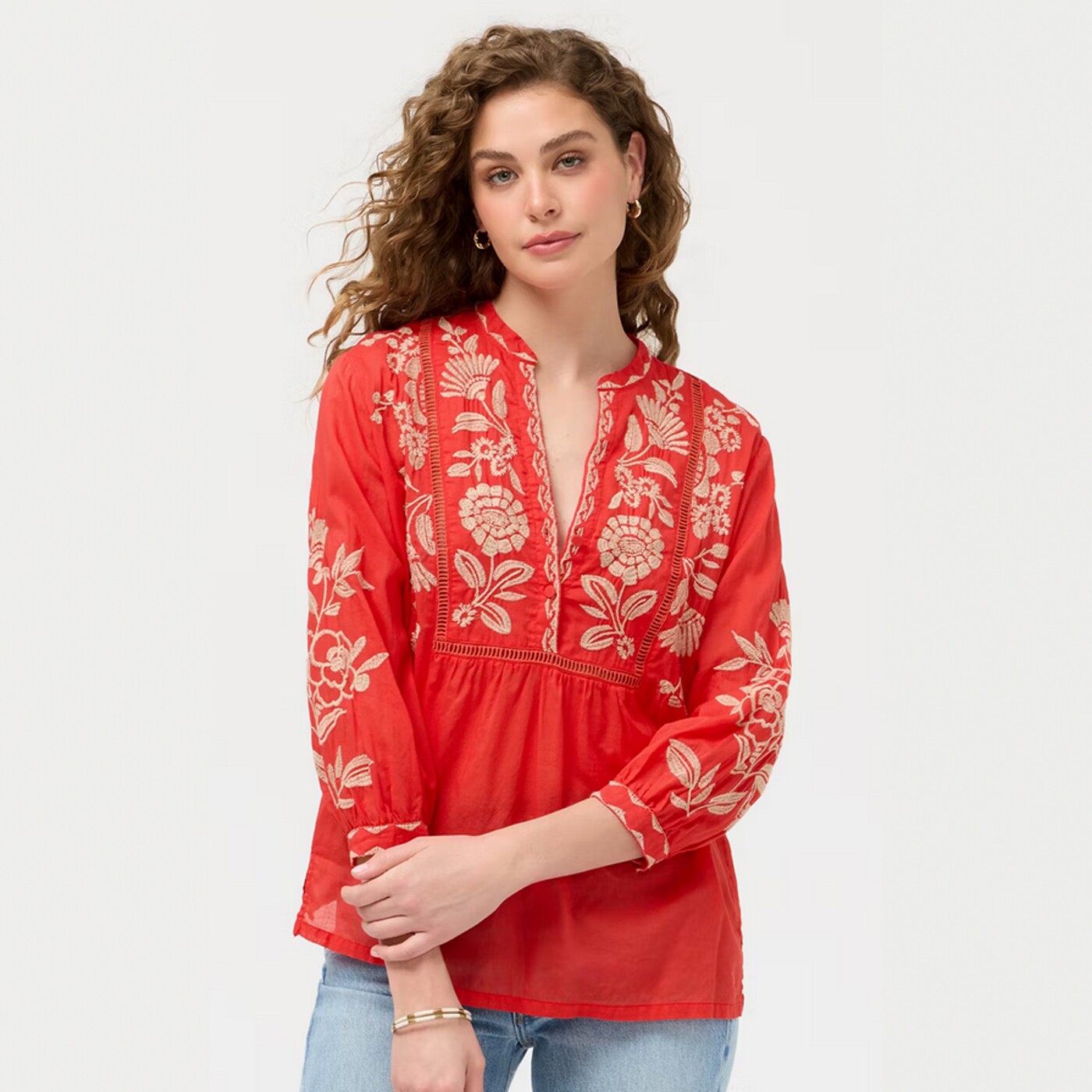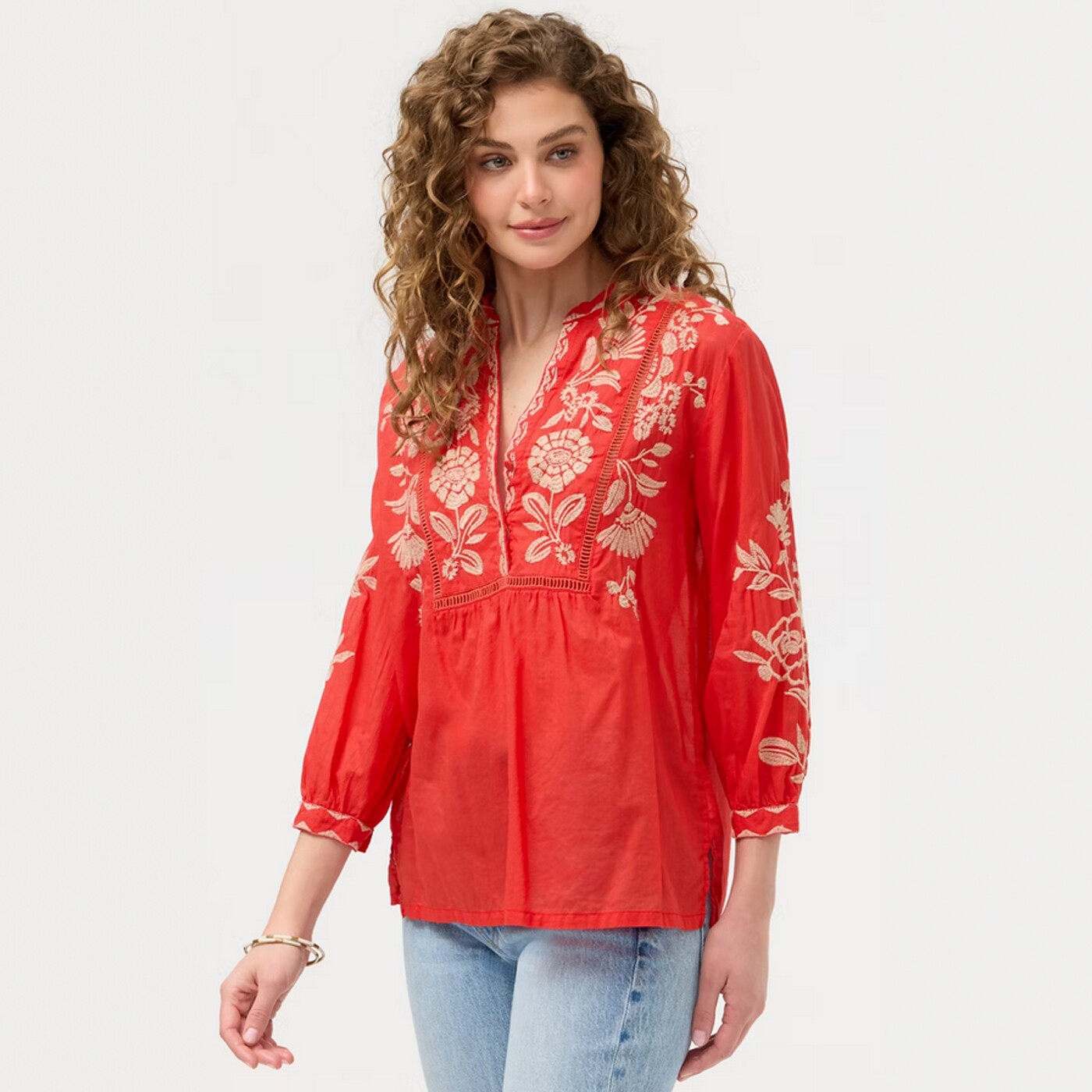[Huahua Meidai] Джонни было 26, новая легкая хлопковая рубашка с вышивкой HENLEY с рукавами 7 четвертей