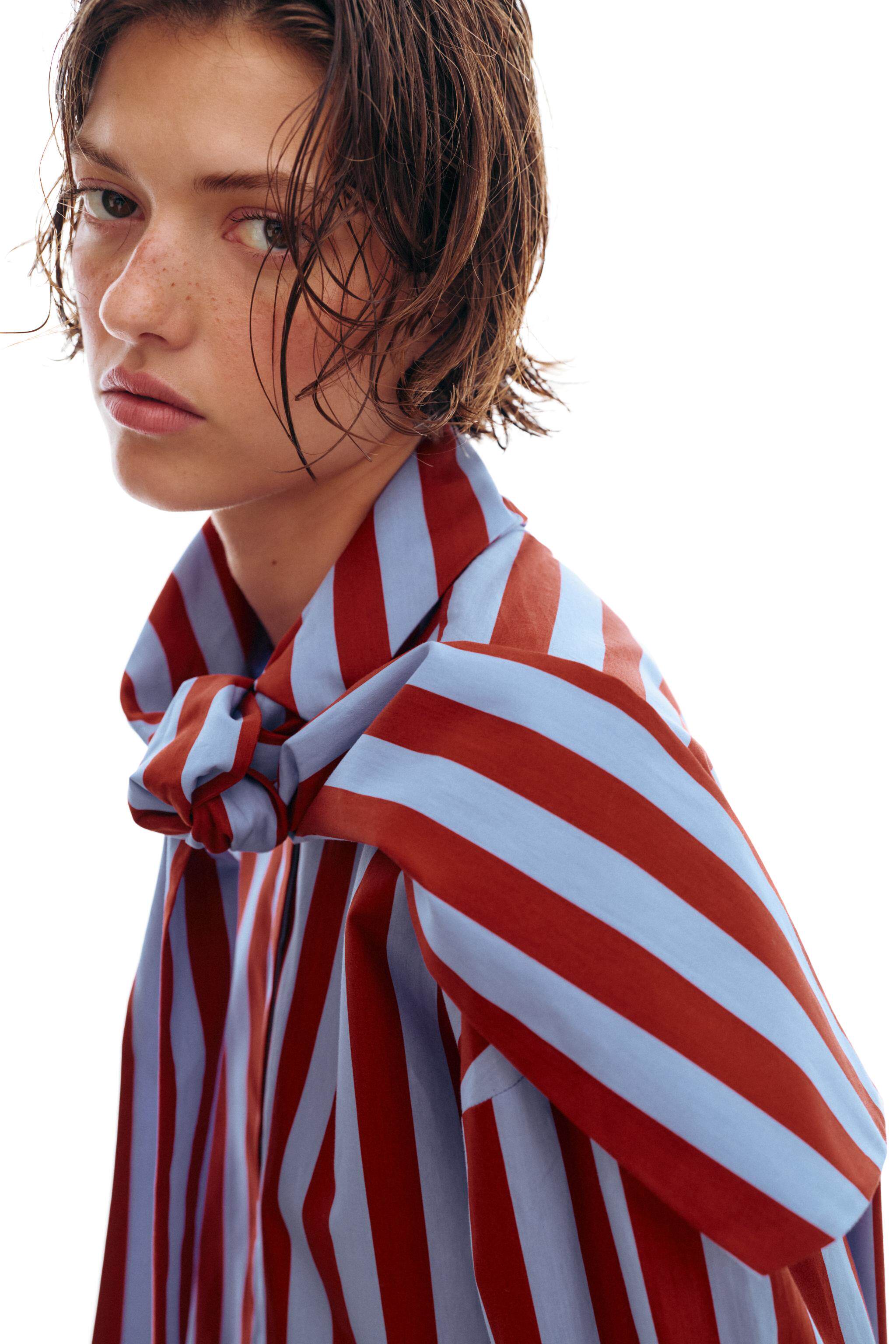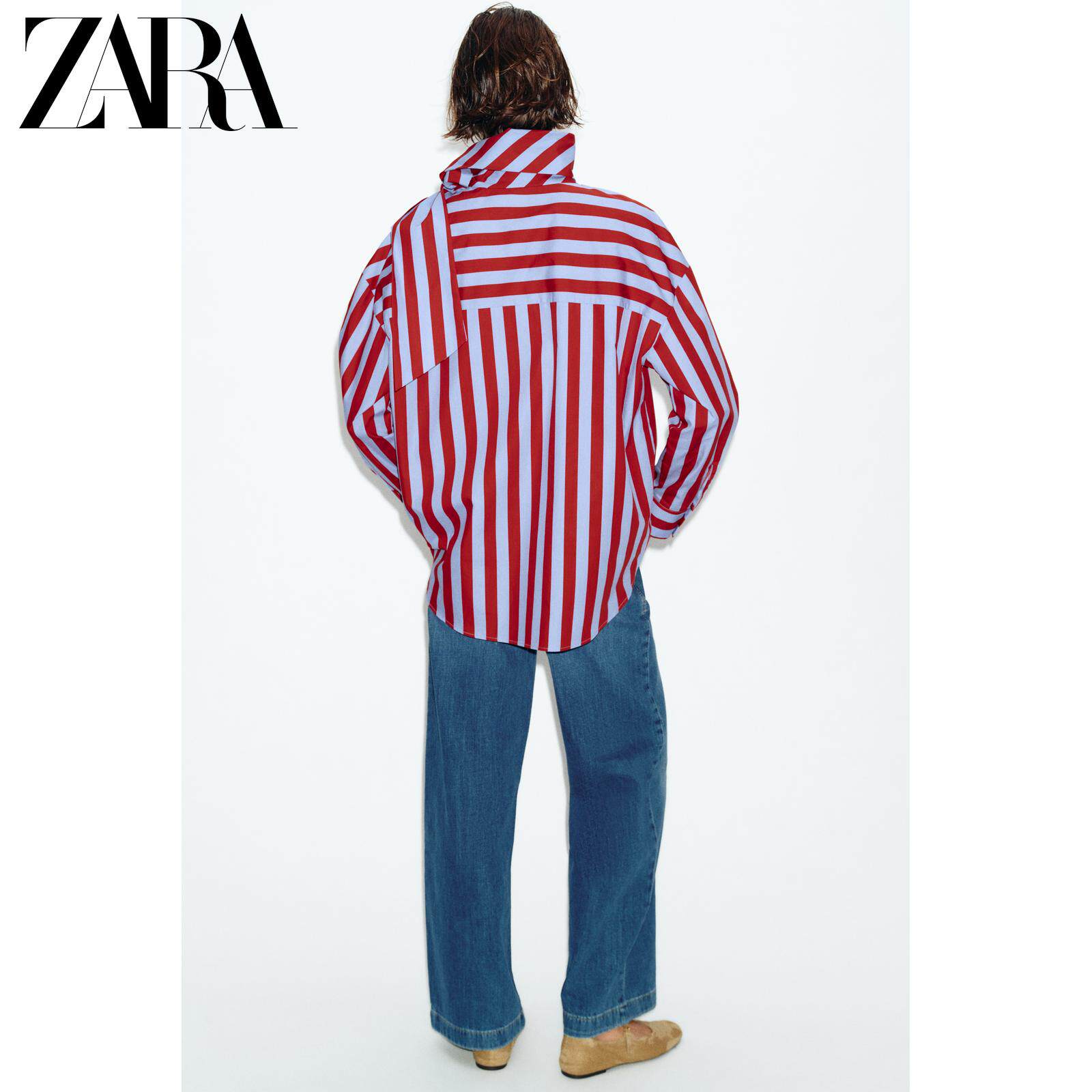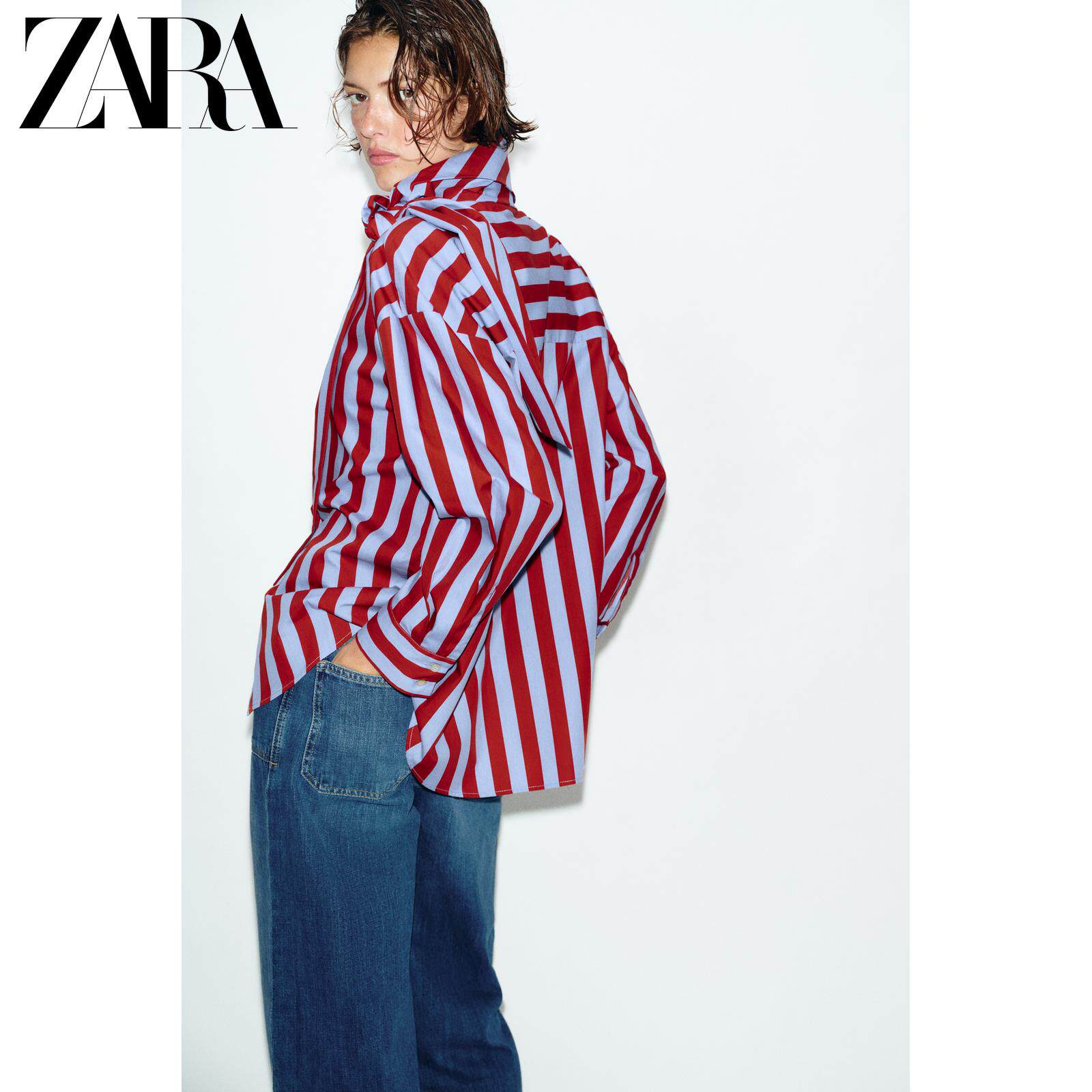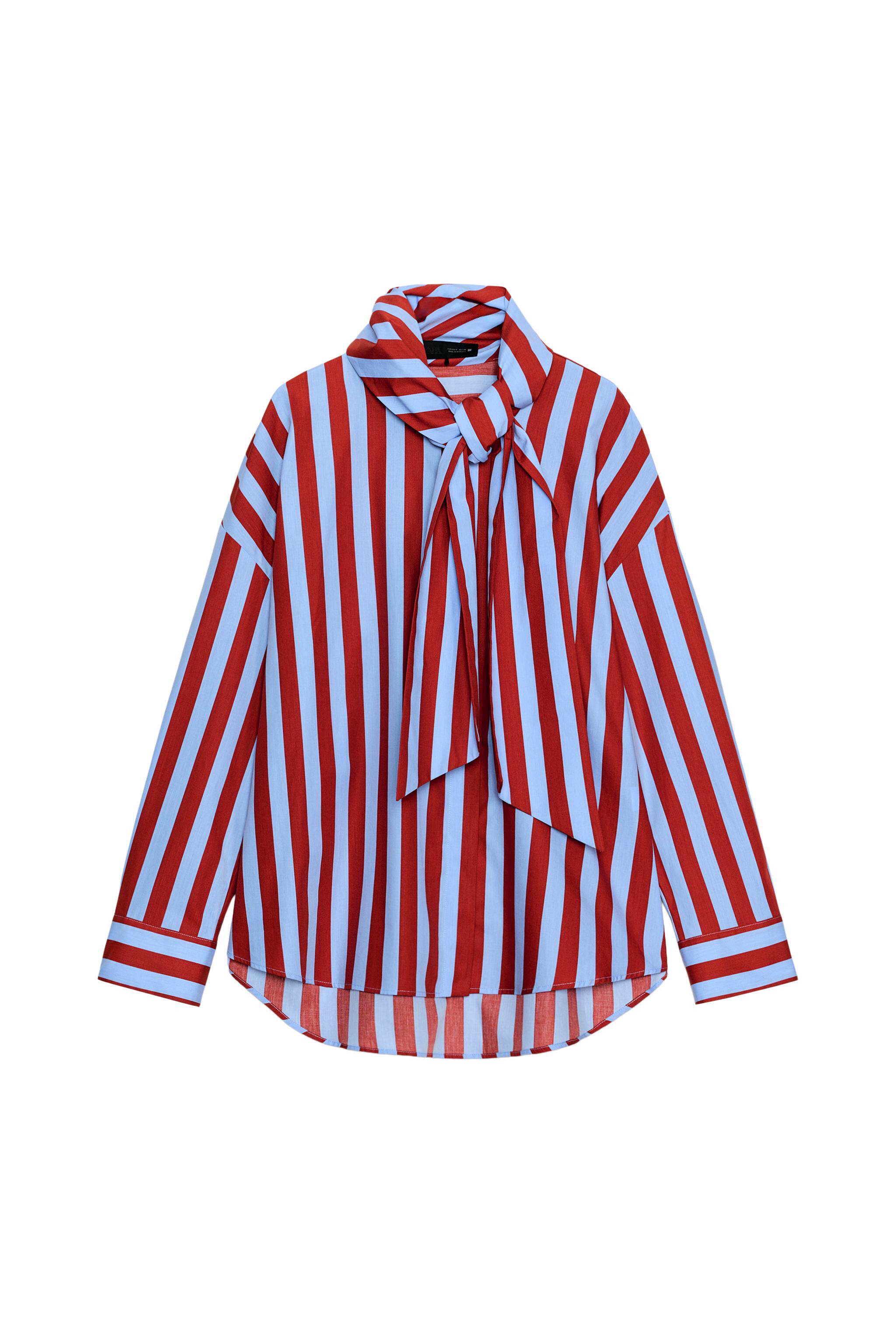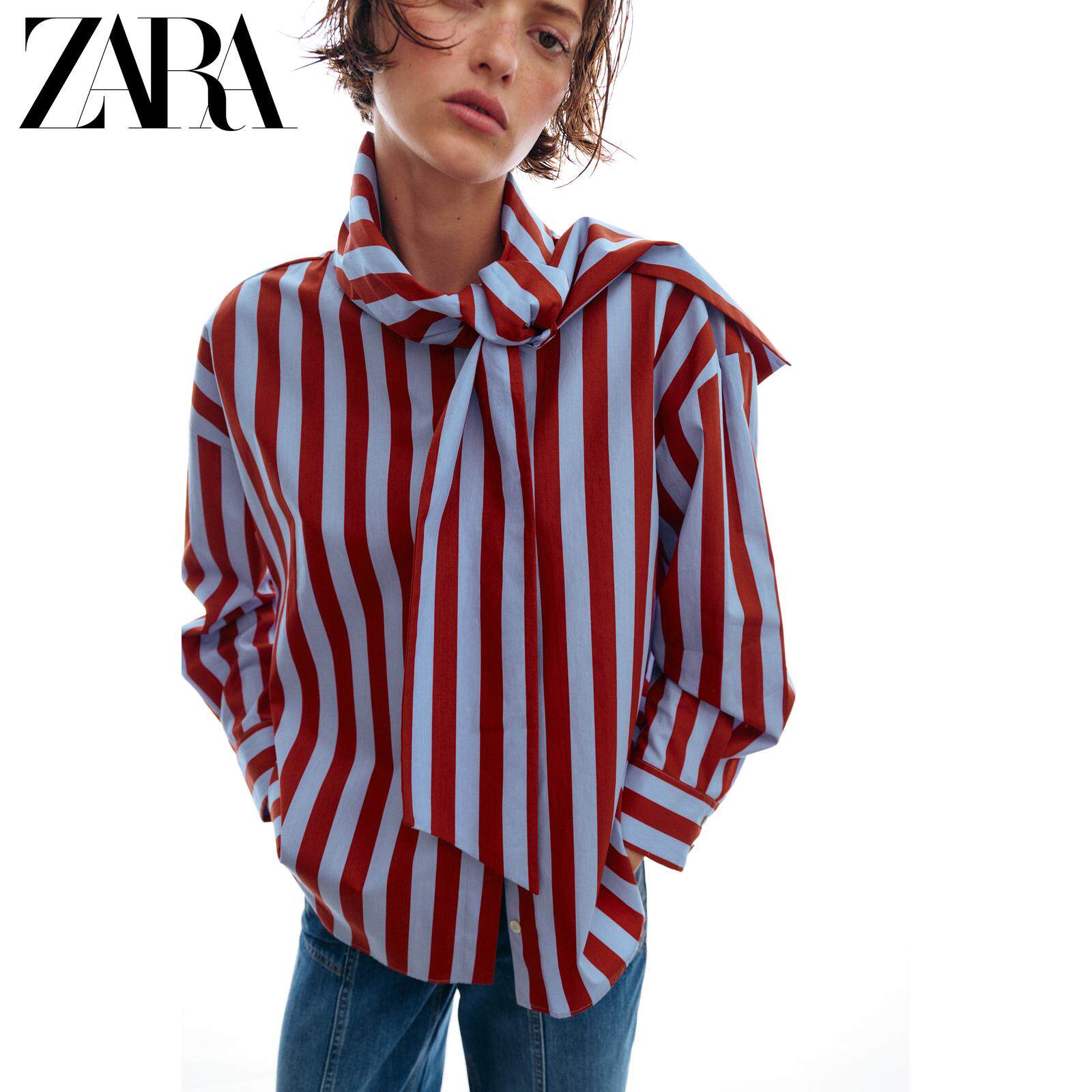 ZARA Новое поступление весны и лета 2026, женская рубашка в полоску с длинным рукавом и высоким воротником, украшенная бантом, 2390116 330