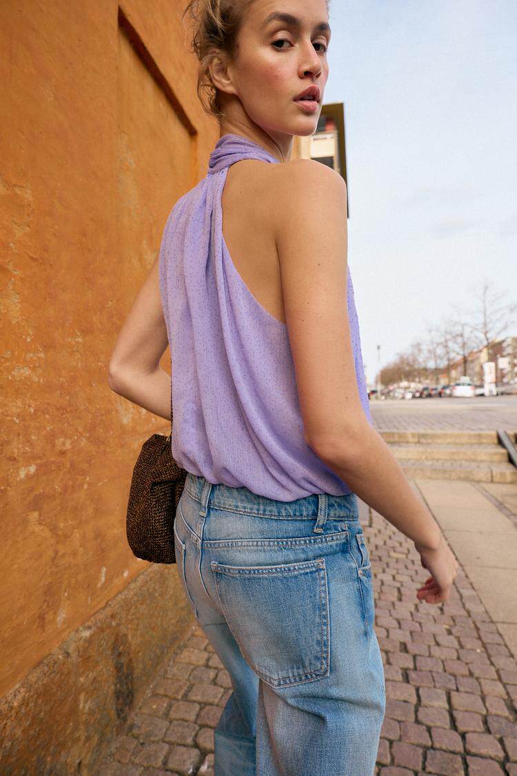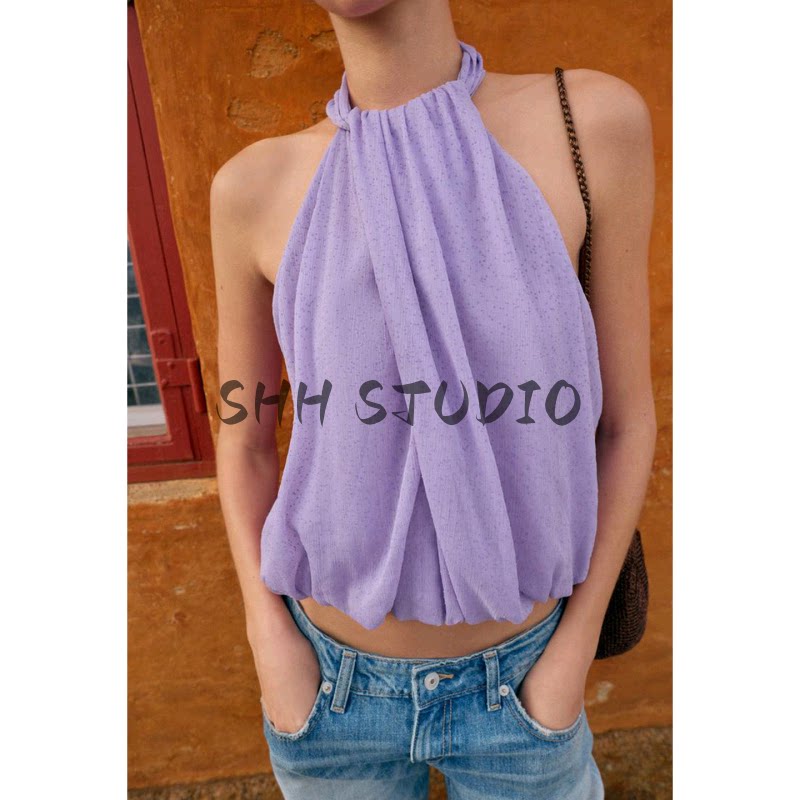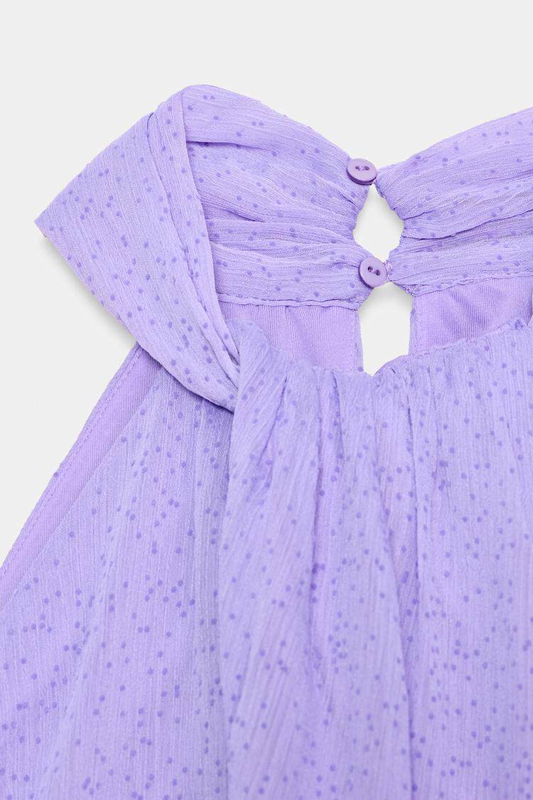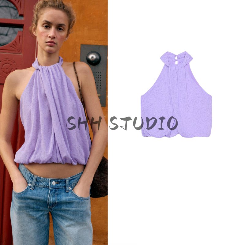 26 весенне-летний новый женский праздничный стильный плиссированный топ с потайными пуговицами и пышными рукавами в горошек 3897060