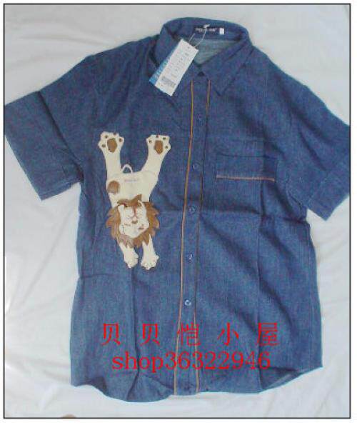 Qing*Barley Q22517B джинсовая женская рубашка с короткими рукавами с короткими рукавами